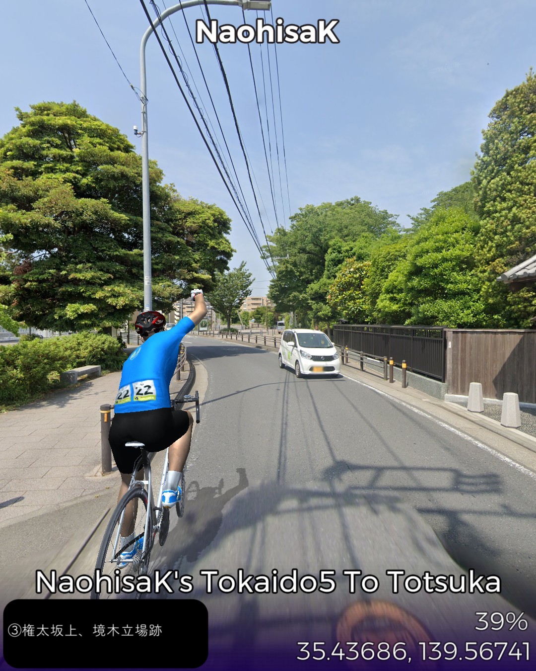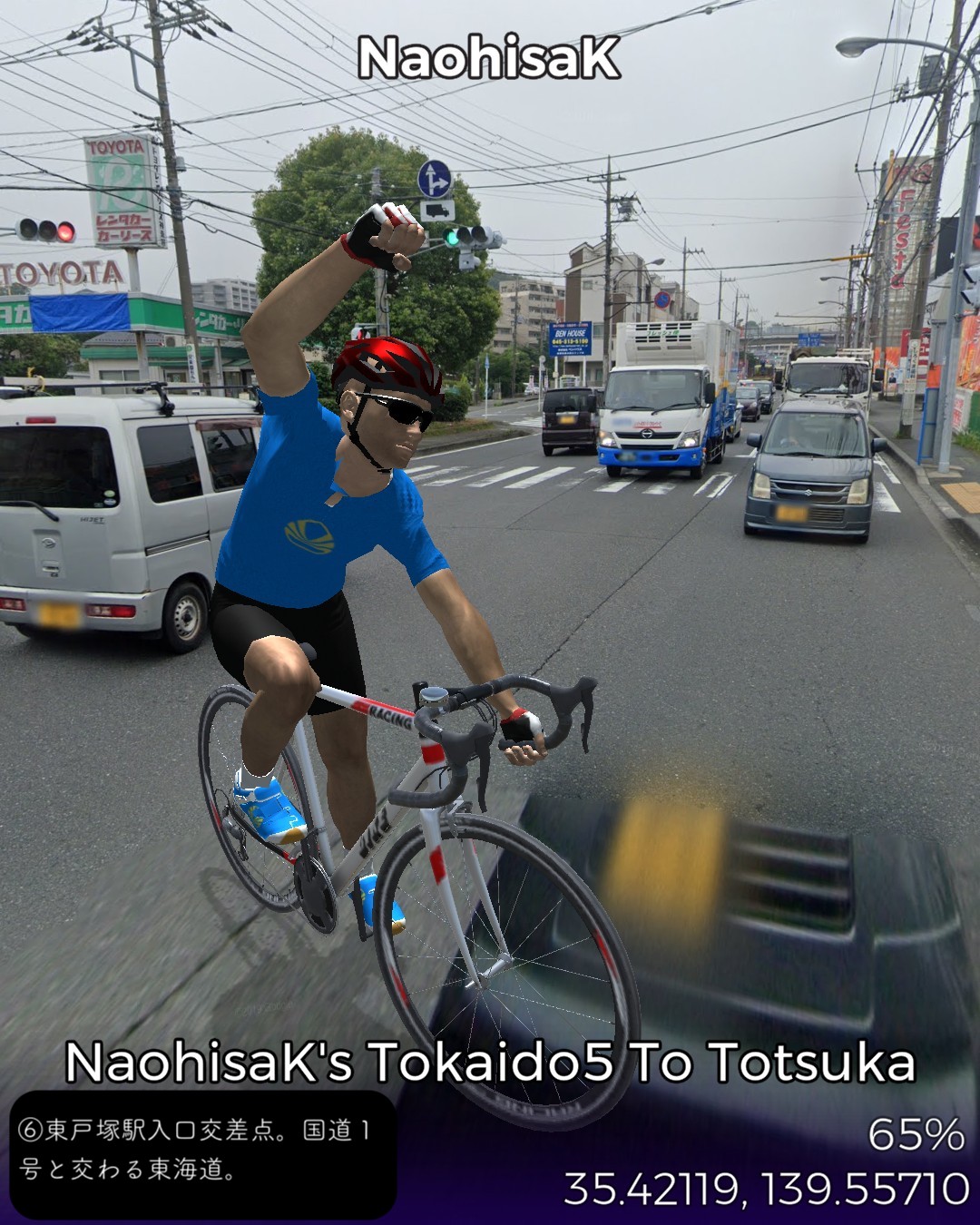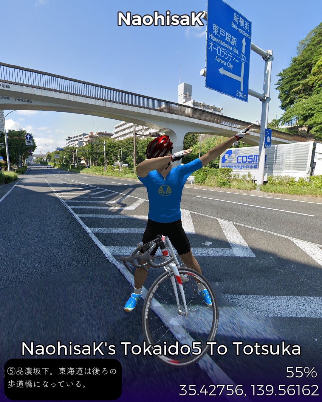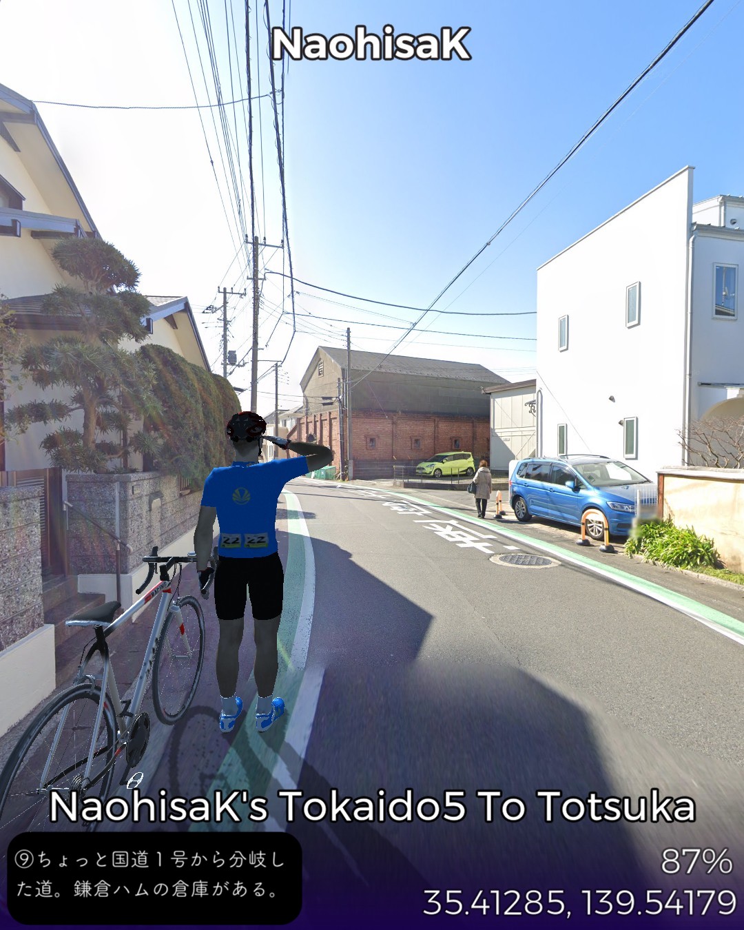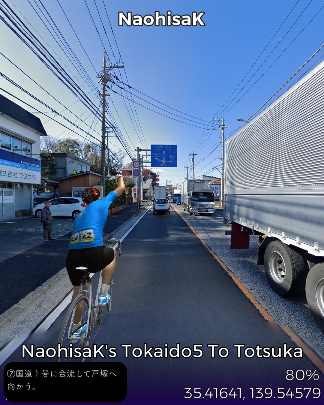 東海道バーチャルサイクリング。戸塚宿から藤沢宿まで8.9km。国道…
