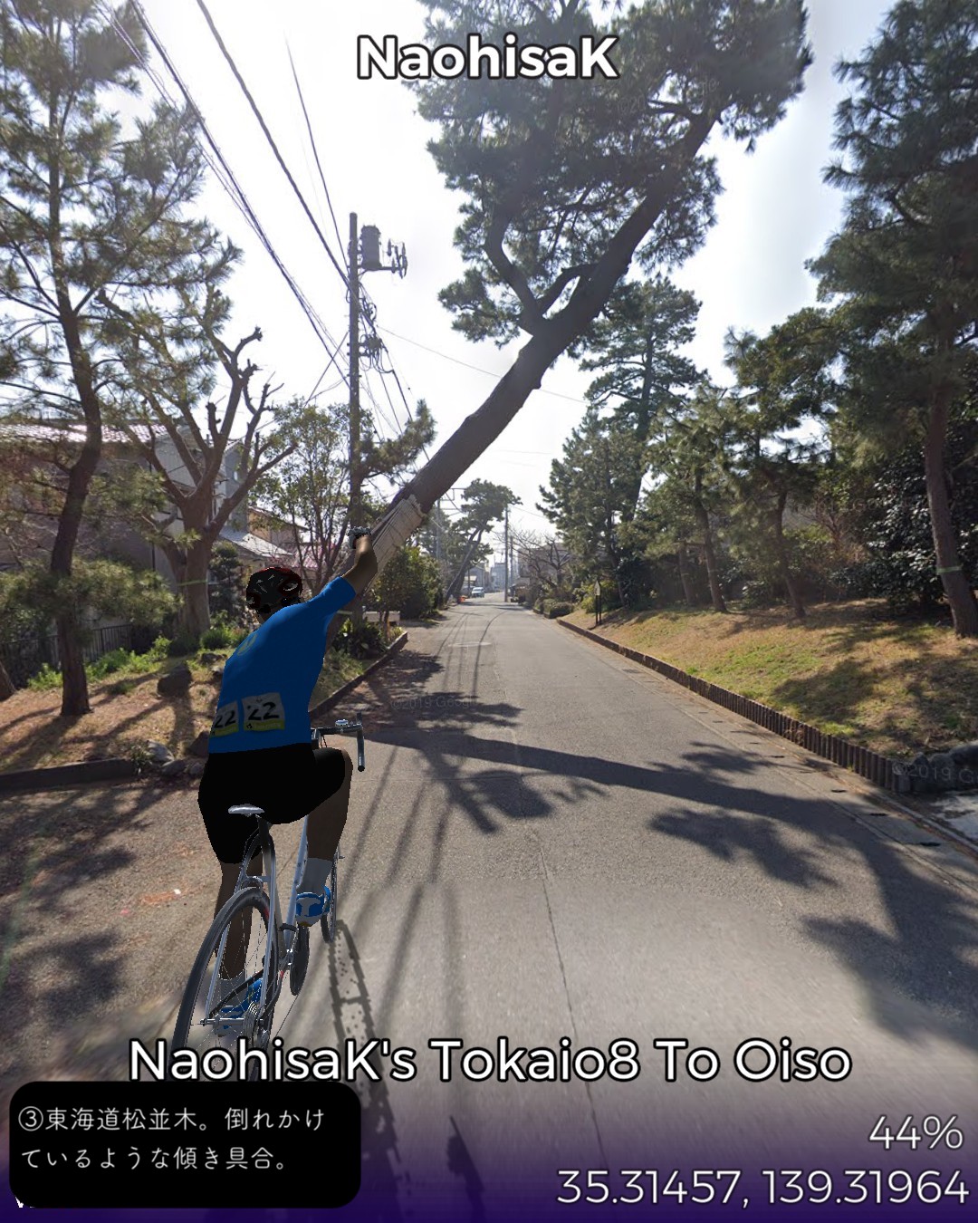 東海道バーチャルサイクリング。8日目は平塚宿から大磯宿まで距離にしてたった4.5km今までの最短の行程だが、その間でこれまでの日本橋からの行程で最大の変化が感じられる。さらに言うと平塚と大磯を隔てる花水橋を超えると空気がガラッと変わる。ここまでの大都市からだんだん郊外になってゆくという連続性が途切れていきなりCountrysideに突入する感覚。ただ大磯は単なる田舎ではなく歴代宰相が隠居した格調高いリゾートの雰囲気がある。こんなところに住める人が羨ましい。ゴールは旧吉田茂邸の中に設定したが中には入れてもらえなかった。