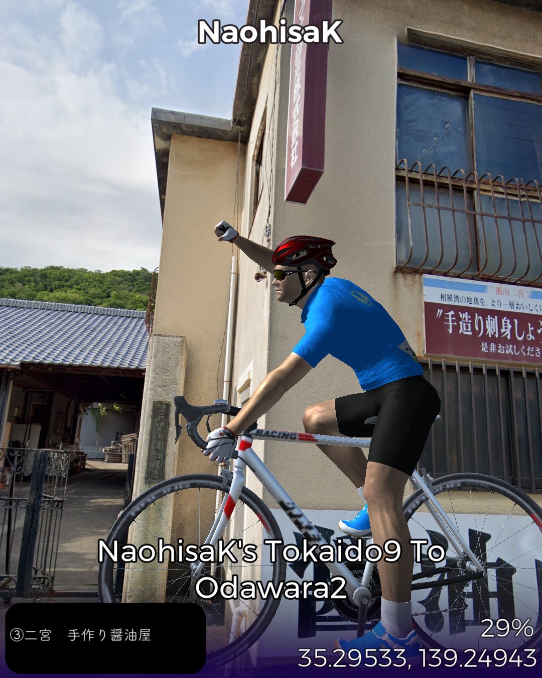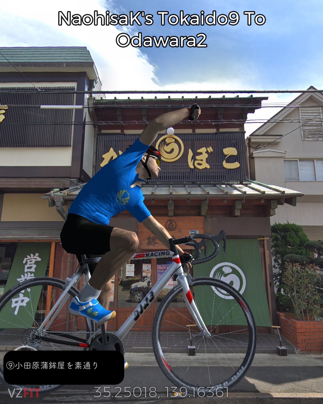 東海道バーチャルサイクリング9日目。大磯が気に入って二泊したので(リアルには昨日リモート宴会の為)1日サボって今日大磯宿から小田原宿まで14.4km。初めて海を見ました。小田原の旧東海道の道筋はかまぼこ屋街道でありました。いつの間にか遠くへ来ちゃいましたねえ。次はいよいよ箱根の山登りです。