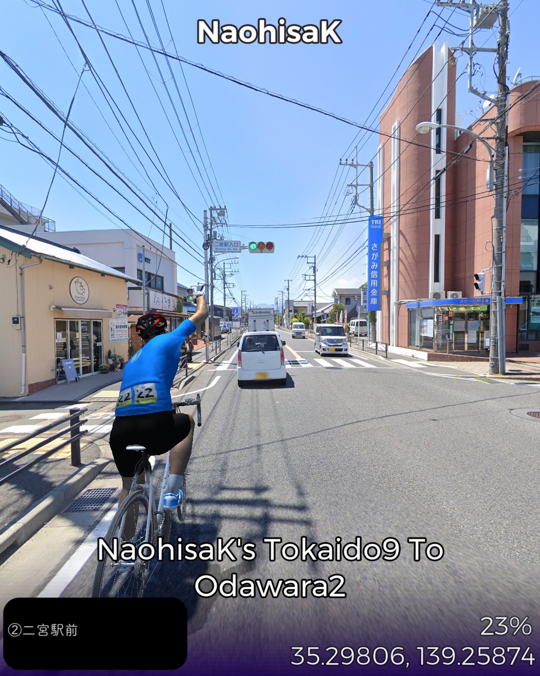 東海道バーチャルサイクリング。8日目は平塚宿から大磯宿まで距離にし…