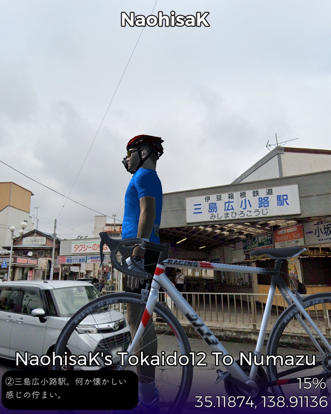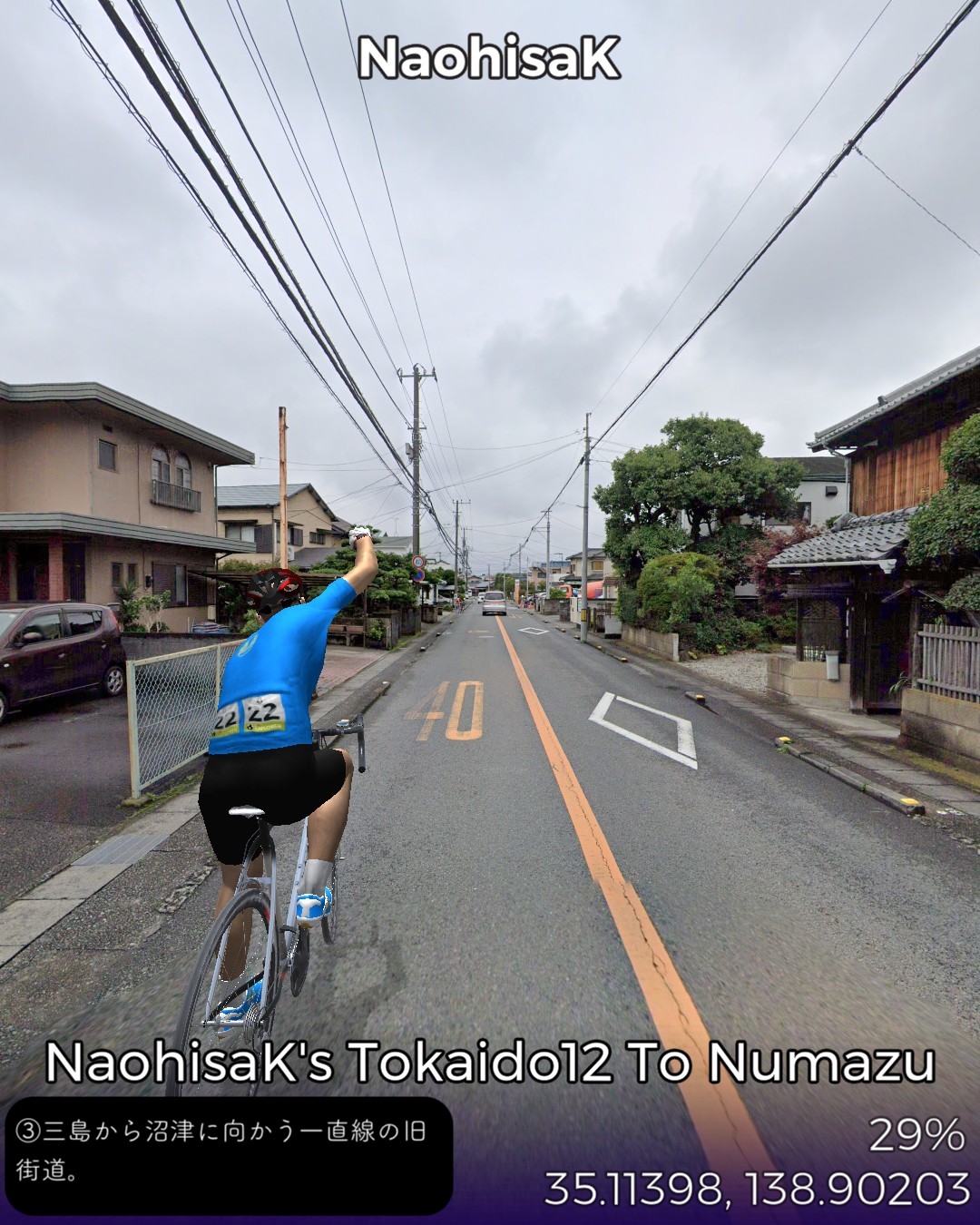東海道バーチャルサイクリング13日目。三島宿から沼津宿まで7.2km。ハードな箱根八里を踏破した後にホッとするお気楽なコース。ここまでは私も含め首都圏在住の友人諸兄にはある程度馴染みのある場所を巡るルートでしたが、これからは地名すら馴染みのない地域に入ってゆくことになります。