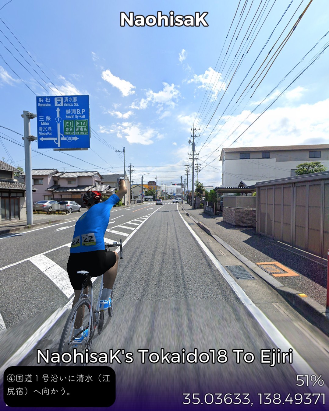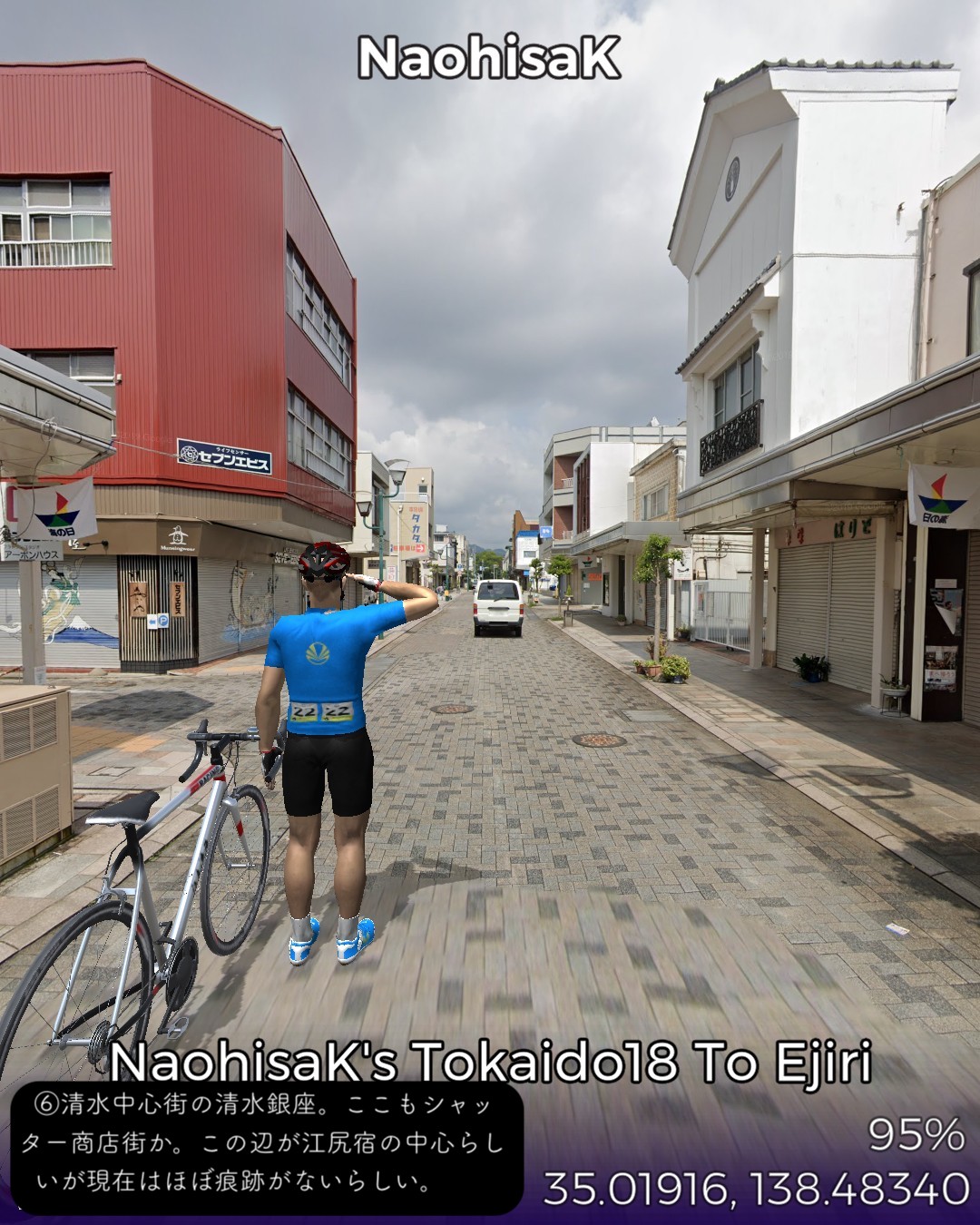 東海道バーチャルサイクリング19日目。興津宿から現在の清水にあたる江尻宿まで6km、久々に街中へ戻ってゆくルート。街から田舎を経由して次の街に入る度にまた違う文化圏に入ったな、という感じが旅をしている実感となってワクワクする。