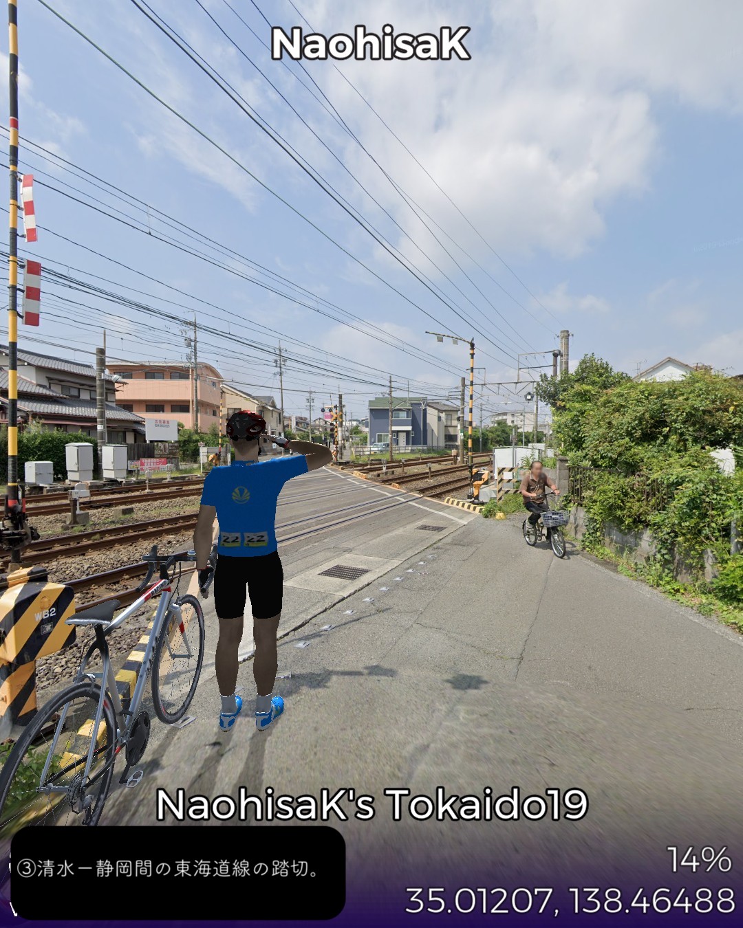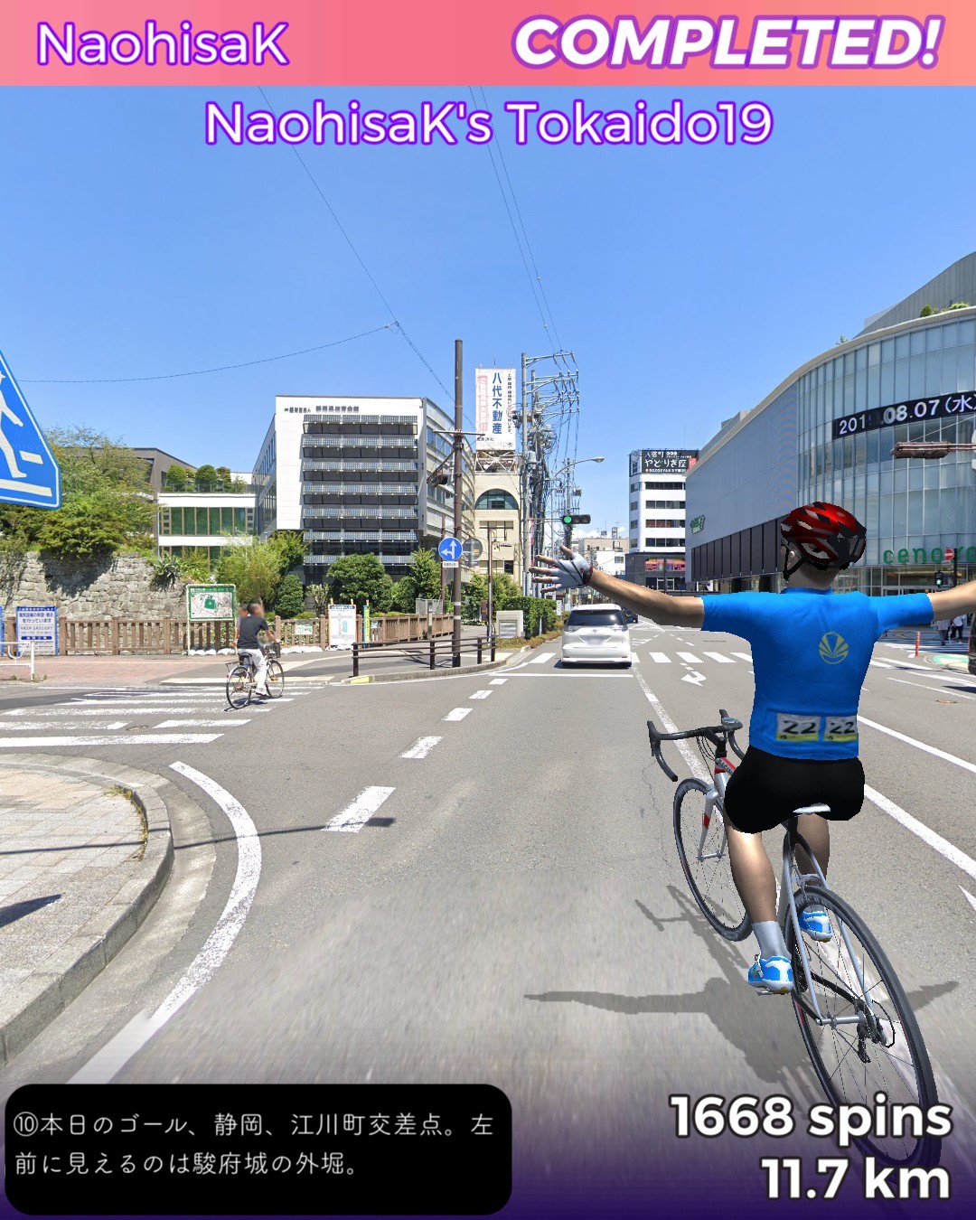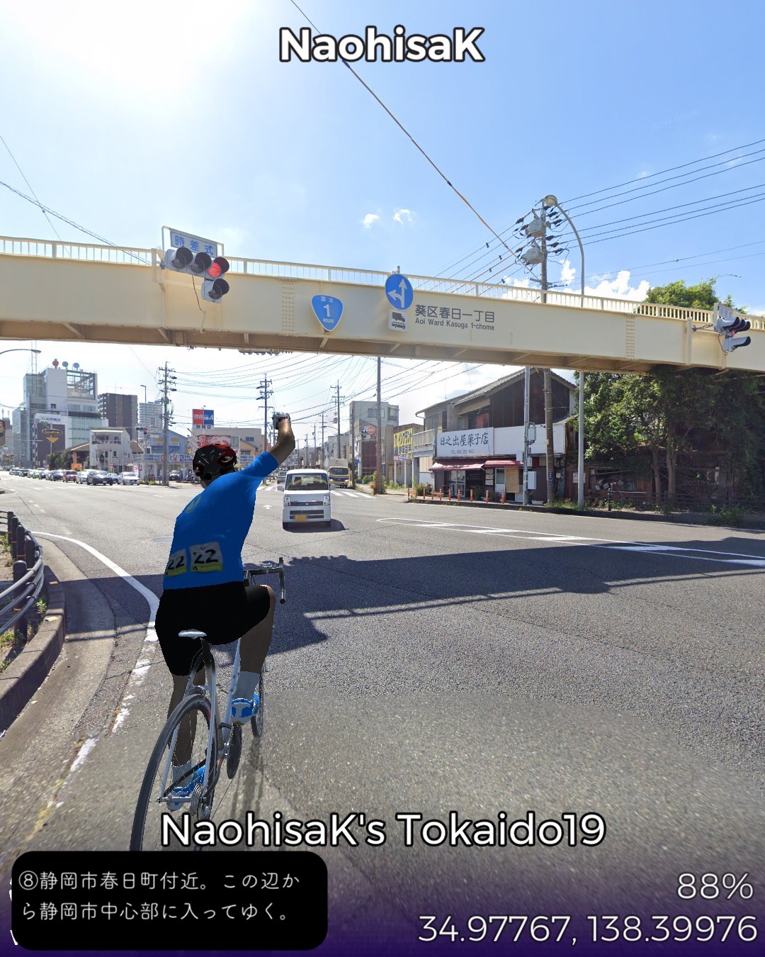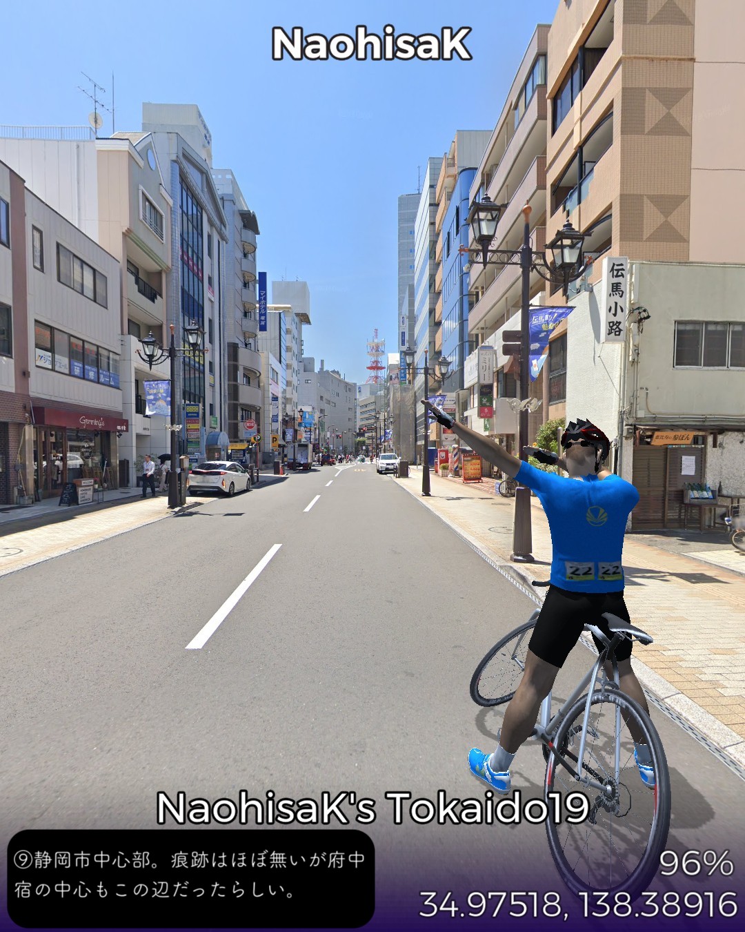 東海道バーチャルサイクリング20日目。清水に当たる江尻宿から静岡に当たる府中宿まで12kmの行程。清水から静岡はほぼ繋がった市街地となっているので今回のルートは住居や店が並んだ道をずっと走る。田舎道は比較的ルートもシンプルなのだが街中に入ると敵を翻弄する意味もあり街道は複雑な道筋をたどる。