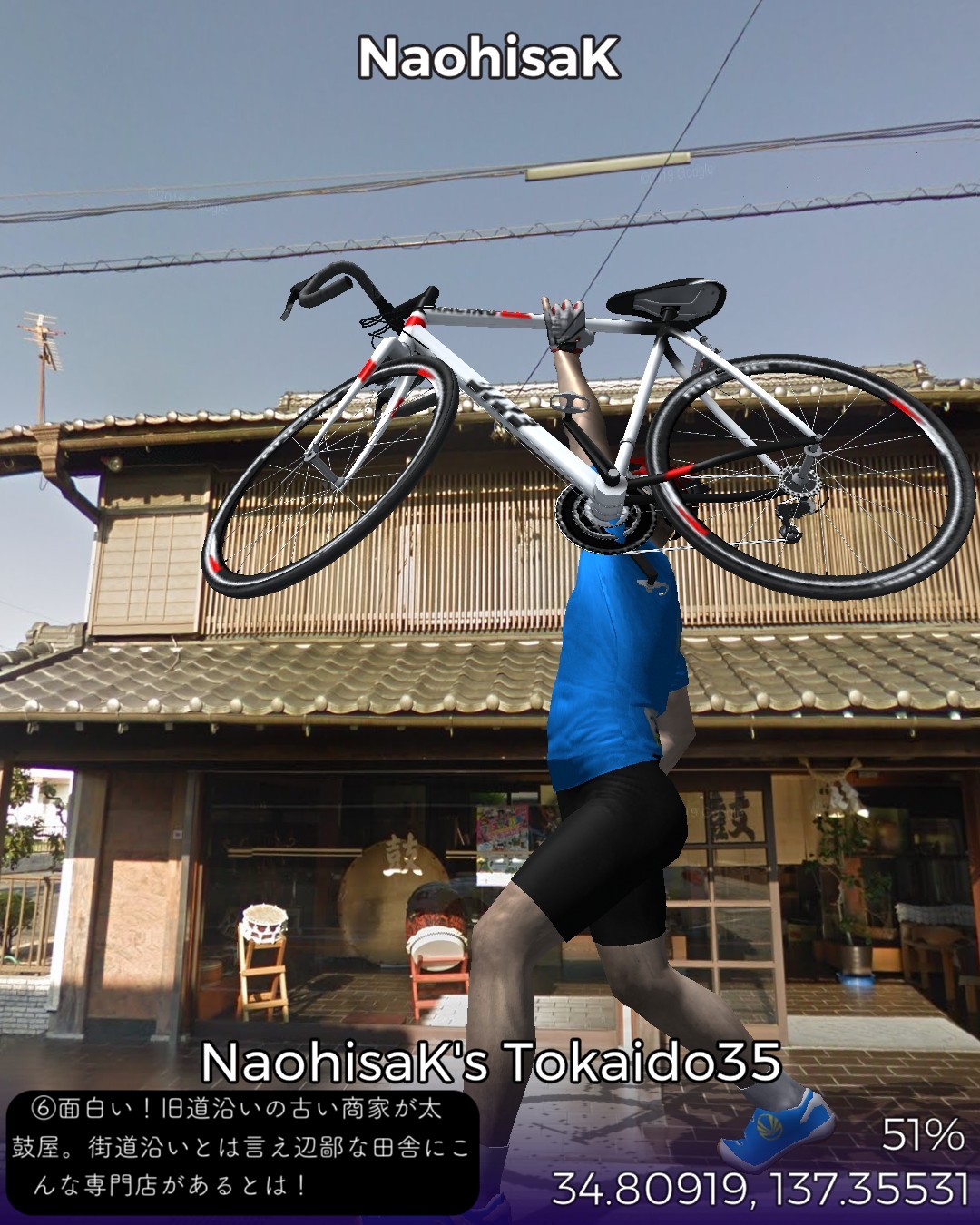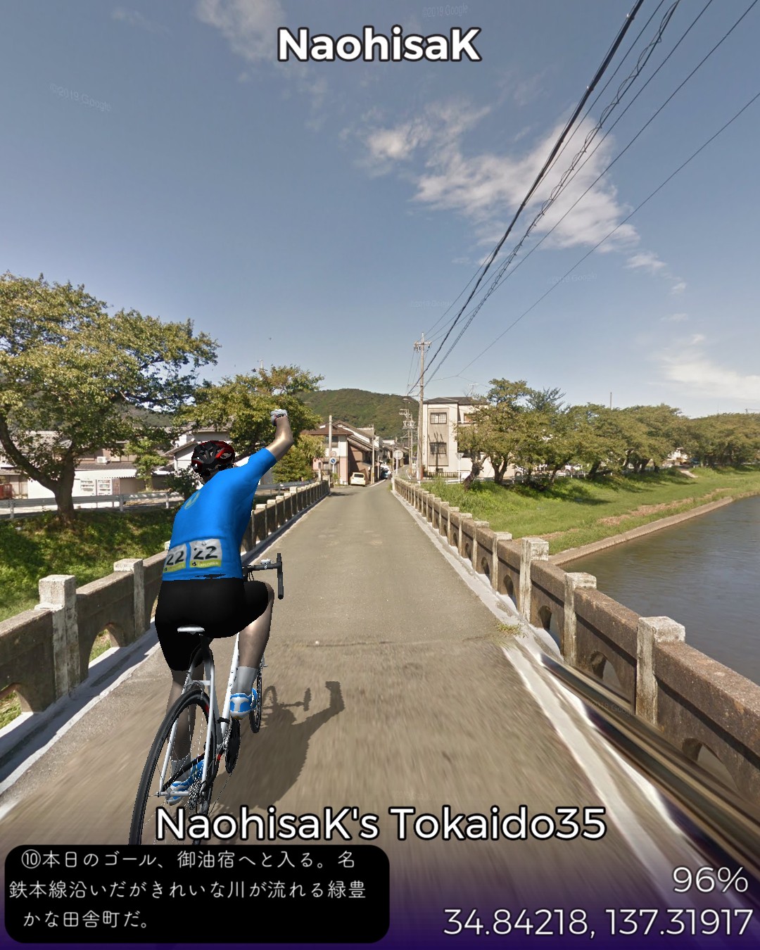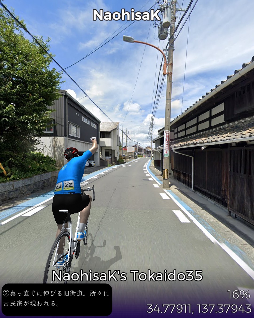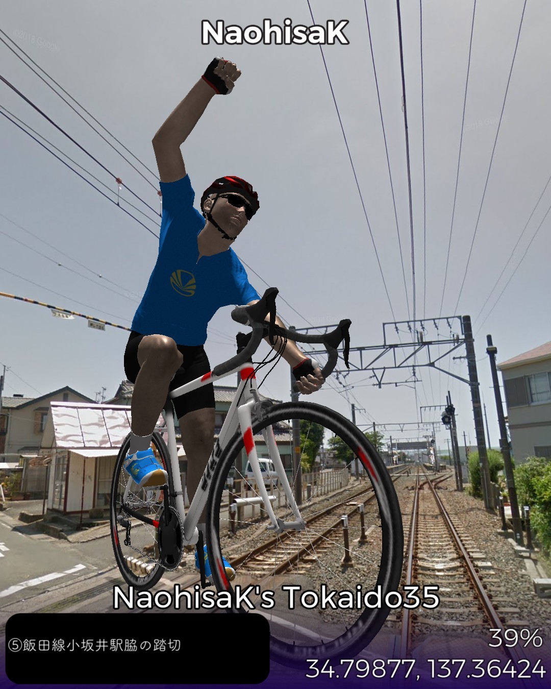 東海道バーチャルサイクリング36日目。豊橋に当たる吉田宿から御油宿まで12km。豊川に架かるこの町の名前の由来となった豊橋を渡るとずっと一直線の狭い道を往く。宿場の間だが古民家が続く旧道らしいに道筋で気分がいい。国道1号に合流して名鉄の陸橋から眺めると周りはどこまでも続く田園地帯。ゴールの御油宿は宿場町の風情は残していないが緑の多い田舎町。同じような田舎道でも静岡県とは何か雰囲気が違うな。中京文化圏に入ってきたということかな。