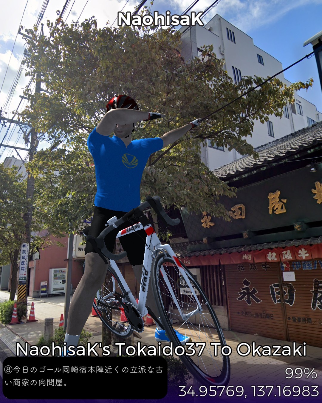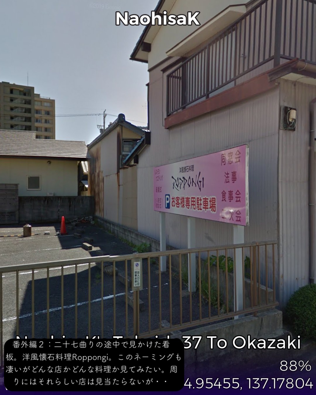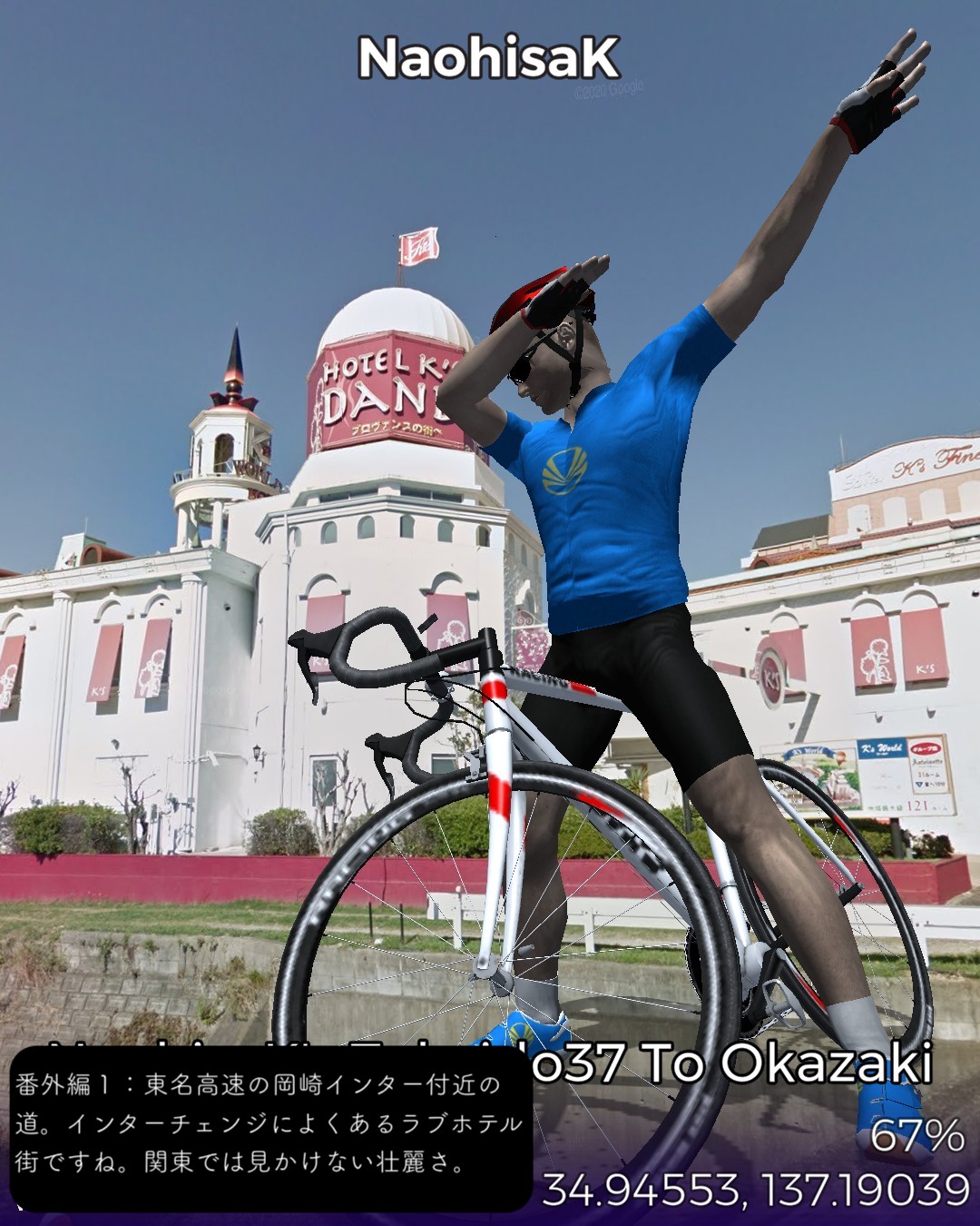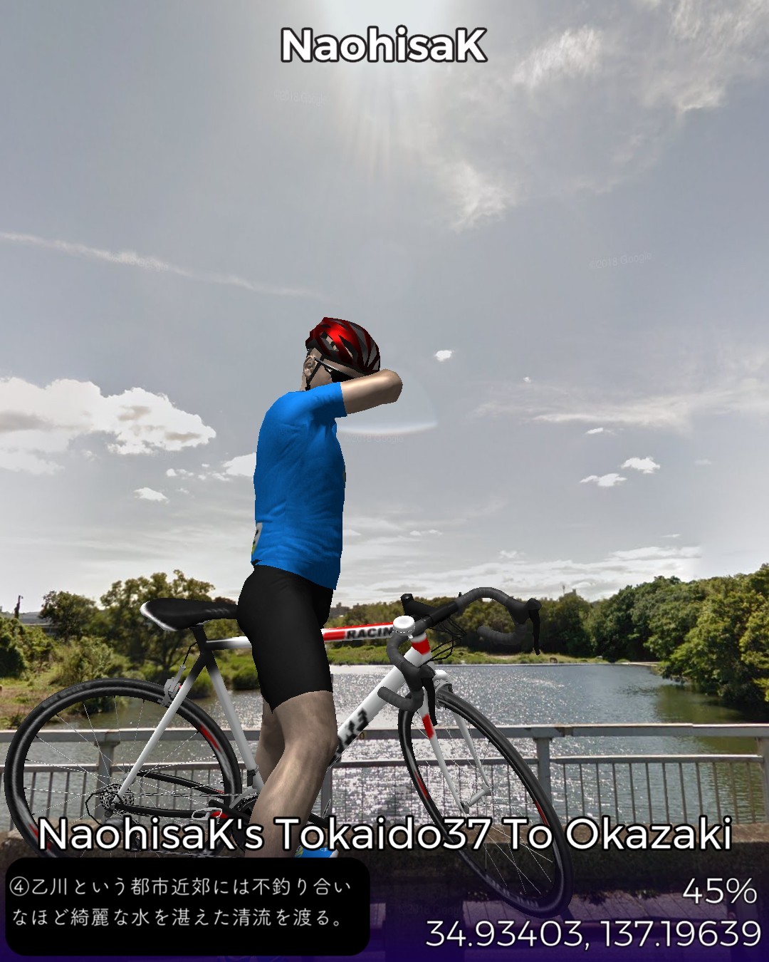 東海道バーチャルサイクリング38日目。藤川宿から岡崎宿まで8km。藤川宿の出口にはまたもや立派な松並木があった。その後、ここまでありがちな古民家が並ぶ旧道もあったが、だだっ広い畑の中の道を往ったり、こんな街中には不釣り合いな美しい清流の川を渡ったり、そうかと思うと壮麗なラブホテルが並ぶ高速インターチェンジの出入り口を走ったりと、バリエーション多彩な道を通り抜けて岡崎市街に入った。岡崎市街はまた岡崎城下二十七曲りという目まぐるしくあっちの街角こっちの街角を曲がる複雑な経路を経て本日の終点の岡崎宿本陣跡まで到達した、距離にしてはずいぶん色々な道を走った日であった。