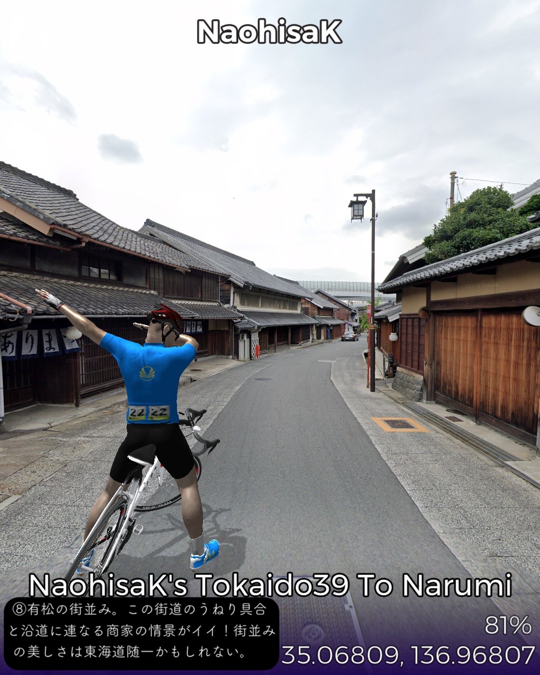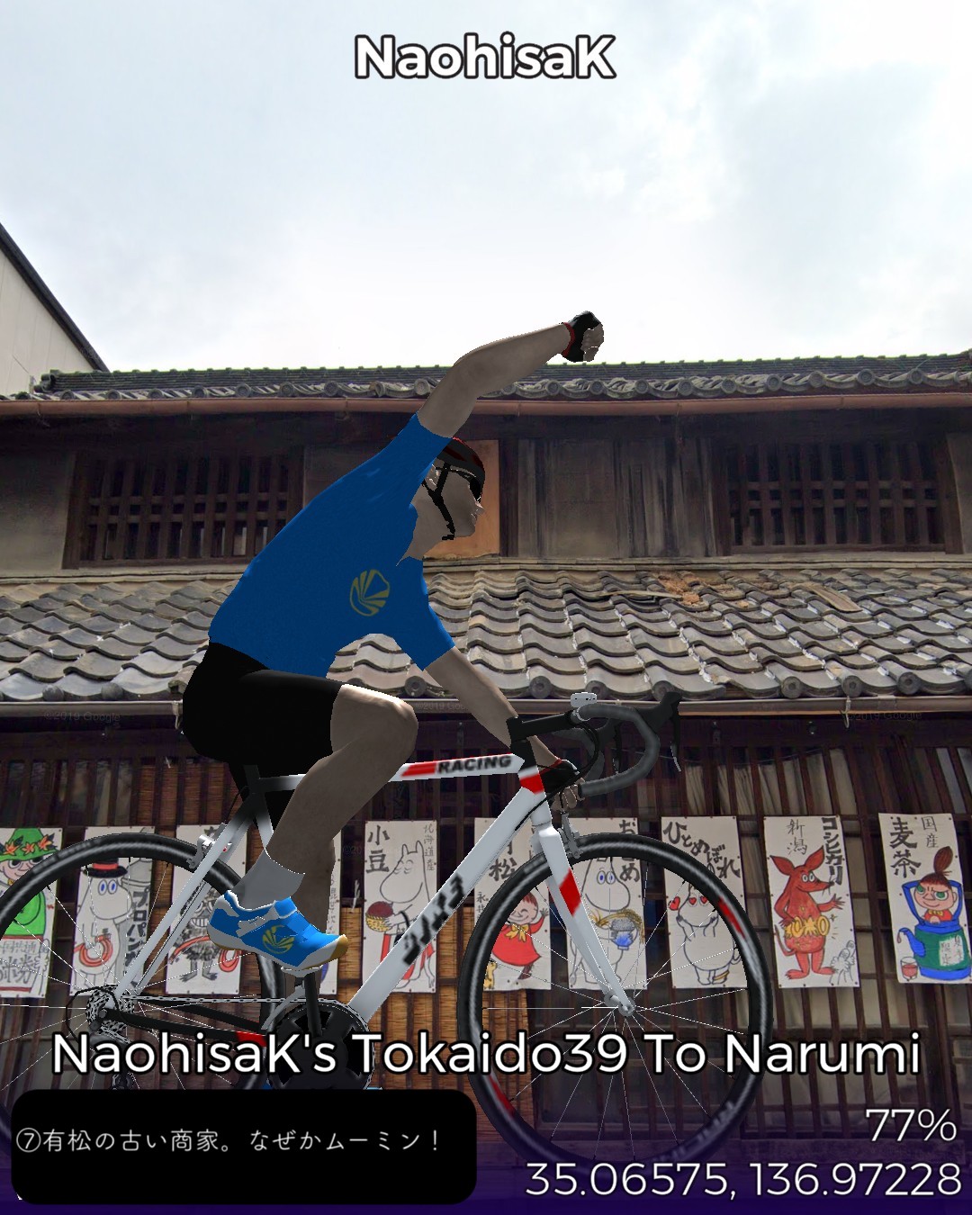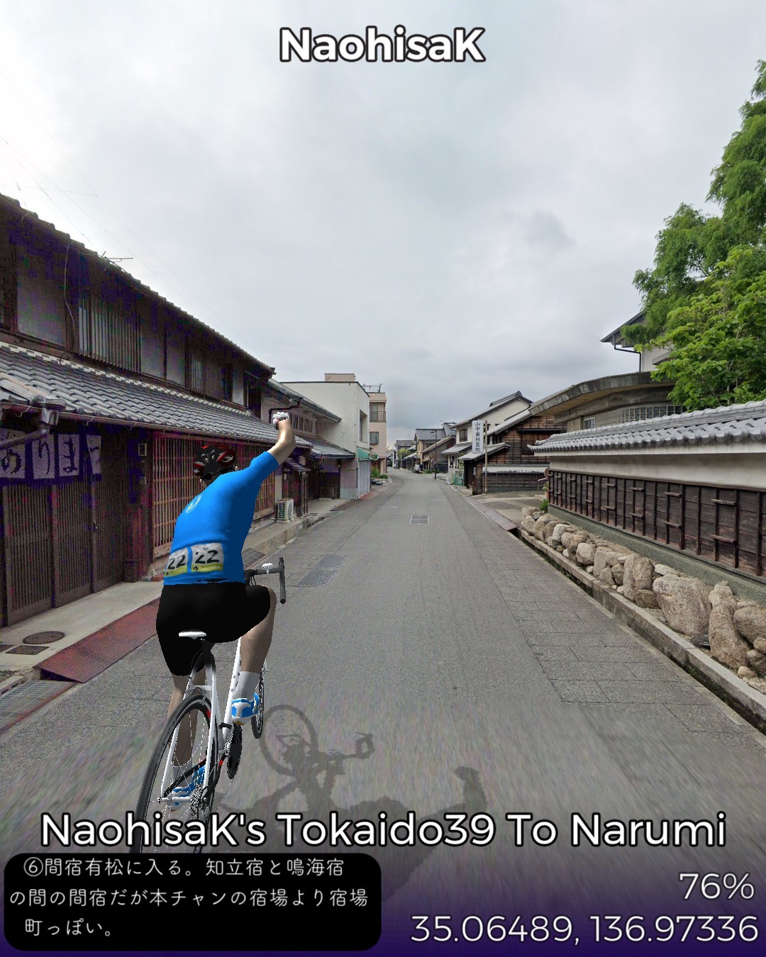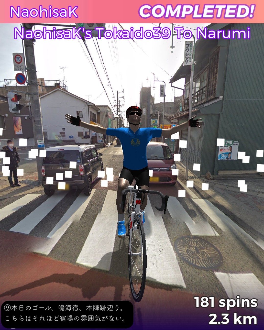 東海道バーチャルサイクリング53日目。ちょうど五十三次になってる!…