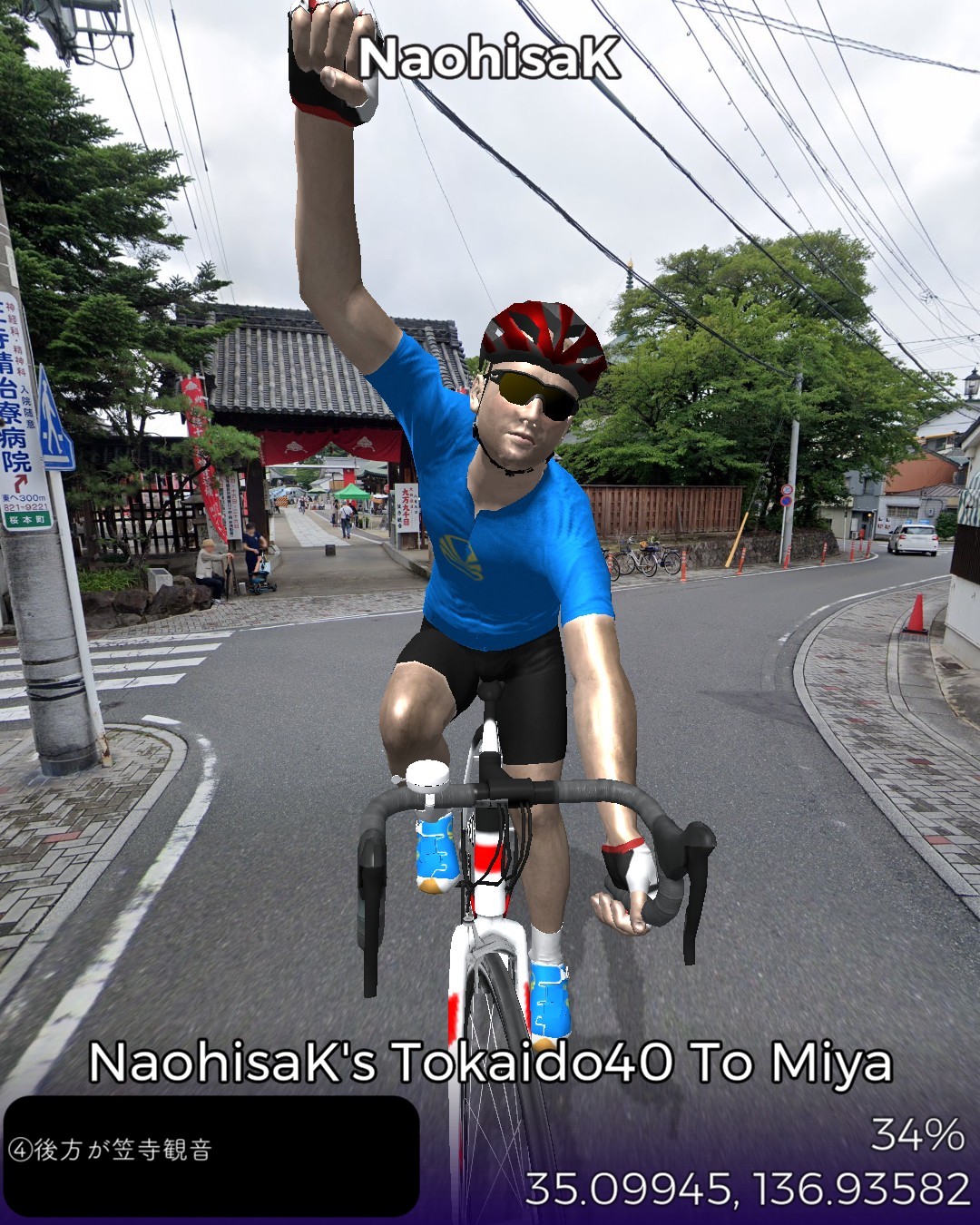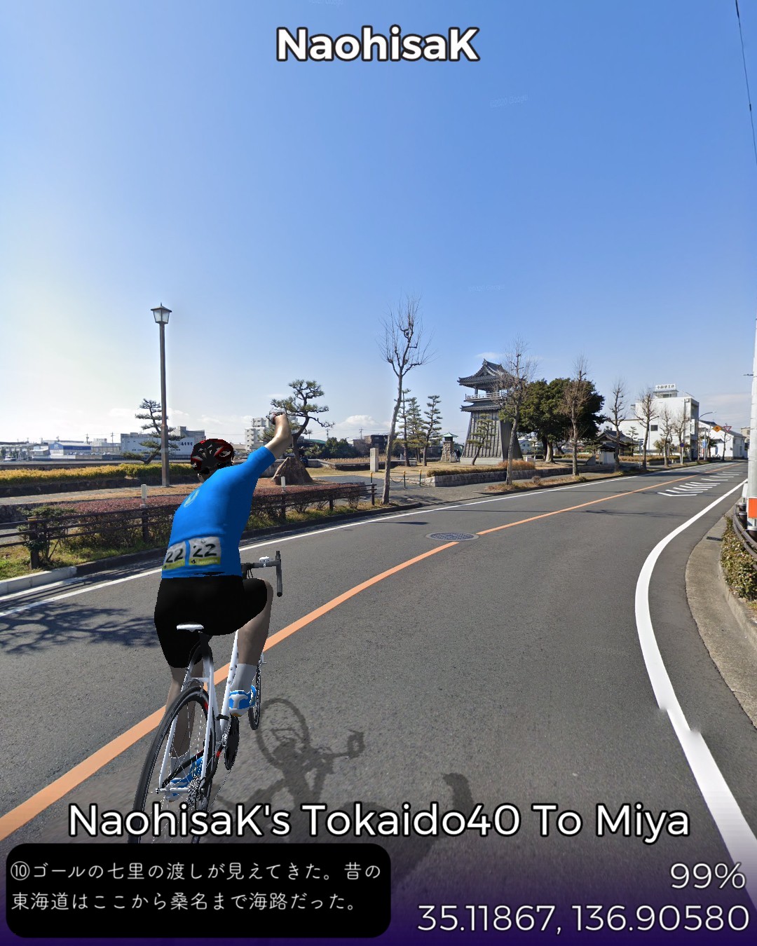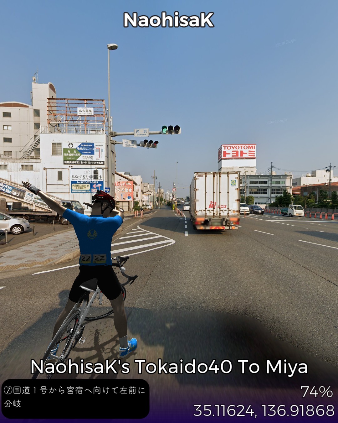 東海道バーチャルサイクリング53日目。ちょうど五十三次になってる!…