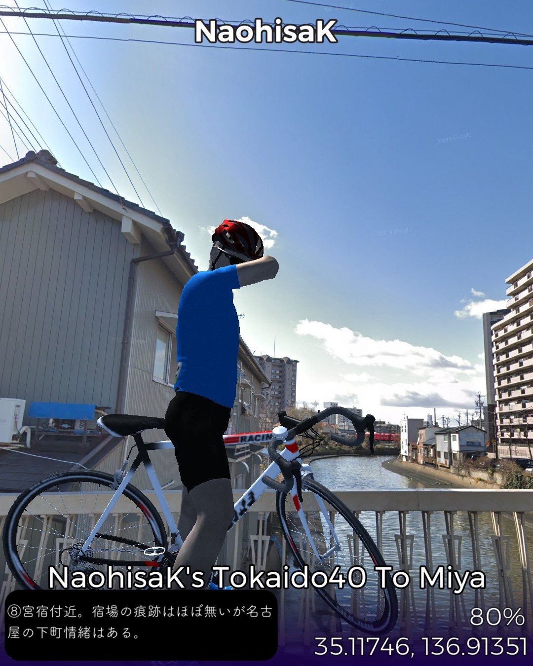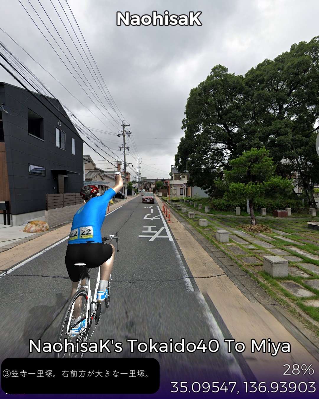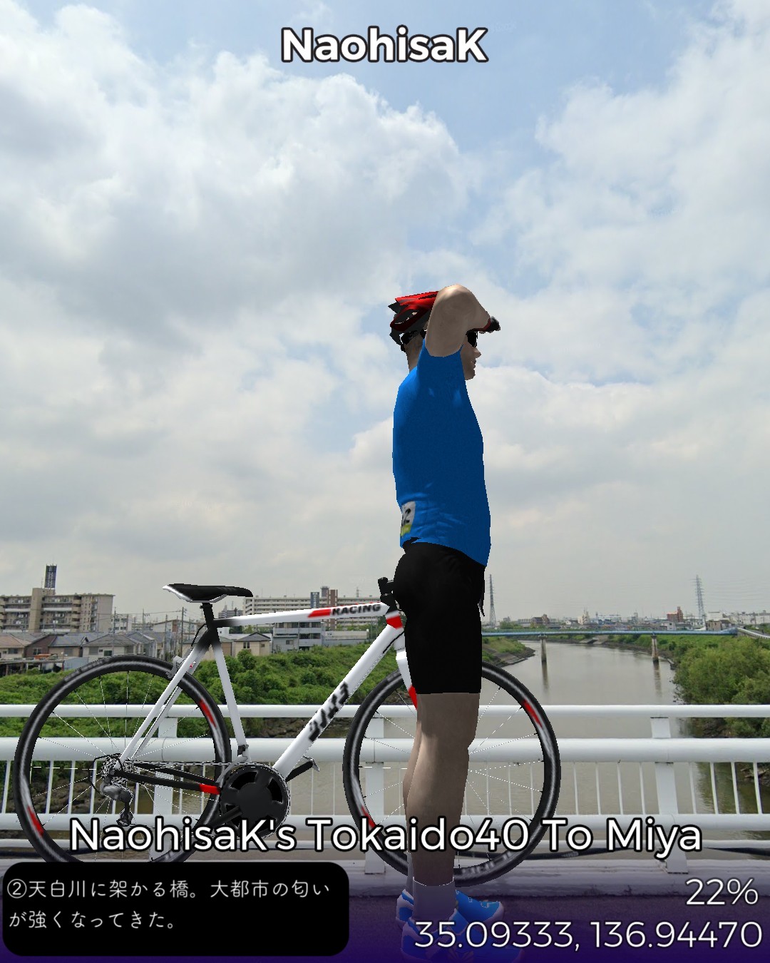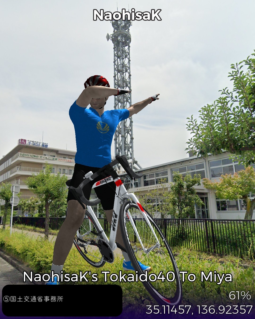 東海道バーチャルサイクリング53日目。ちょうど五十三次になってる!…