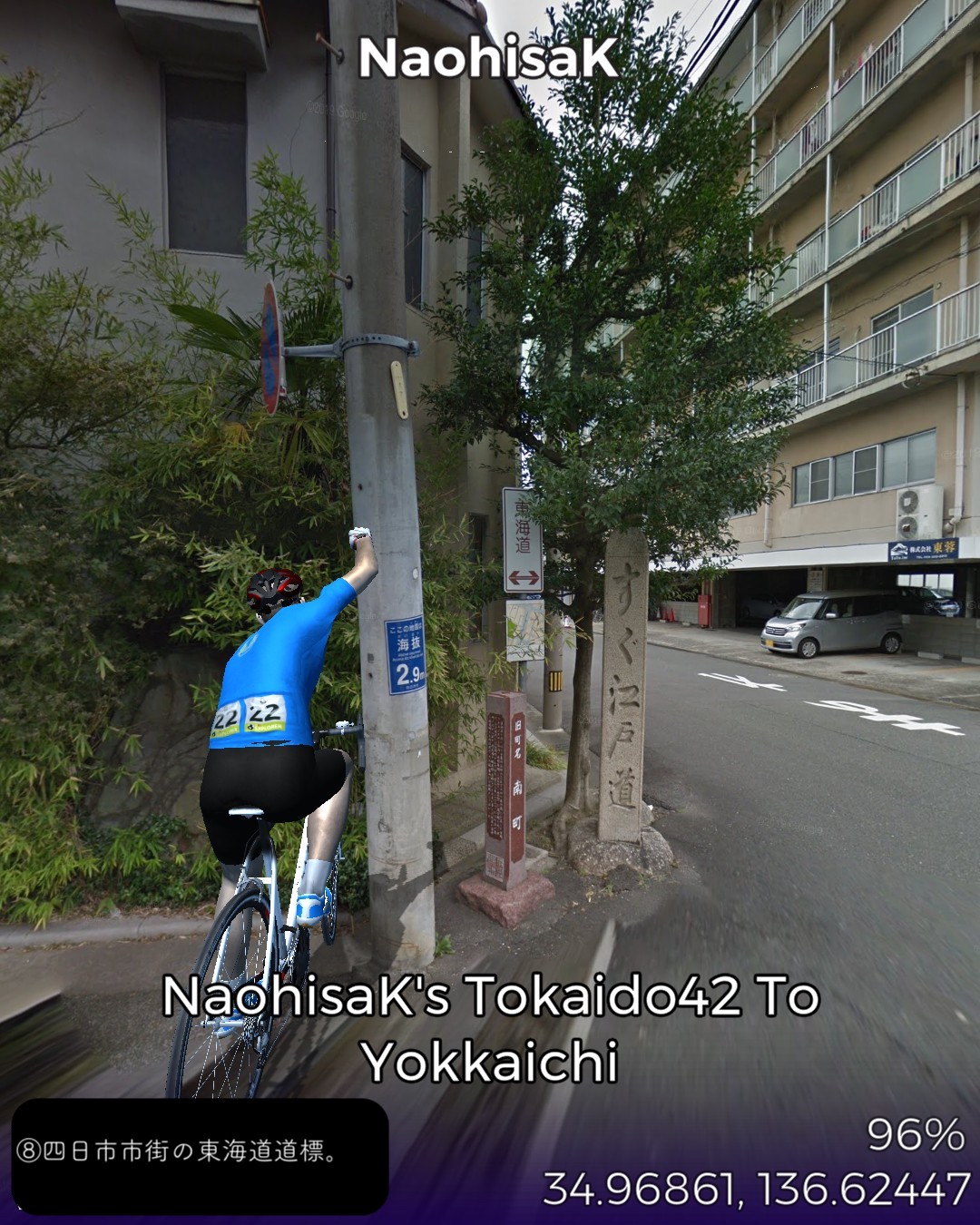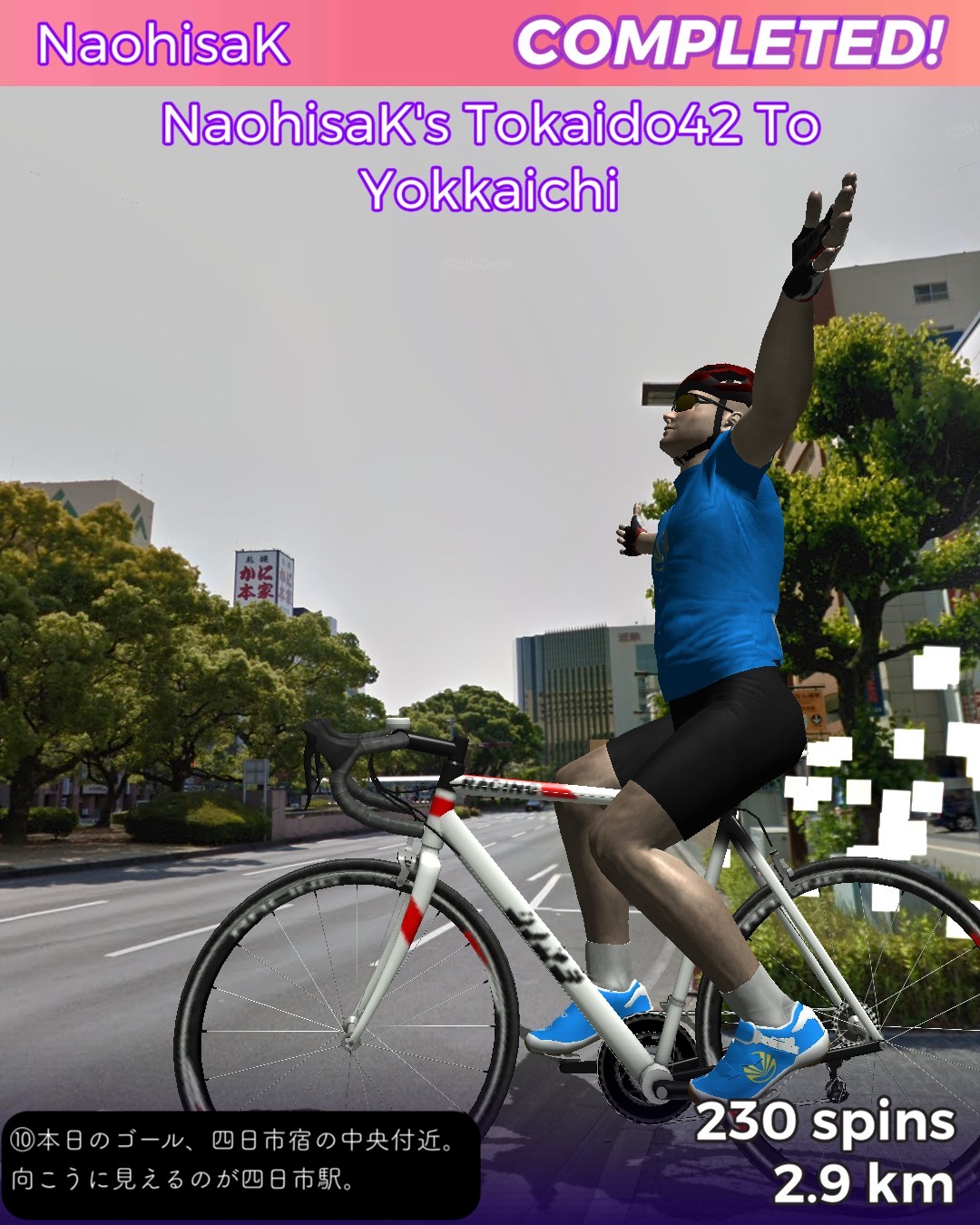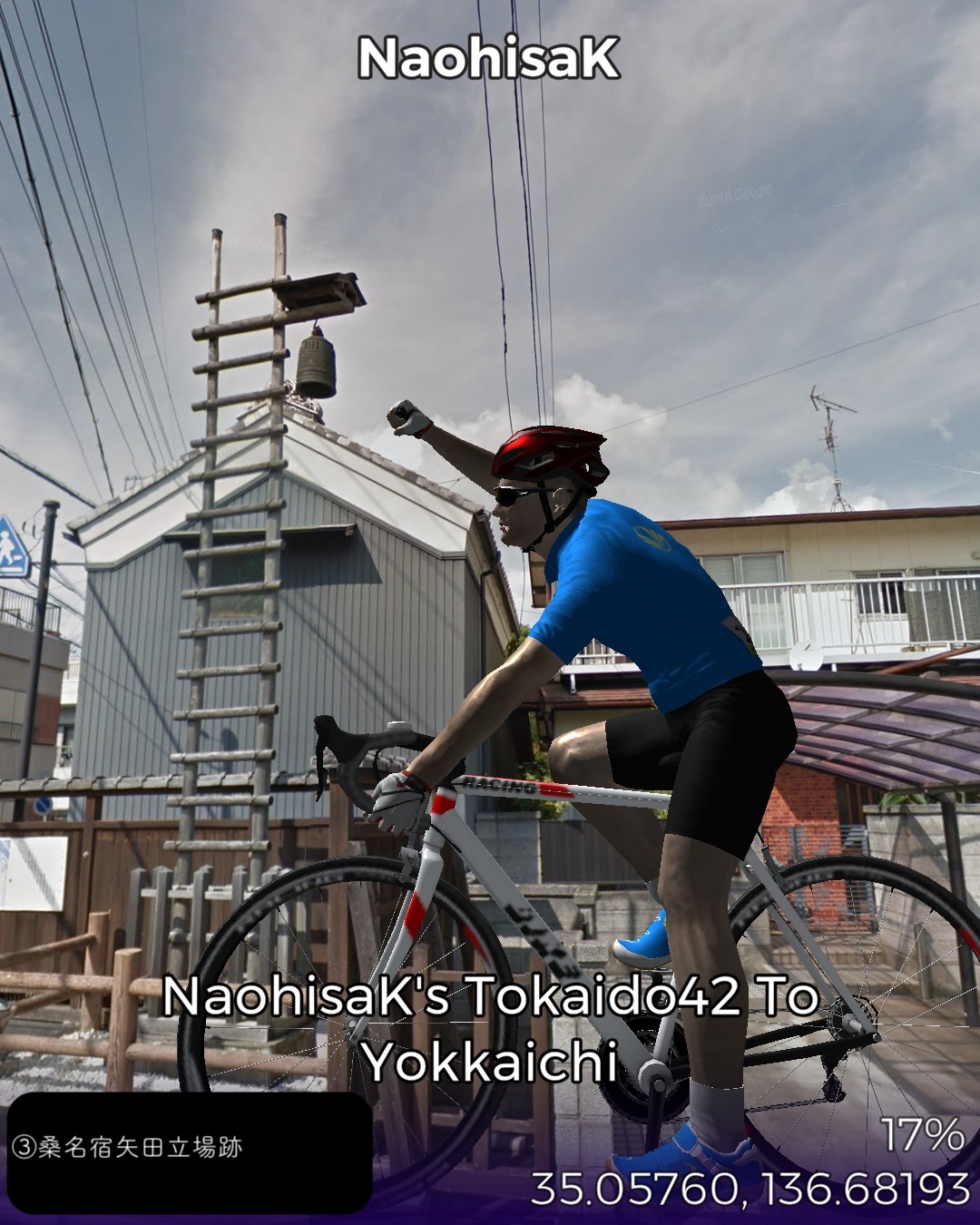 東海道バーチャルサイクリング53日目。ちょうど五十三次になってる!…