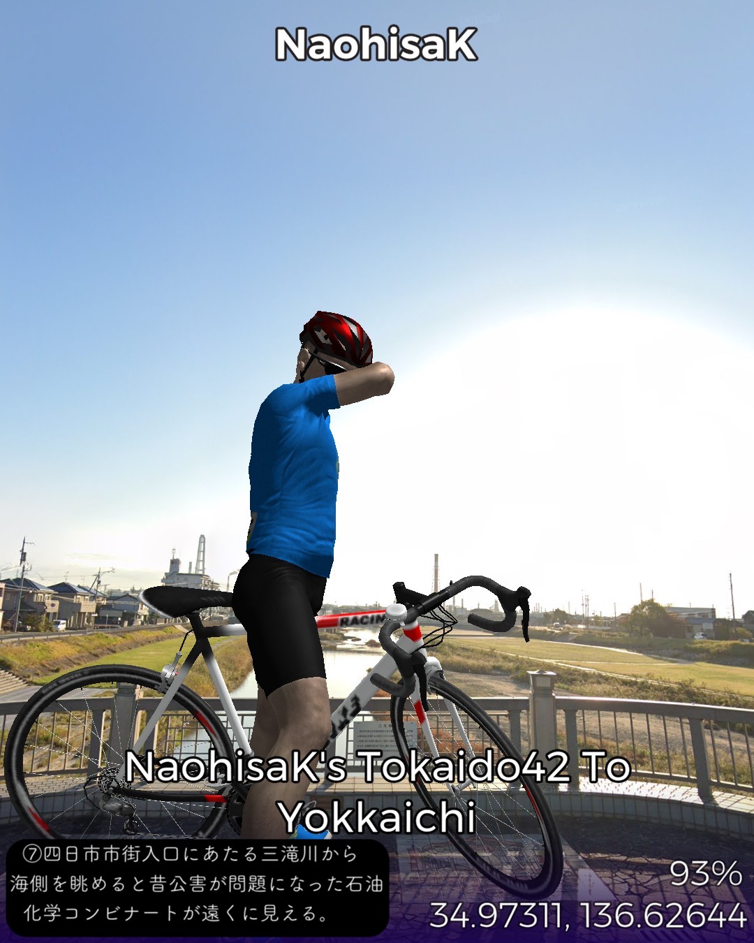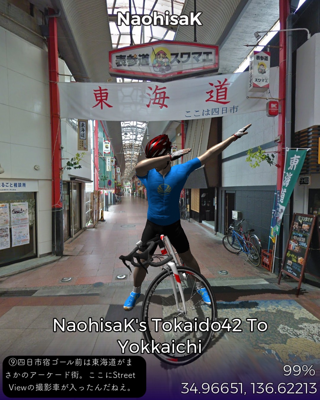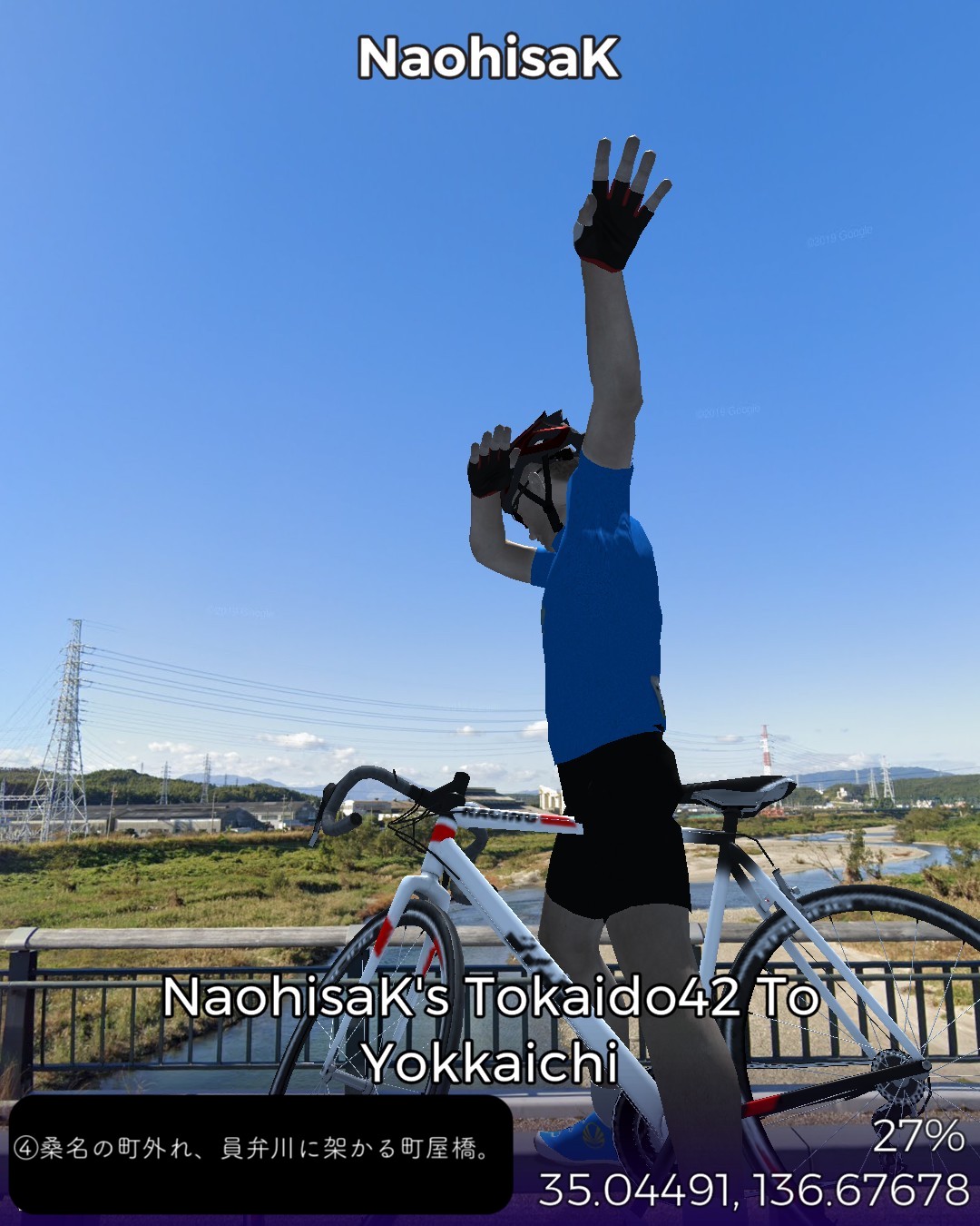 東海道バーチャルサイクリング53日目。ちょうど五十三次になってる!…