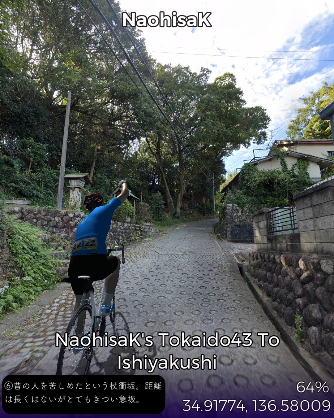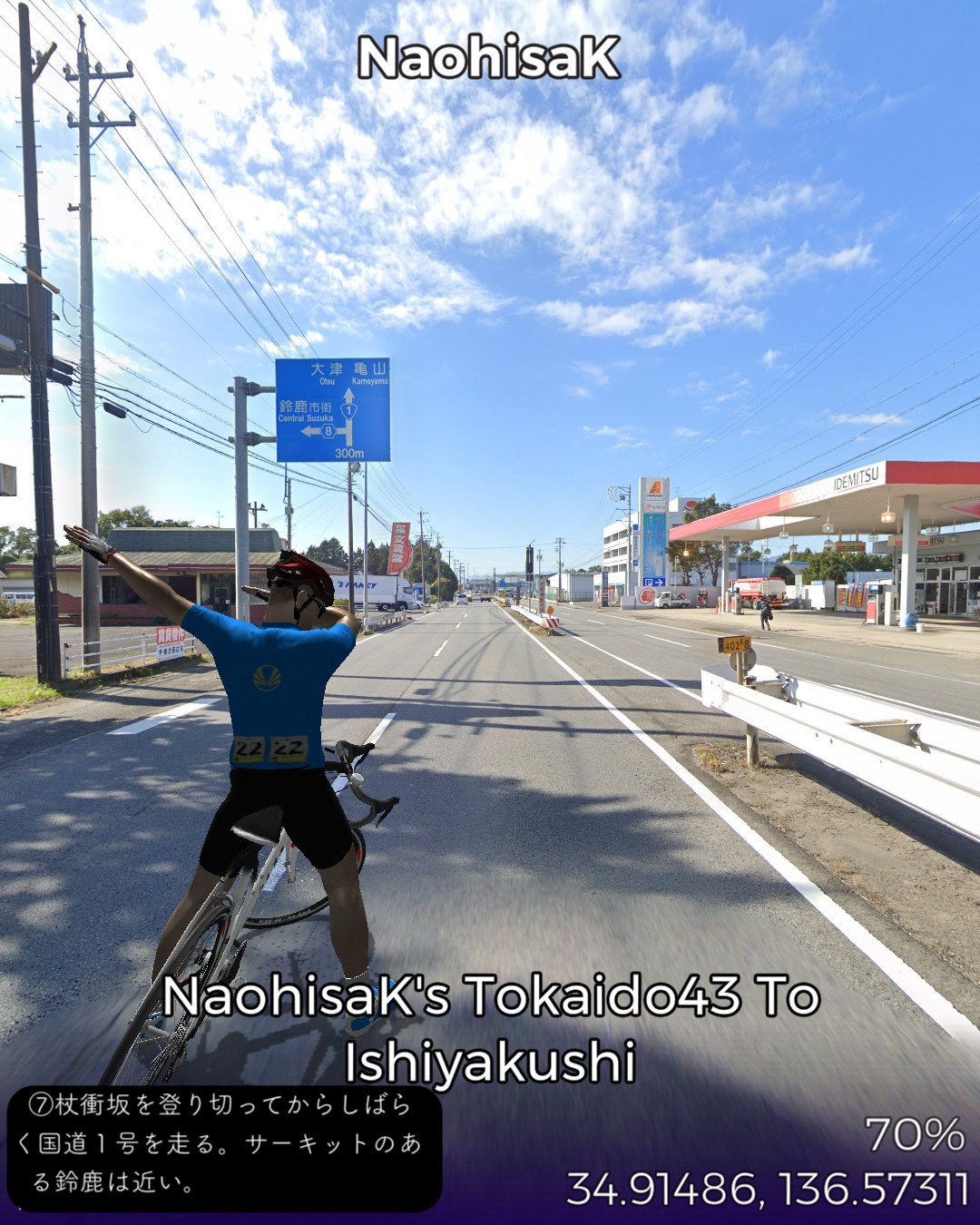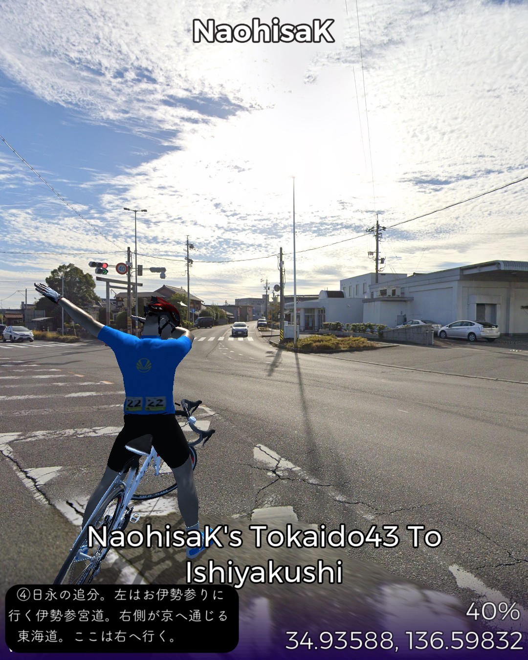 東海道バーチャルサイクリング44日目。四日市宿から石薬師宿まで12km。四日市から途中の内部までは、昔ながらの自然に溶け込んだ人の生活が垣間見えるような旧街道らしい道筋。この地方特有の昔のお風呂屋さんに似た(煙突はないが)どっしりした二階建ての古い木造の民家が多い。こんな麗しい四日市を灰色の大気に侵された公害の町のイメージに貶めたのは実に不幸だ。内部川を越えると静岡以来の久々の急坂、杖衝坂が待ち受ける。その上は鈴鹿のうねった丘陵地帯。自動車産業が盛んな鈴鹿市が近いせいか国道1号沿いは田舎ながら都会の郊外のような現代的な建物が目立つが、一本入った旧道沿いは時代に取り残されたような昔ながらの街道風景。本日のゴール石薬師宿も旧道そいにひっそりと肩を寄せ合ったような古い家並が続いていた。