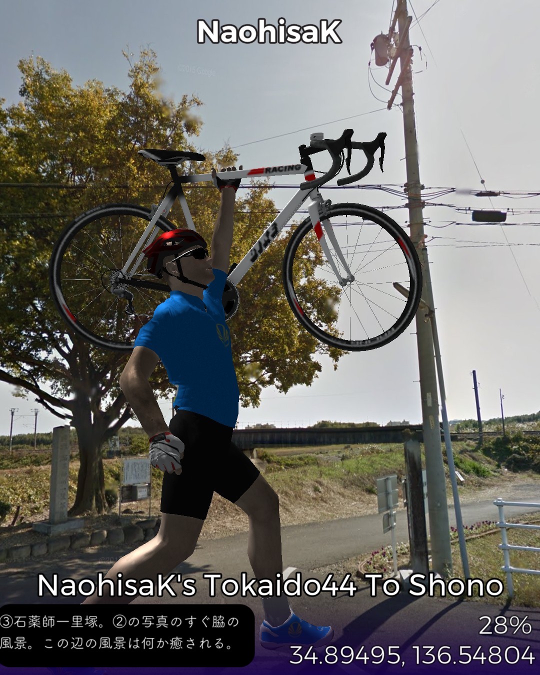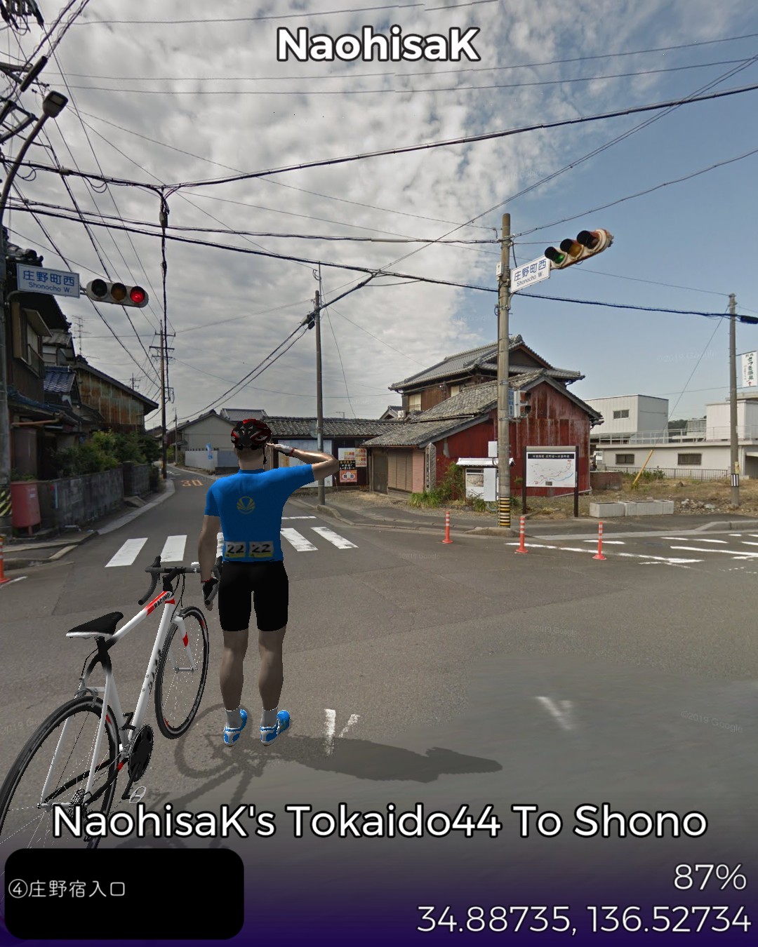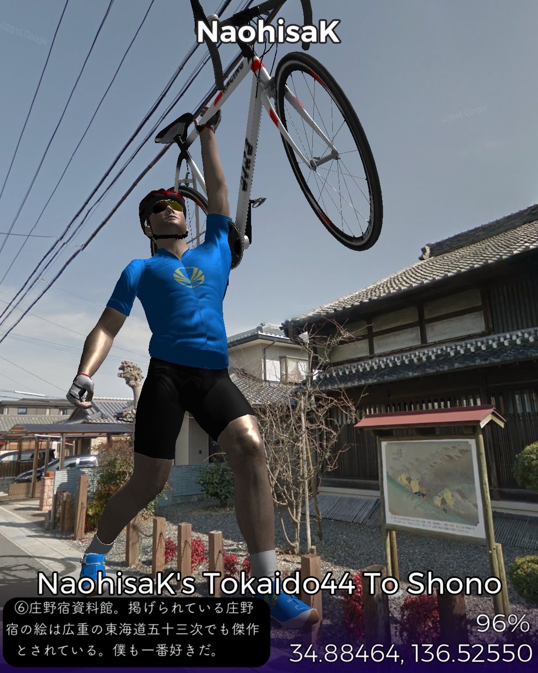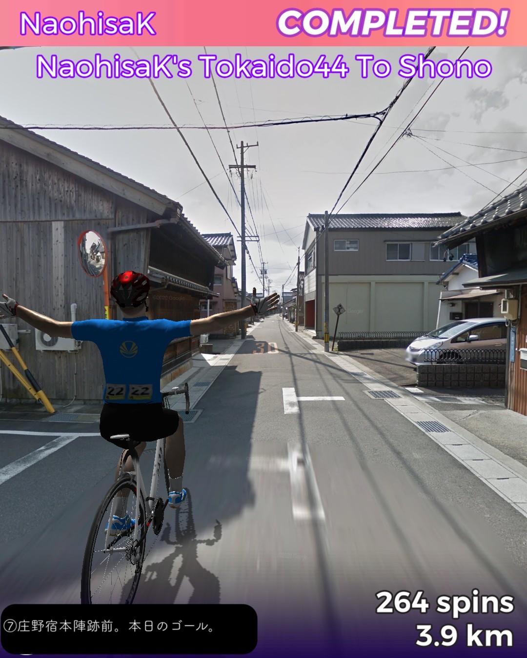 東海道バーチャルサイクリング53日目。ちょうど五十三次になってる!…