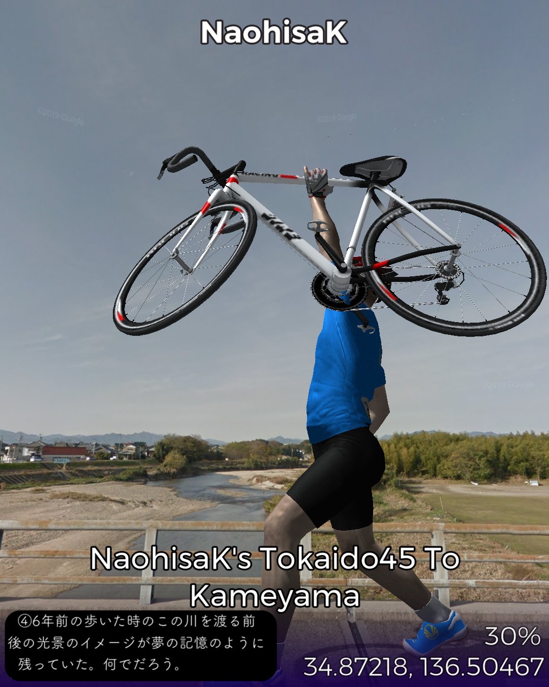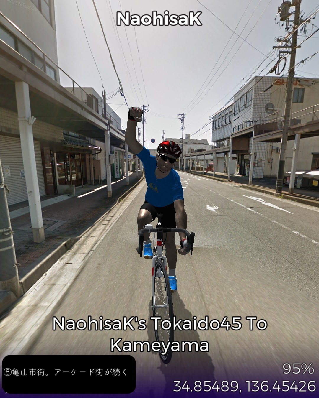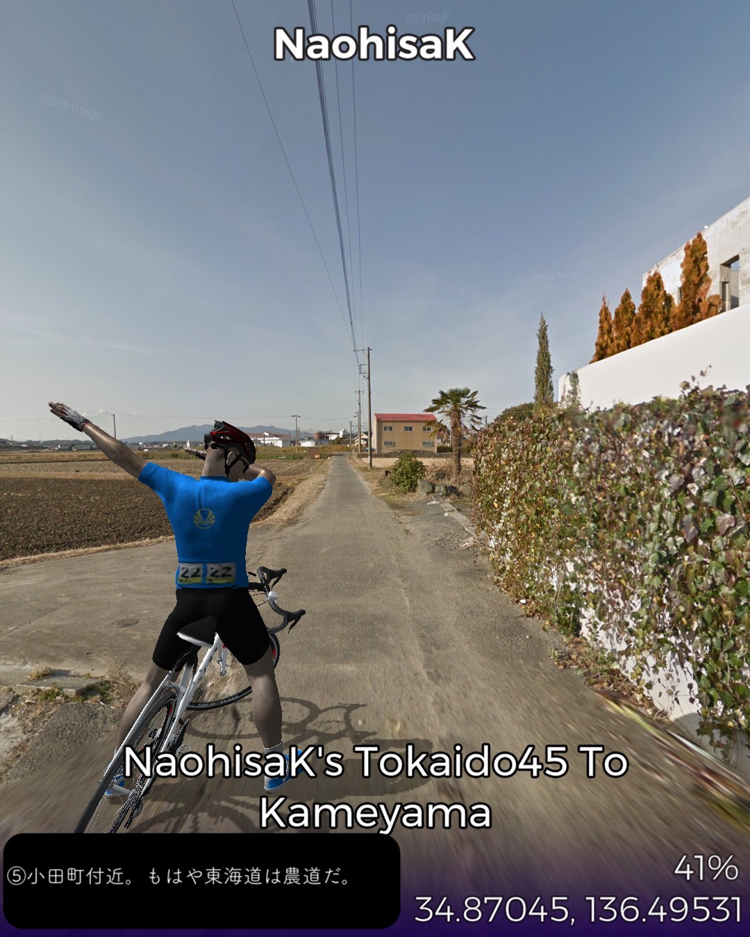 東海道バーチャルサイクリング46日目。庄野宿から亀山宿への9km。山野を駆け巡る田舎道の旧道コース。遠くに山を望む開けた田園地帯だが、川は結構深い谷になっていたりする。そんな川を渡ってグネグネした田舎道沿いの村落を進んでゆくという夢の記憶のようなイメージがずっと頭に残っていて実際に行ったところのような気がするんだけど何処だったけな、と思っていたのだが、それはこのルートを6年前に通った時の記憶ということが今日の行程で判明した。東海道でもそのような場所がいくつかある。街道をあちこち歩いているとデジャヴ感というか巨大な箱庭の中を堂々巡りしているような感覚になる。多分街道風景というのが共通の日本の原風景だからではないかと思う。そんな中でも富士山のような明らかなランドマークがあるわけではなく場所は不明だけど、ちょっと特徴的な道筋を、疲れて夢うつつで歩いている時にこのような夢の記憶になるのではないかと自己分析している。ゴールの亀山はそこそこ大きな町だが河岸段丘の上の東海道に沿って古い家並が続くノスタルジックな町。