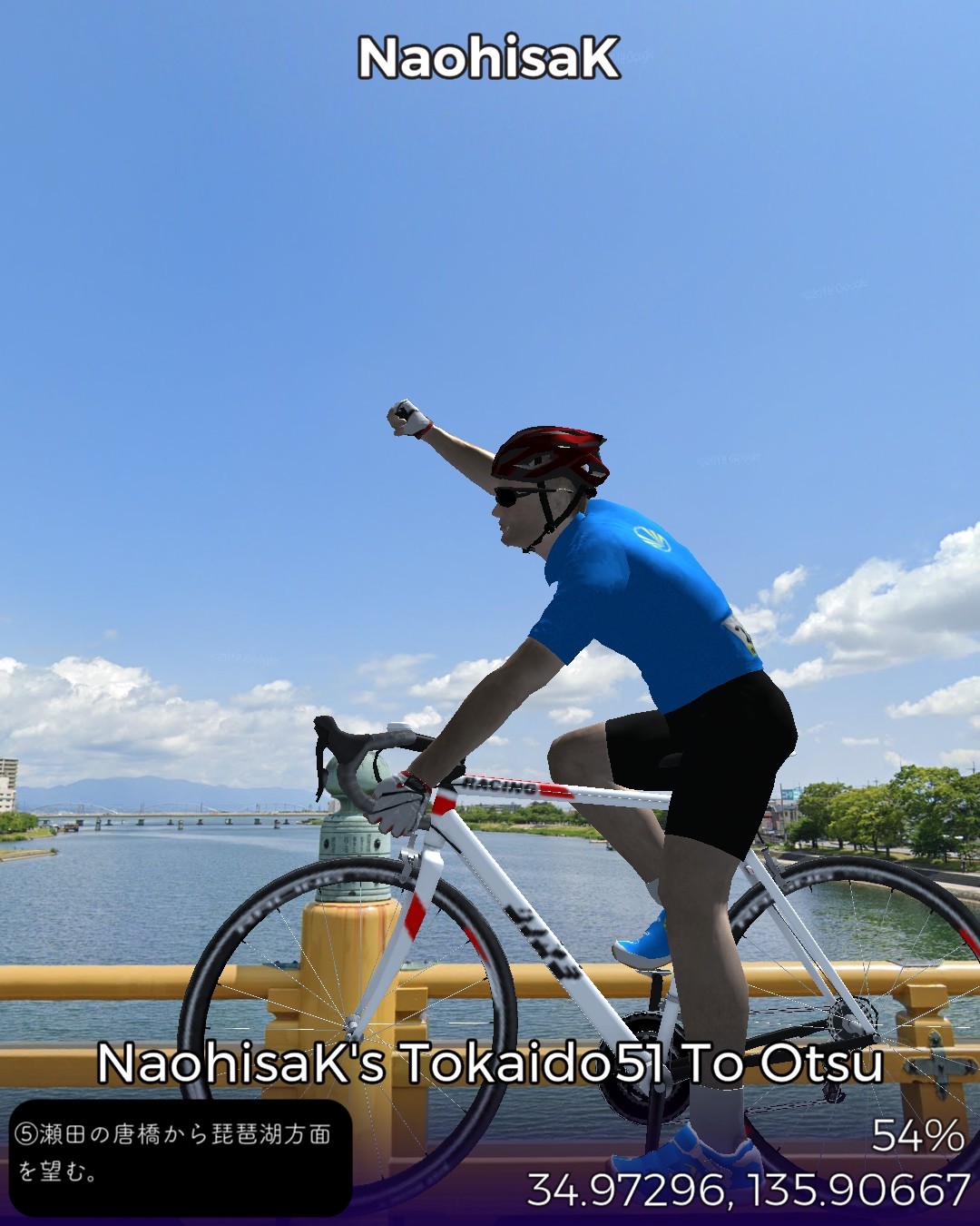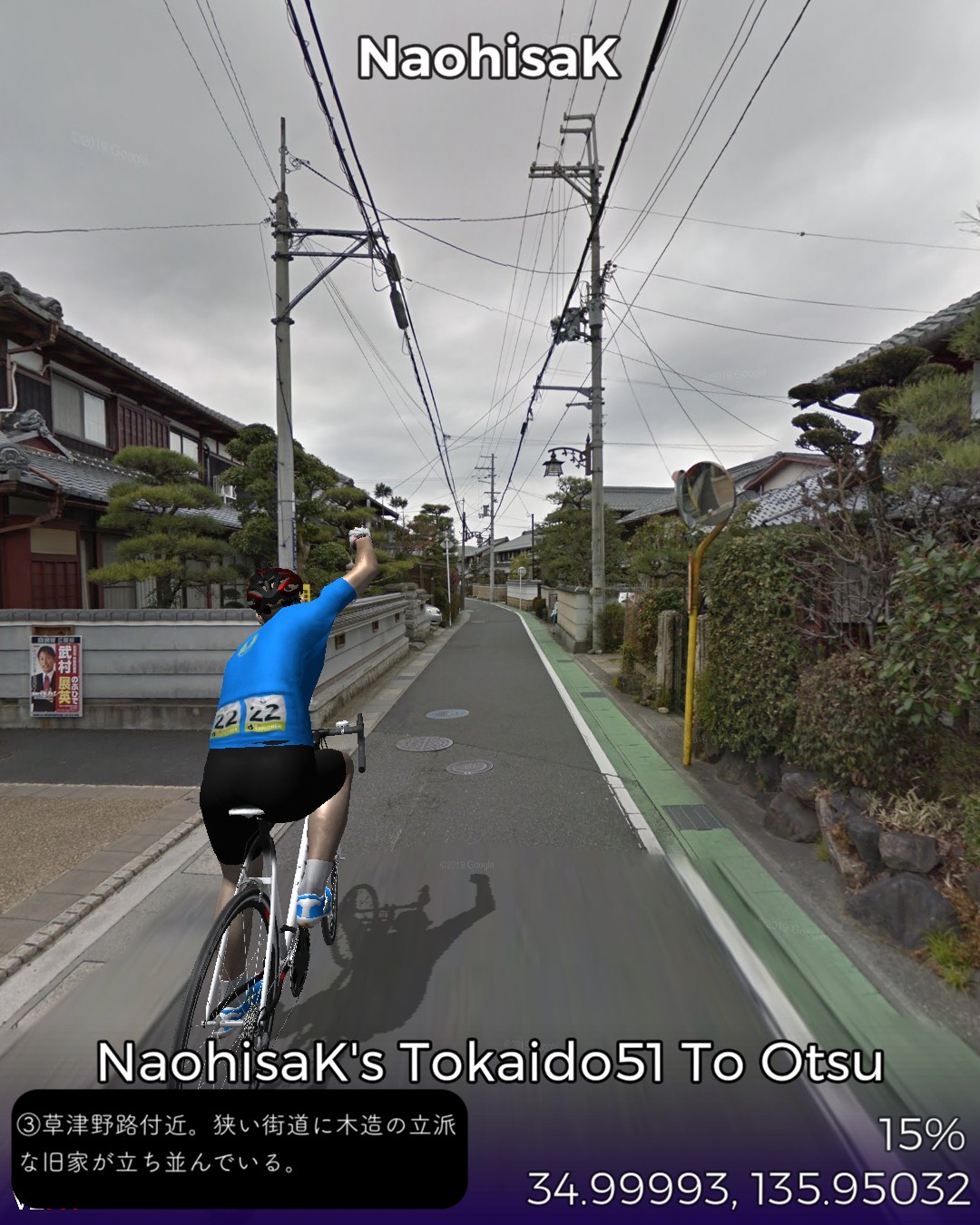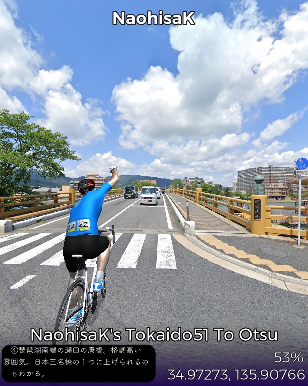 東海道バーチャルサイクリング53日目。ちょうど五十三次になってる!…