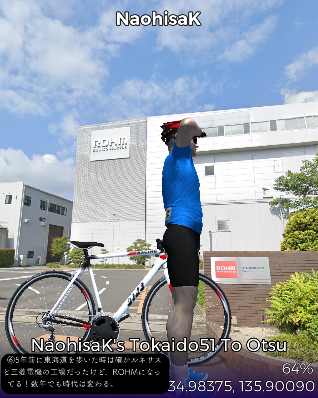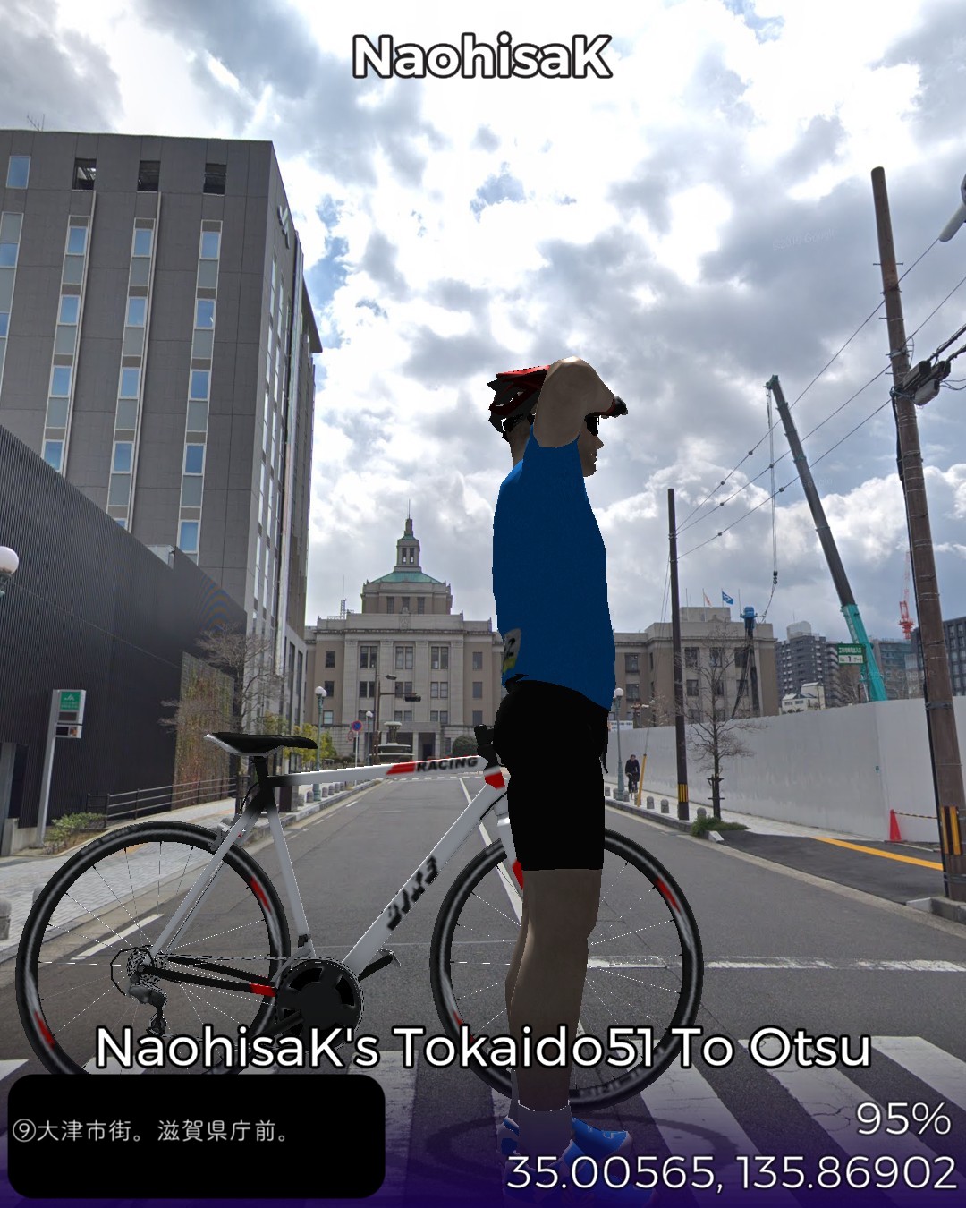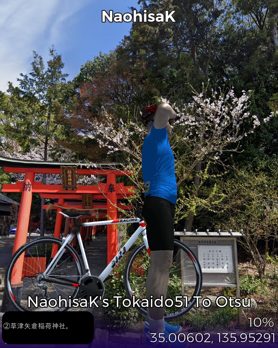 東海道バーチャルサイクリング53日目。ちょうど五十三次になってる!…