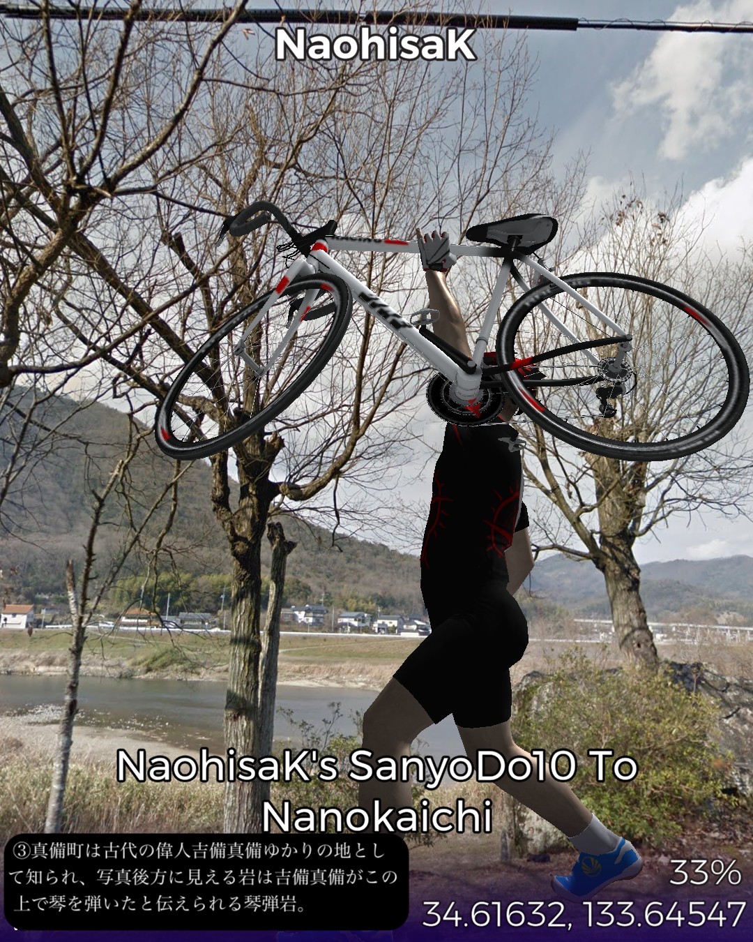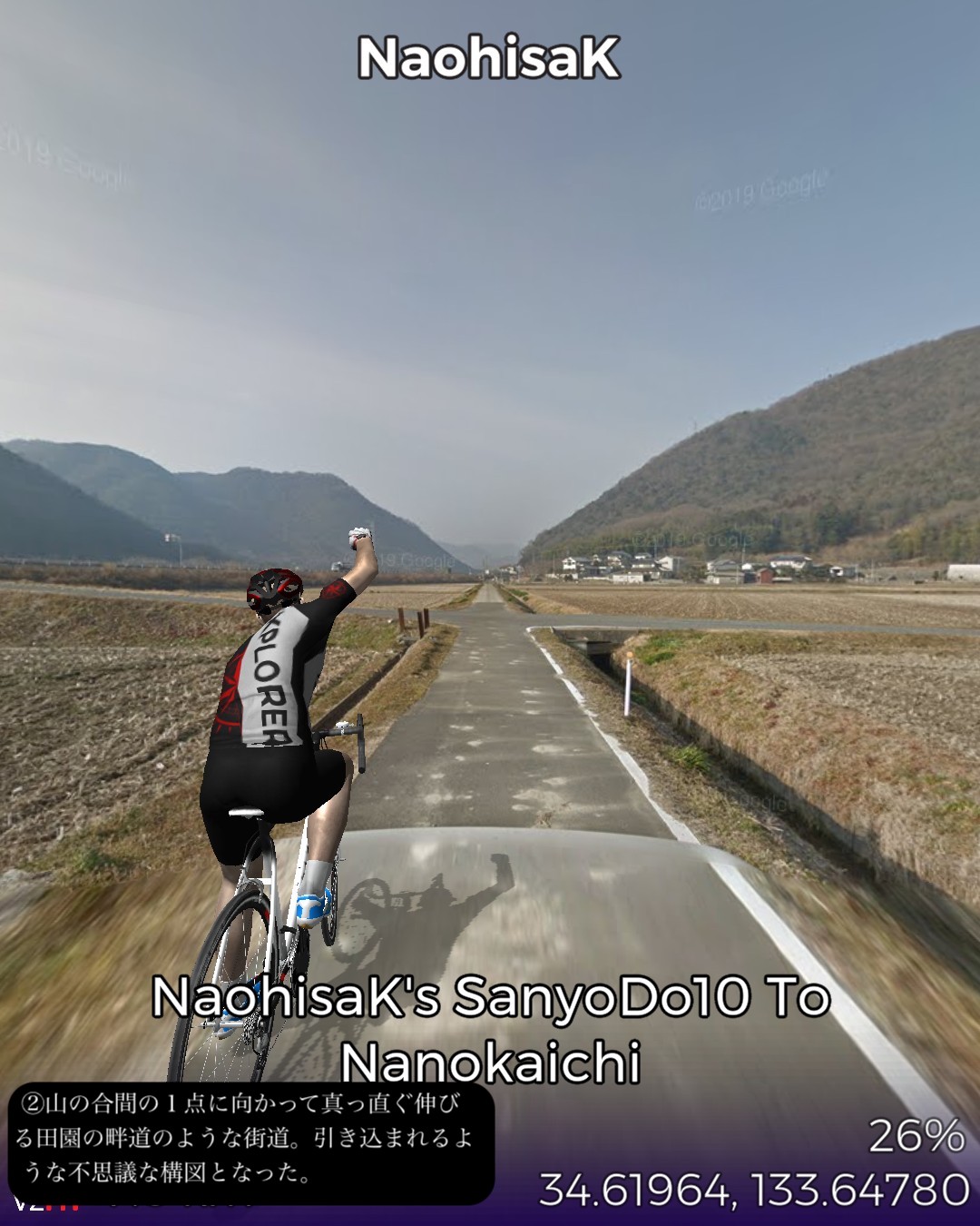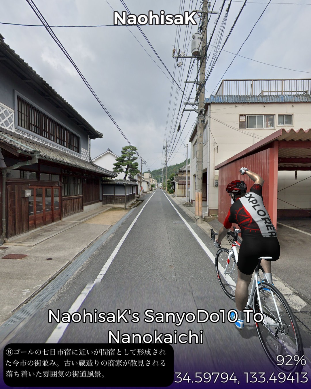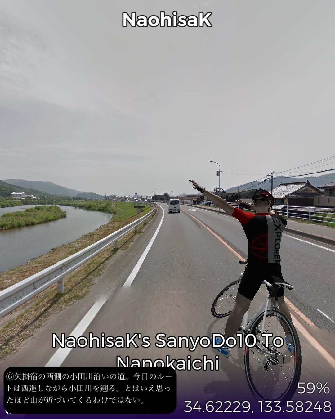 VRサイクリング、山陽道10日目。古代の偉人吉備真備に由来する真備町の川辺宿から井原市に位置する七日宿までの28kmの行程を一気に走り抜けた。真備町は記憶に新しい2018年の西日本豪雨の最大の被災地の1つ。前日に渡ったばかりの大河高梁川とその支流小田川に囲まれた広く田園の広がる土地柄だが、これらの川が8箇所で決壊してこの地域全域が広く洪水に見舞われ52人の死者を出した場所だ。VRで観ている映像のストリートビューは2019年の撮影によるものらしいので1年ほど経過した時点で復興商店街などの災害の傷痕が見られた。2021年現在はどうなっているのだろうか。本日のルートはその氾濫した小田川と井原鉄道井原線に沿って西進する道筋。途中の宿場、矢掛宿は思いがけず昔の宿場の街並みが究極に保存された町だった。本陣と脇本陣の両方が昔の佇まいで残る全国で唯一の宿場町らしい。ゴールの七日市宿は岡山県の西端の町井原市街にある。岡山県はほぼ3日で東端から西端まで走破したことになる。いいペースだ。いよいよ次回は広島県に入る。