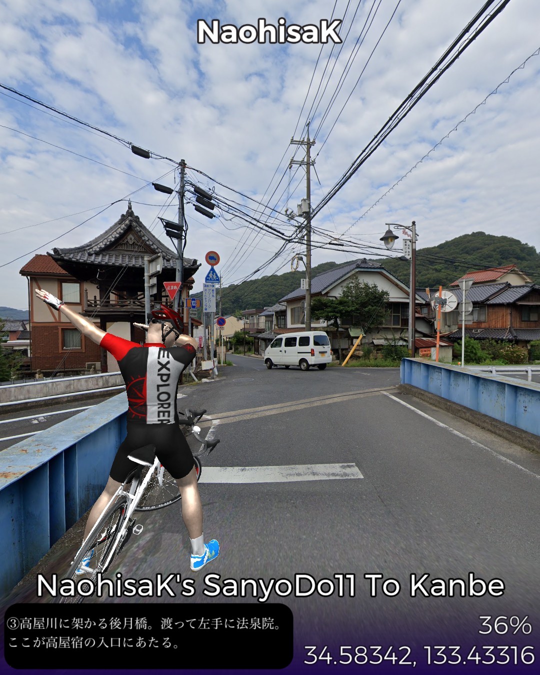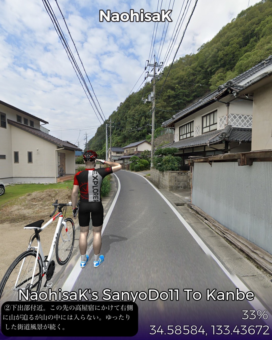 VRサイクリング、山陽道14日目。今日は本郷宿から山深い山間の道を…