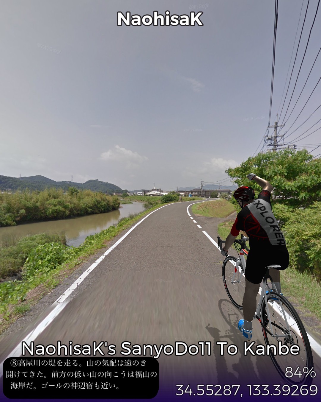 VRサイクリング、山陽道21日目。周囲から山で隔離された海辺の街富…