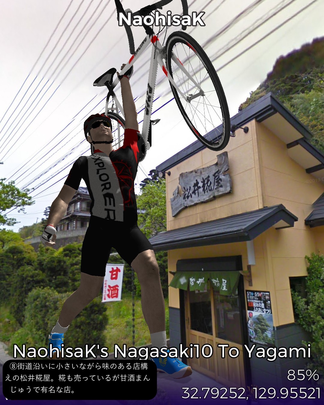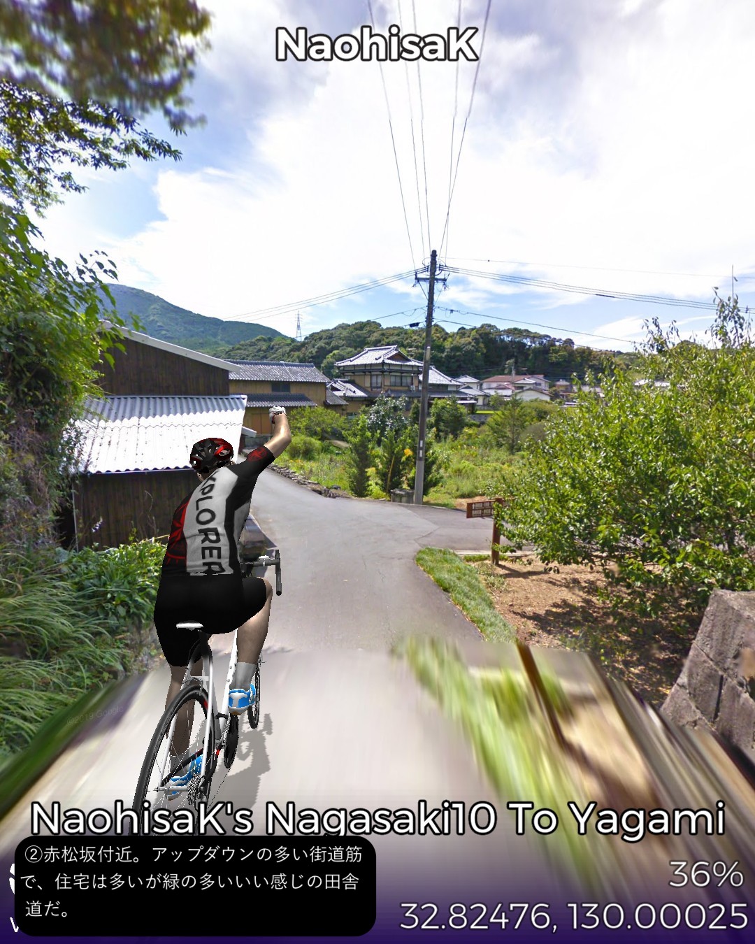 VRサイクリングの1日分のルート設定をするにあたり、できる限り旧街道ルートとしてかつストリートビューがあるルート設定で、最大30km程度街道の宿場単位のコマ分進むポリシーとしているが、Googleのマイマップ でのルート設定の限界というのがあり、起点と終点を指定してAI的に勝手に設定されるルートから意図するルートがかけ離れて複雑なルートの場合には記憶容量をオーバーするらしく長い距離のルート設定の自由度が制限されてしまう。今回も長崎まで31kmをルート設定すると意図する街道の道筋にならないので諦めて1宿分とした次第。