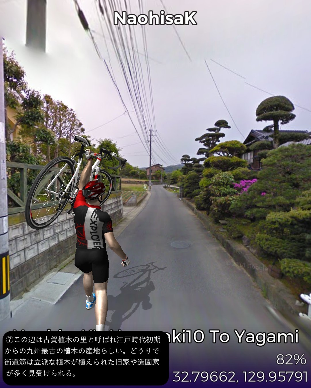 VRサイクリング、長崎街道4日目。ここまでほぼ1宿ずつ刻んできたが…