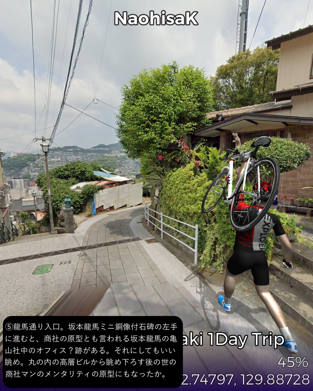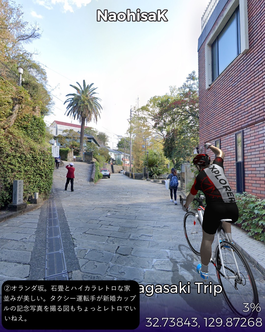 VRサイクリング。今日は長崎稲佐山を起点に西彼杵半島を縦断して西海…