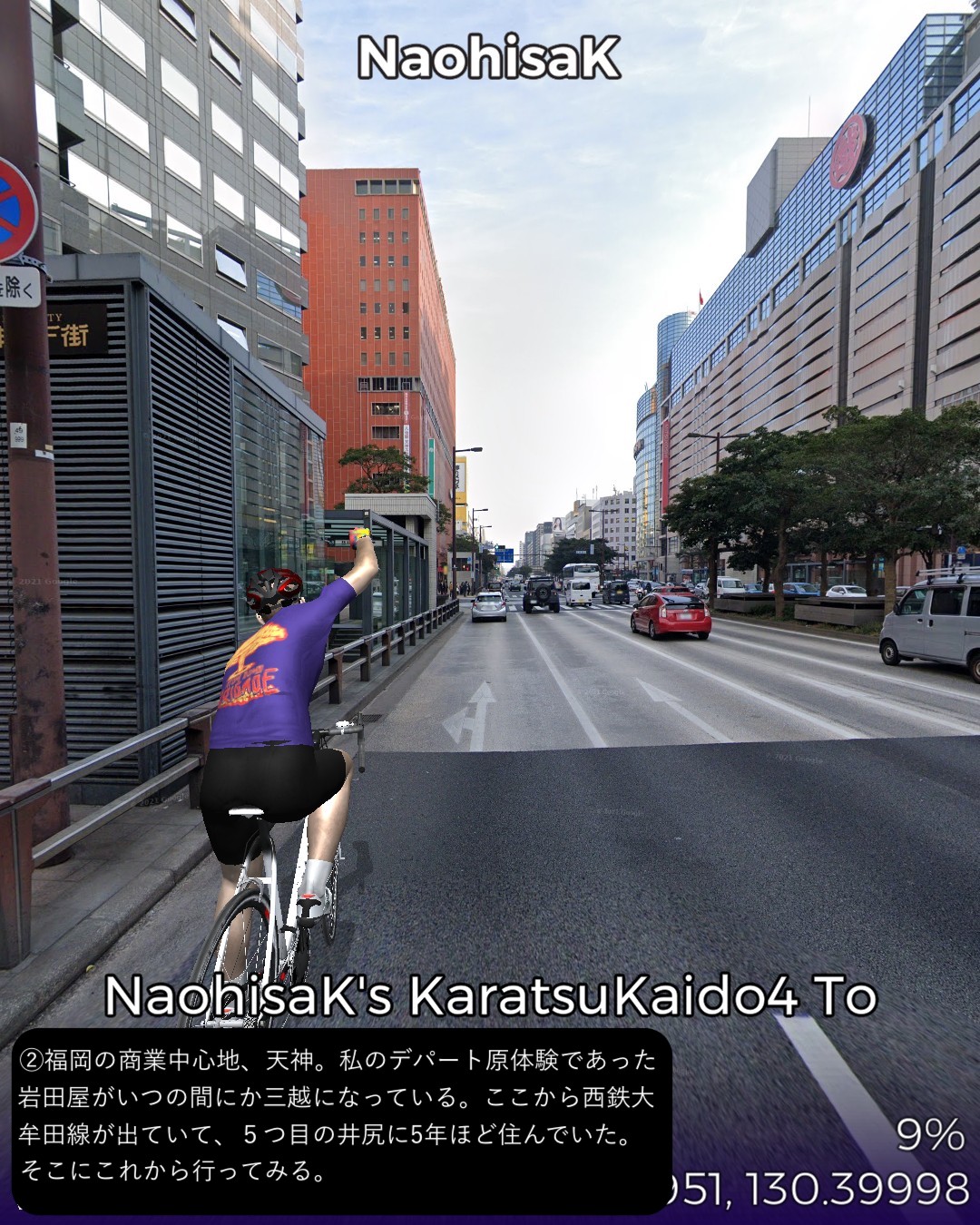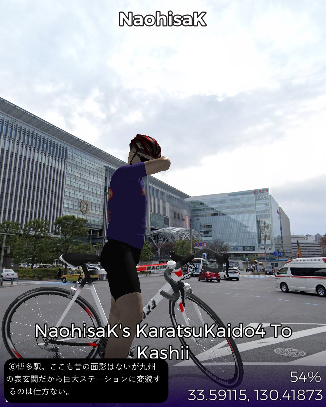 VRサイクリング、唐津街道5日目。子供の頃の馴染みの街、福岡市街の…