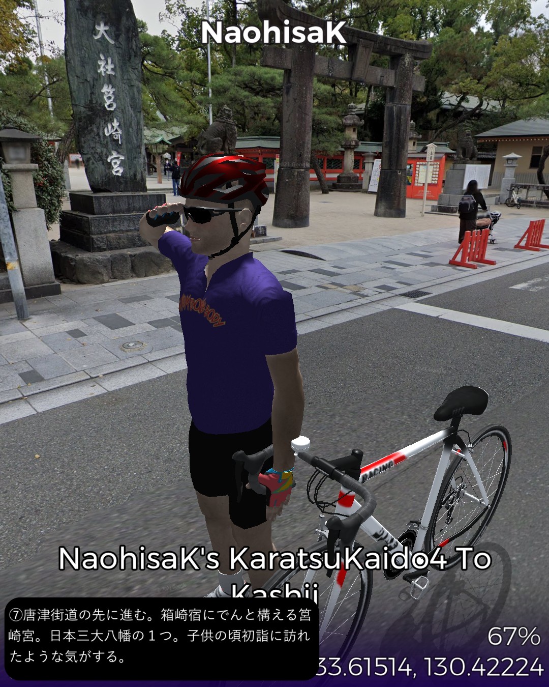 VRサイクリング、長崎街道5日目。今日もサイコロ4の目が出たので、…