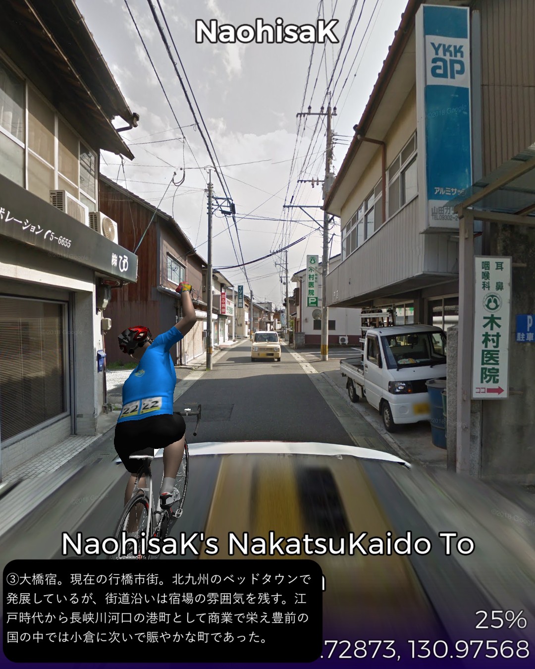 VRサイクリング、長崎街道4日目。ここまでほぼ1宿ずつ刻んできたが…