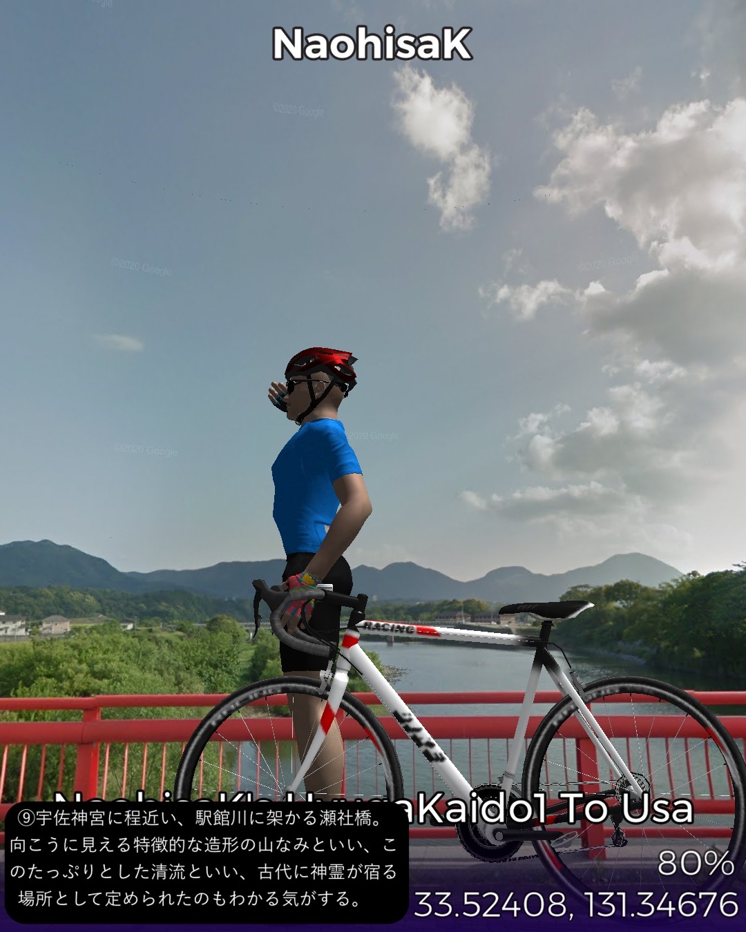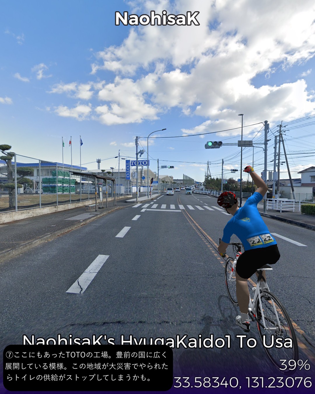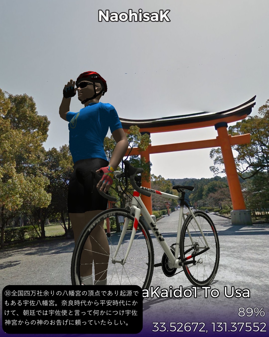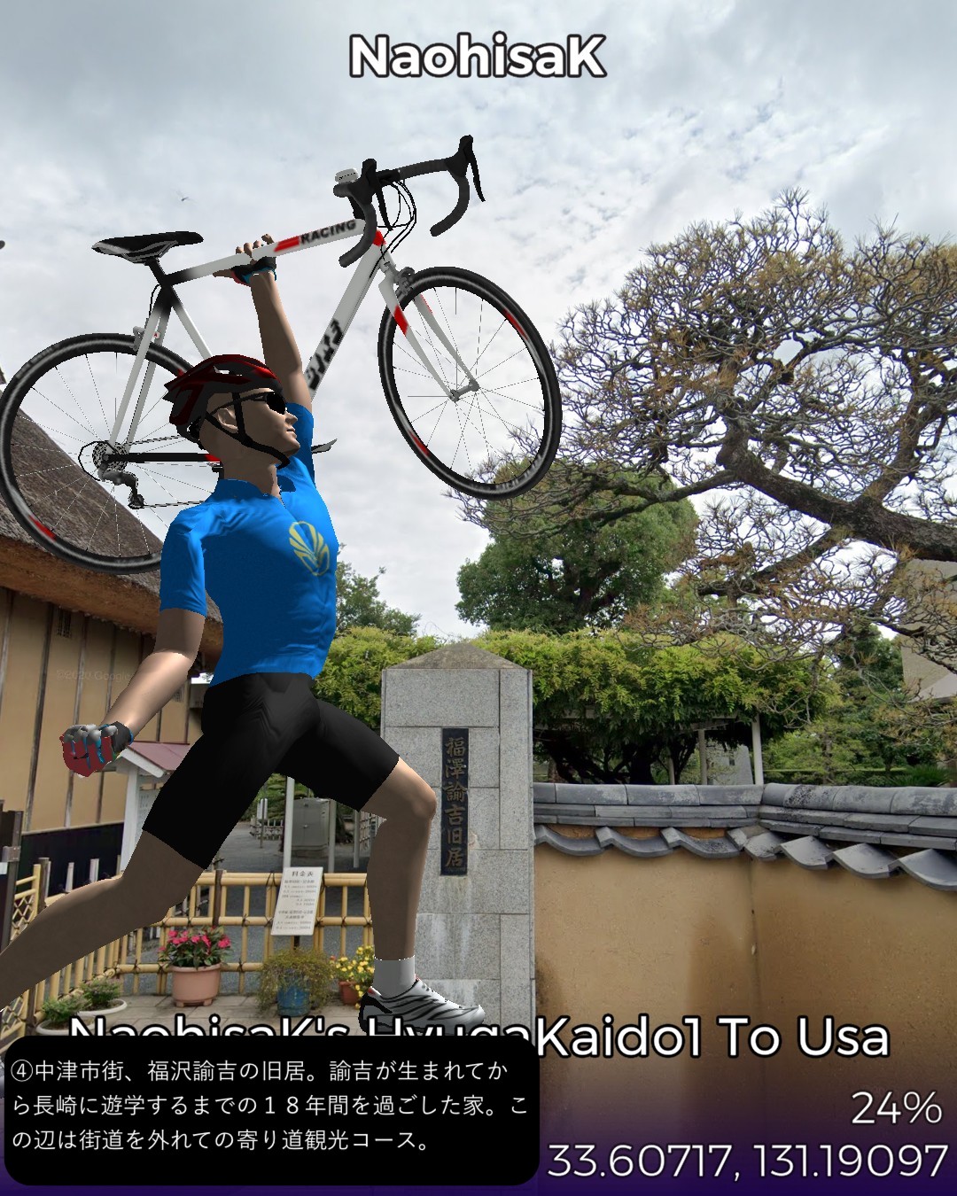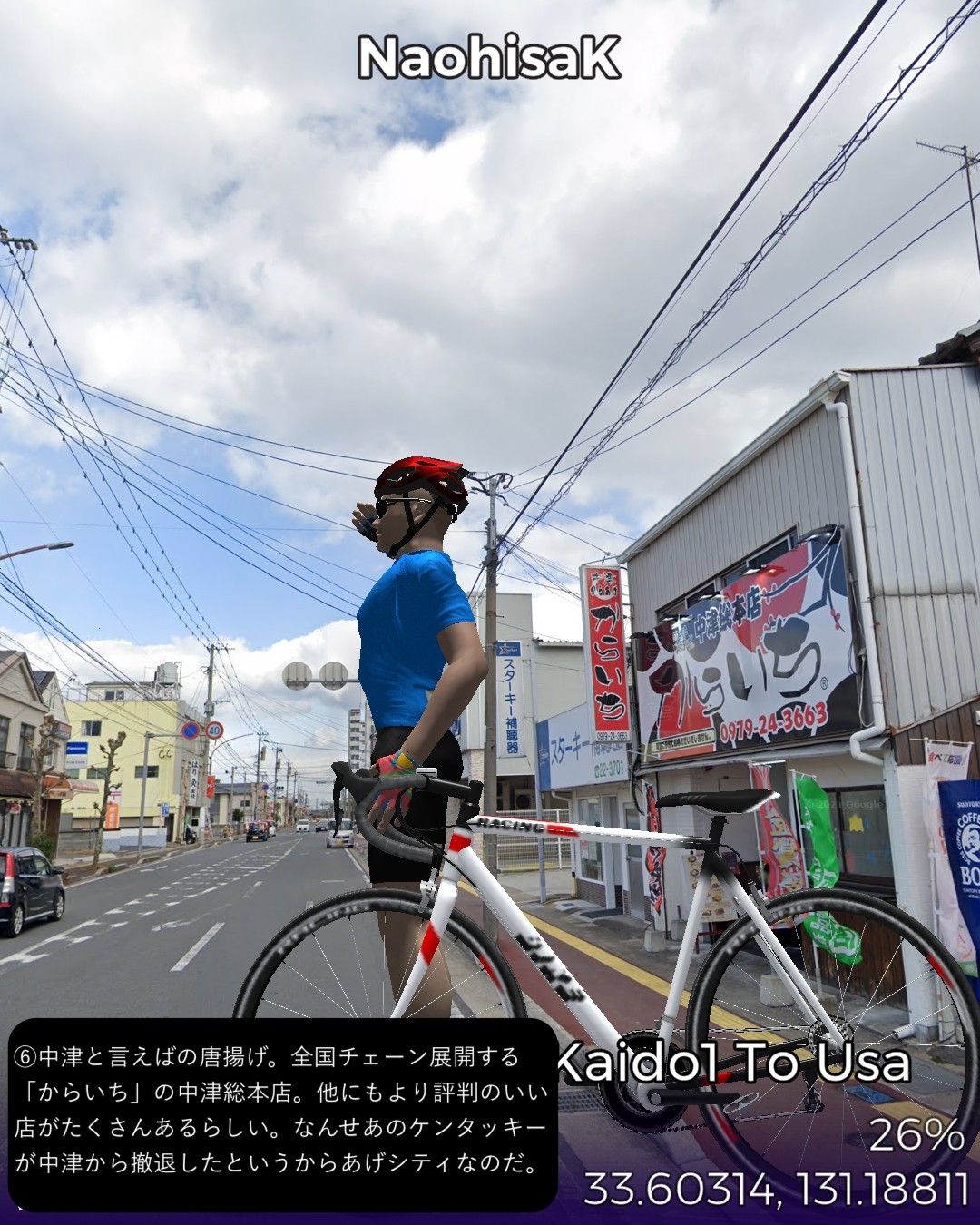 VRサイクリング 中津街道は早くも最終日3日目で八屋宿から中津まで行き、ちょっと市内観光した後、ここから日向街道が始まってその1日目として四日市宿を経て宇佐宿までトータル34kmの長丁場とあいなった。