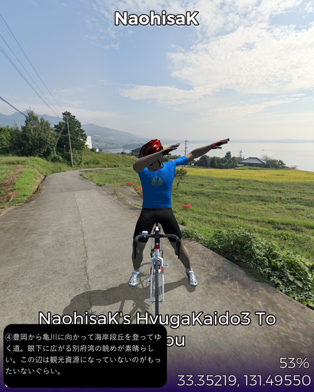 VRサイクリング、長崎街道9日目。本日のルートは大村湾の海岸伝いに…