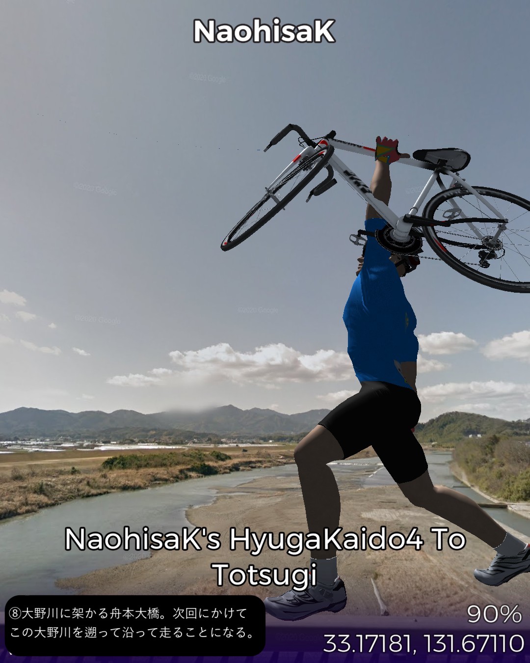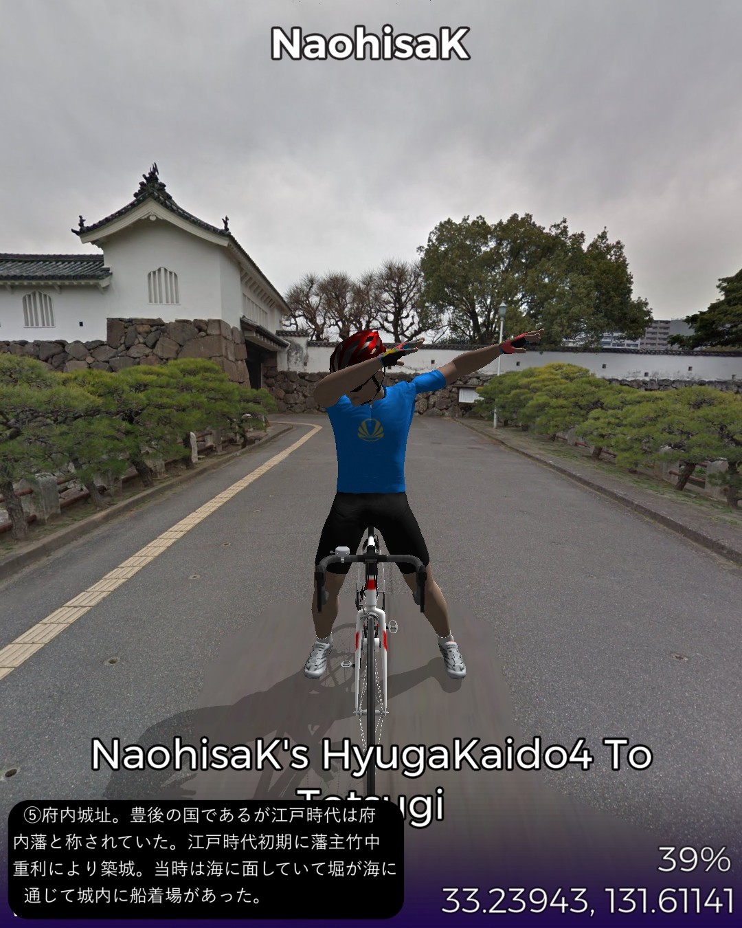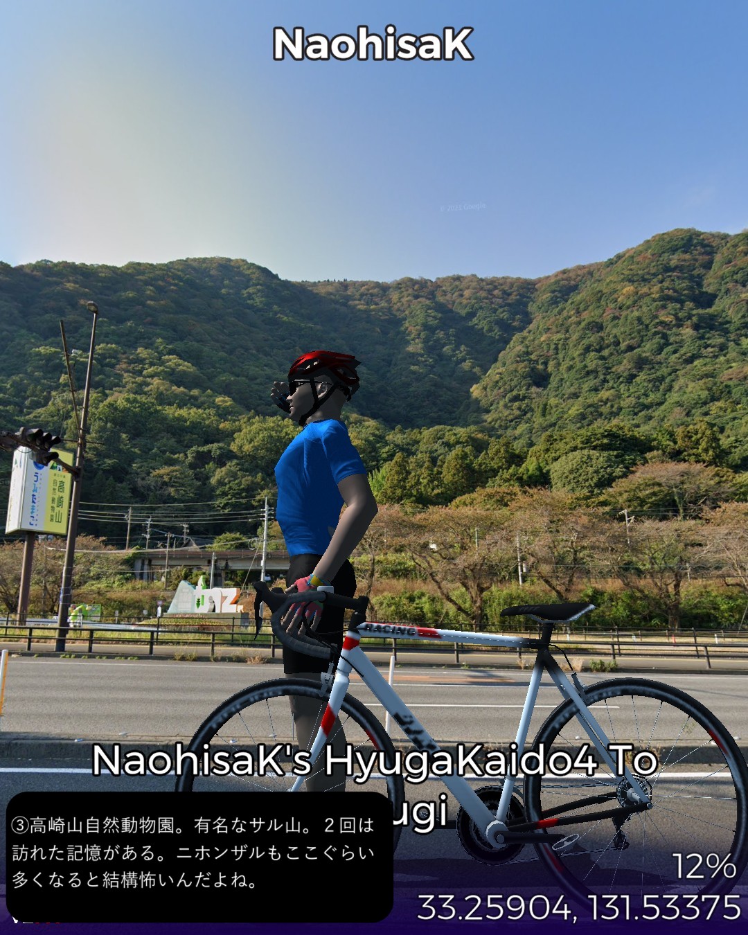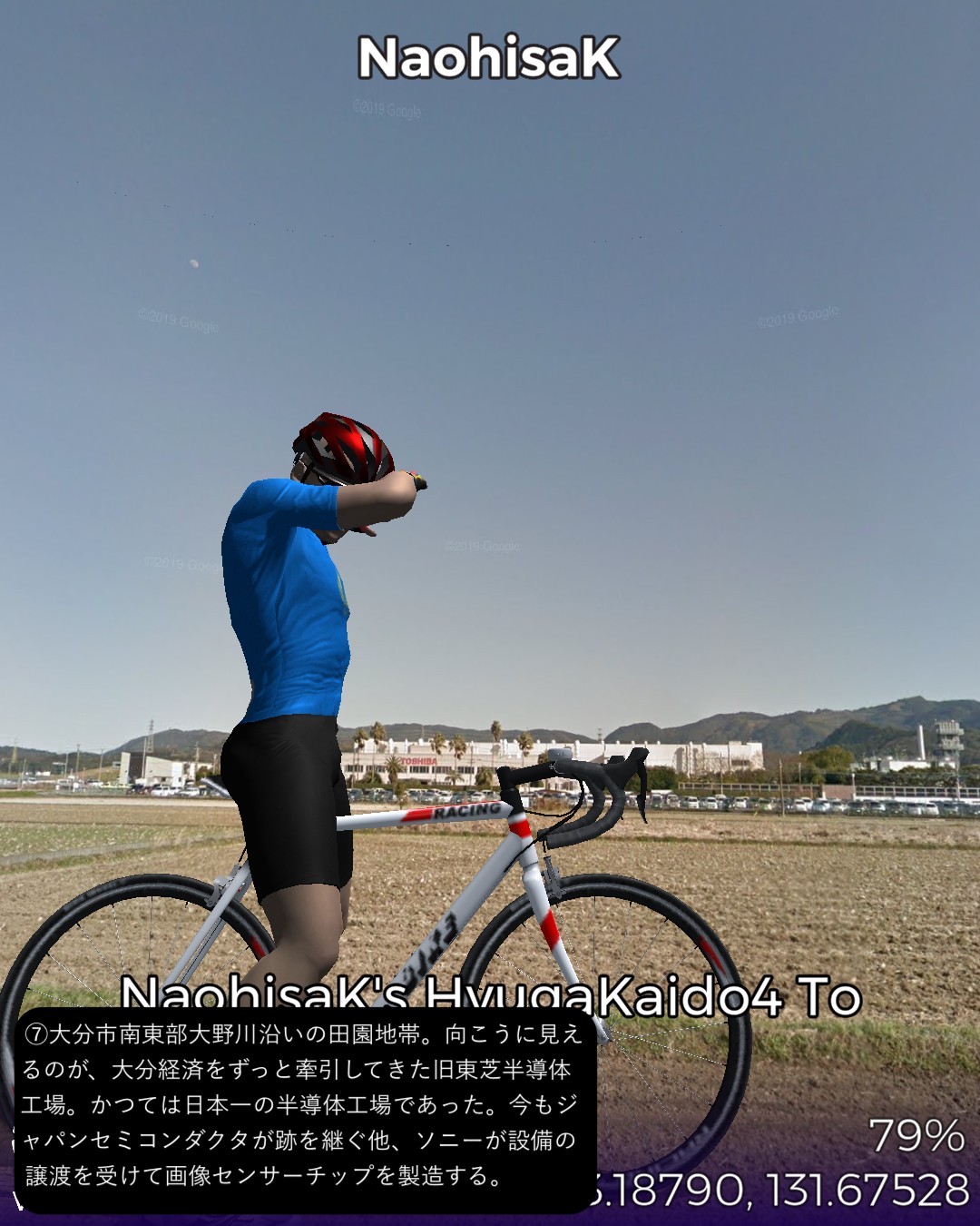 VRサイクリング、日向街道4日目。温泉都市別府宿から江戸時代まで府内と称されていた大分を通り過ぎ大分市の端に位置する戸次(へつぎ)宿までの30kmの行程。別府はイメージと違って肩透かしではあったが、街道筋は温泉場というより意外と宿場の雰囲気を醸し出していた。別府から大分へ向かう道としては、現在利用されている海沿いルートは昔は海が荒れると使えな買ったので、旧街道としては高崎山の裏側を通る山道ルートがメインだったらしいが、山道ルートのストリートビューが完結しないので、仕方なく海沿いの国道を走る。大分は思ったより大きな都市で、ここ50年半導体の生産拠点として発展してきたこともあり、むしろ重工業と共に衰退していった北九州より町が近代的で勢いがあるように見える。町としては府内城址以外には見るべきところはないと思われたので先へ進む。JR日豊本線は海沿いに臼杵、津久見という町へ向かうが、日向街道はしばらくJR豊肥本線に沿って山へ向かう。本日のゴールの戸次宿は大分市の南に位置する古い商家が建ち並ぶ街道筋の雰囲気あふれる宿場だった。