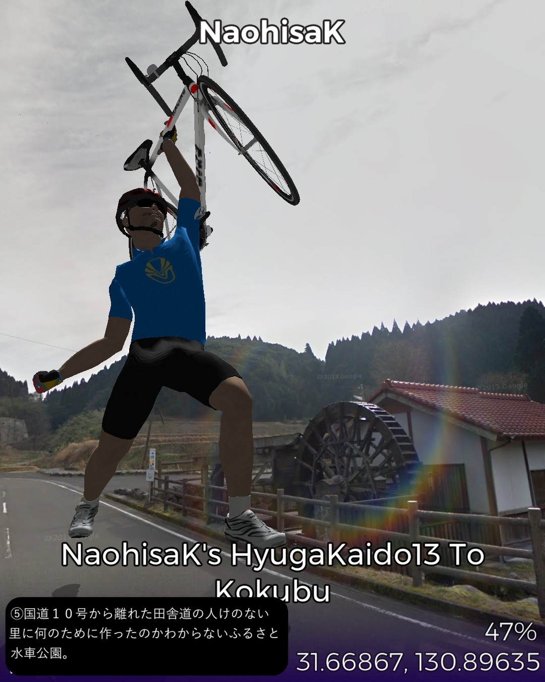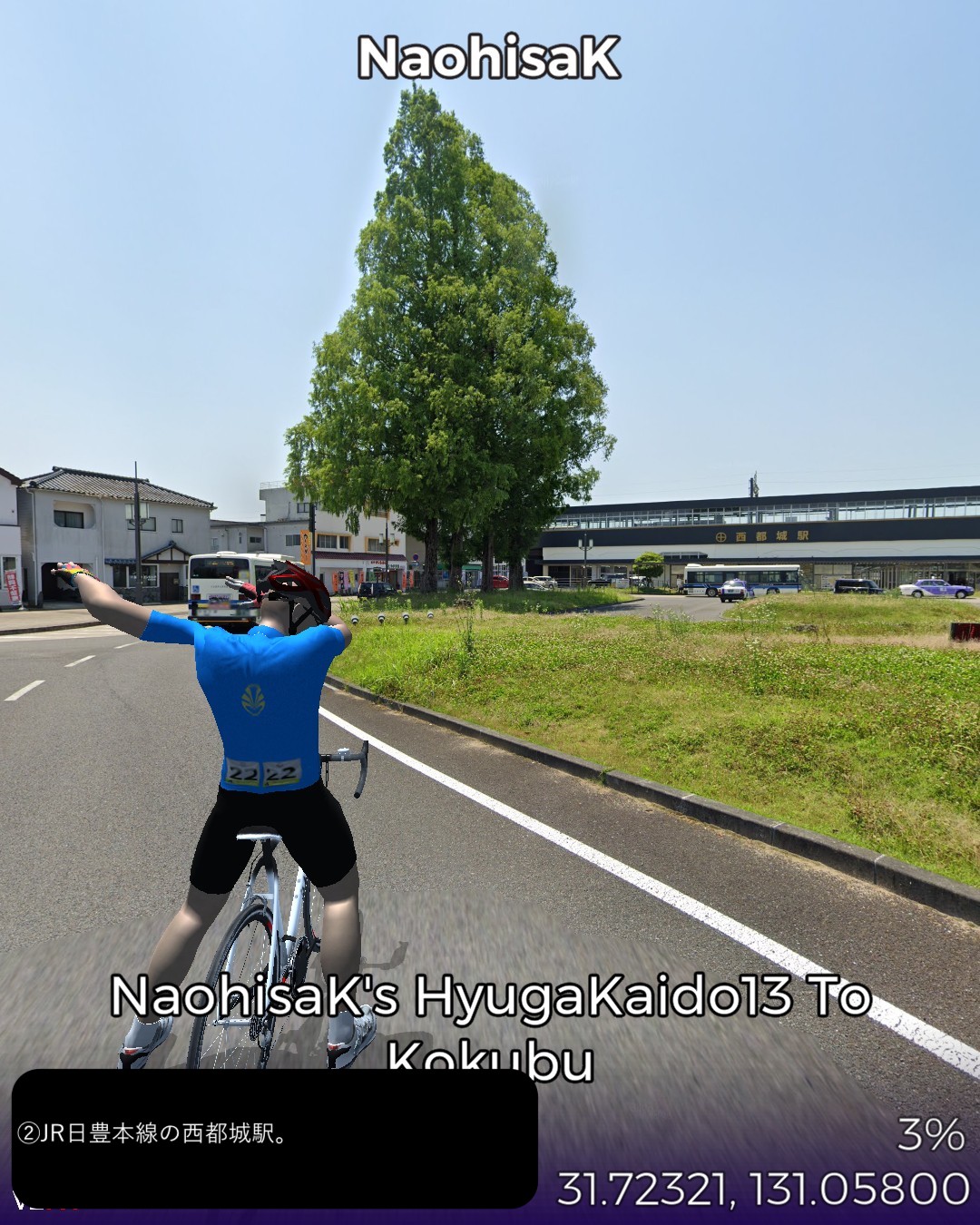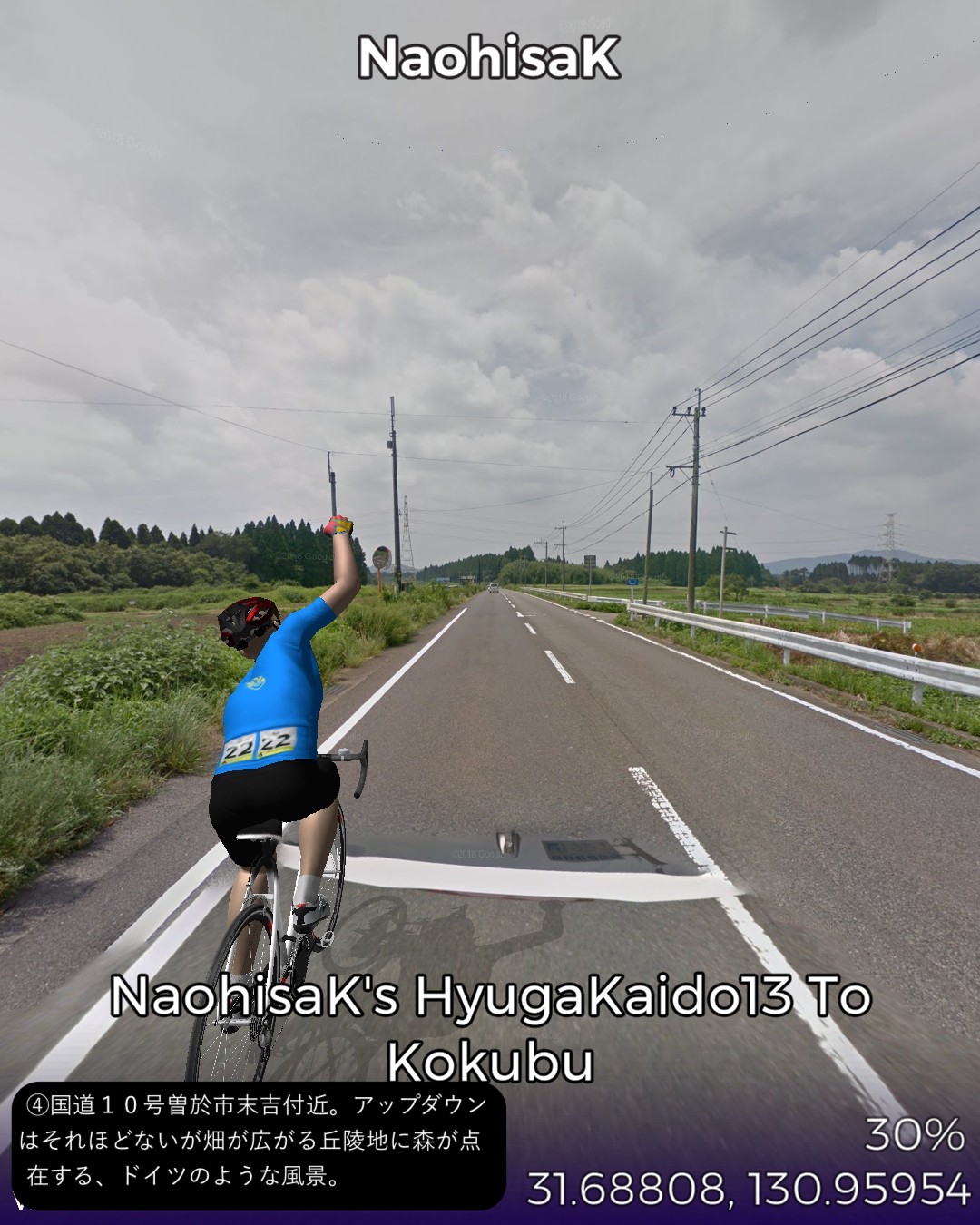 VRサイクリング 薩摩街道8日目 城下町宇土宿をスタートし、川沿い…