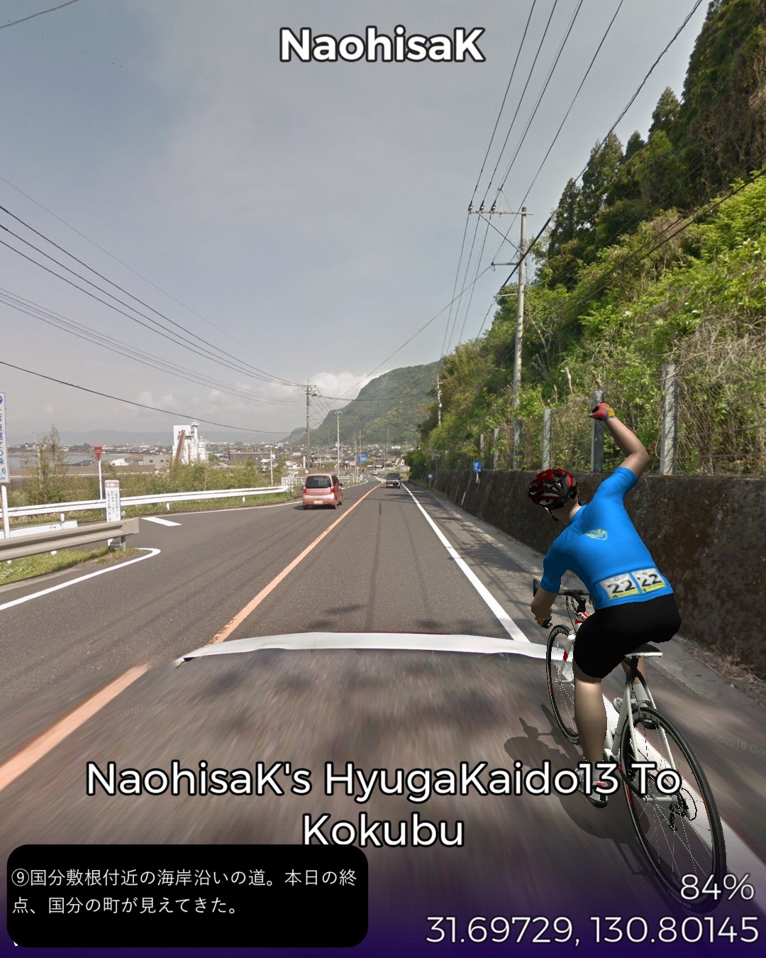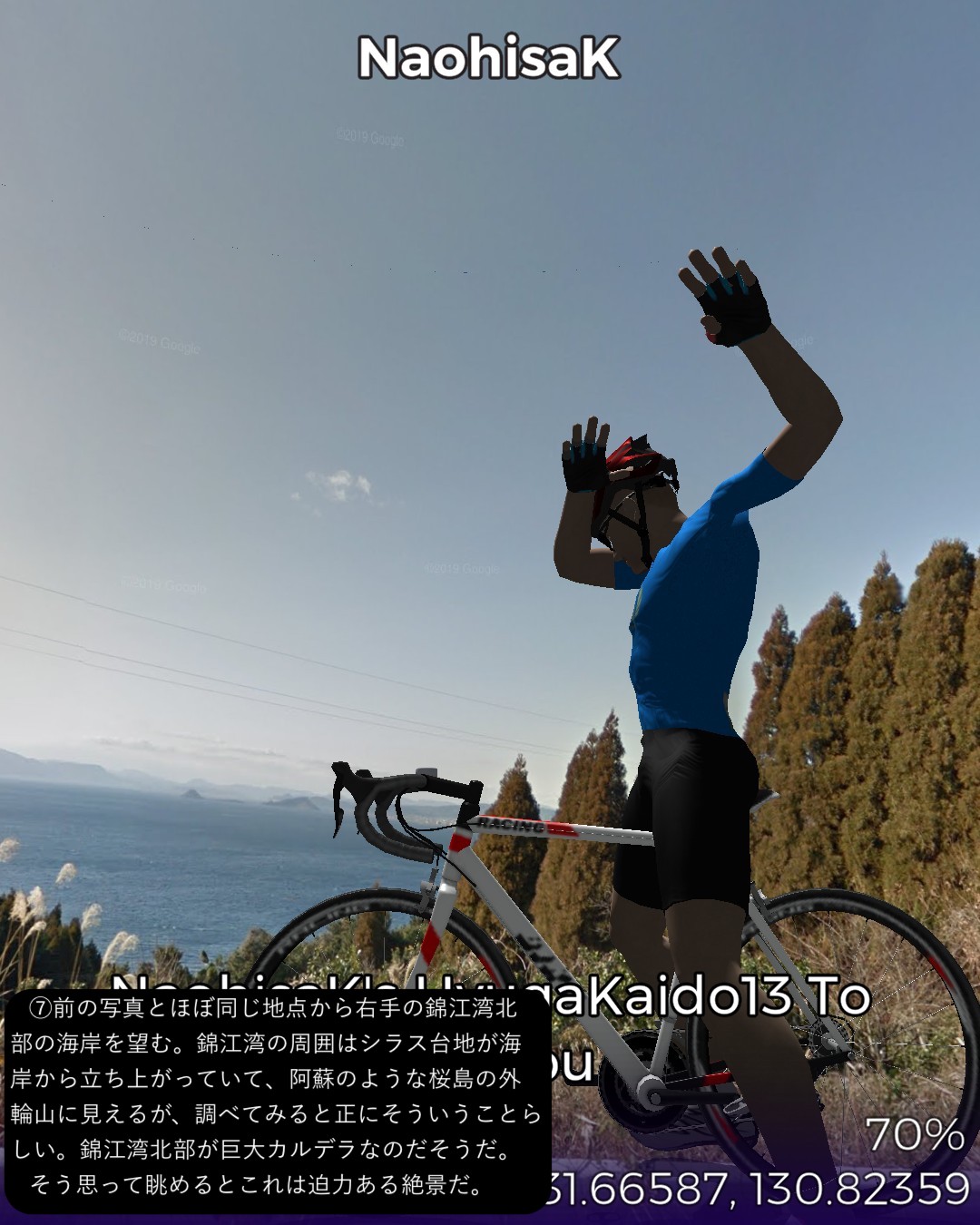 VRサイクリング 日向街道最終日14日目 錦江湾の1時の方角の国分…