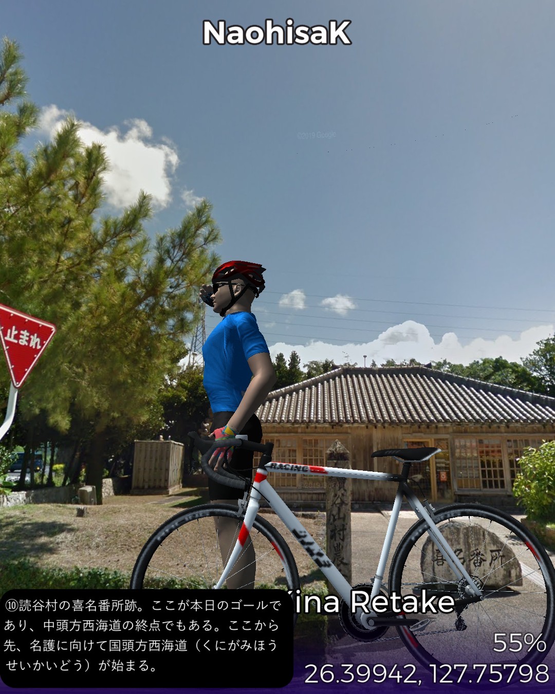 VRサイクリング 沖縄編 本日のルートは前回ゴールの喜名番所から始…
