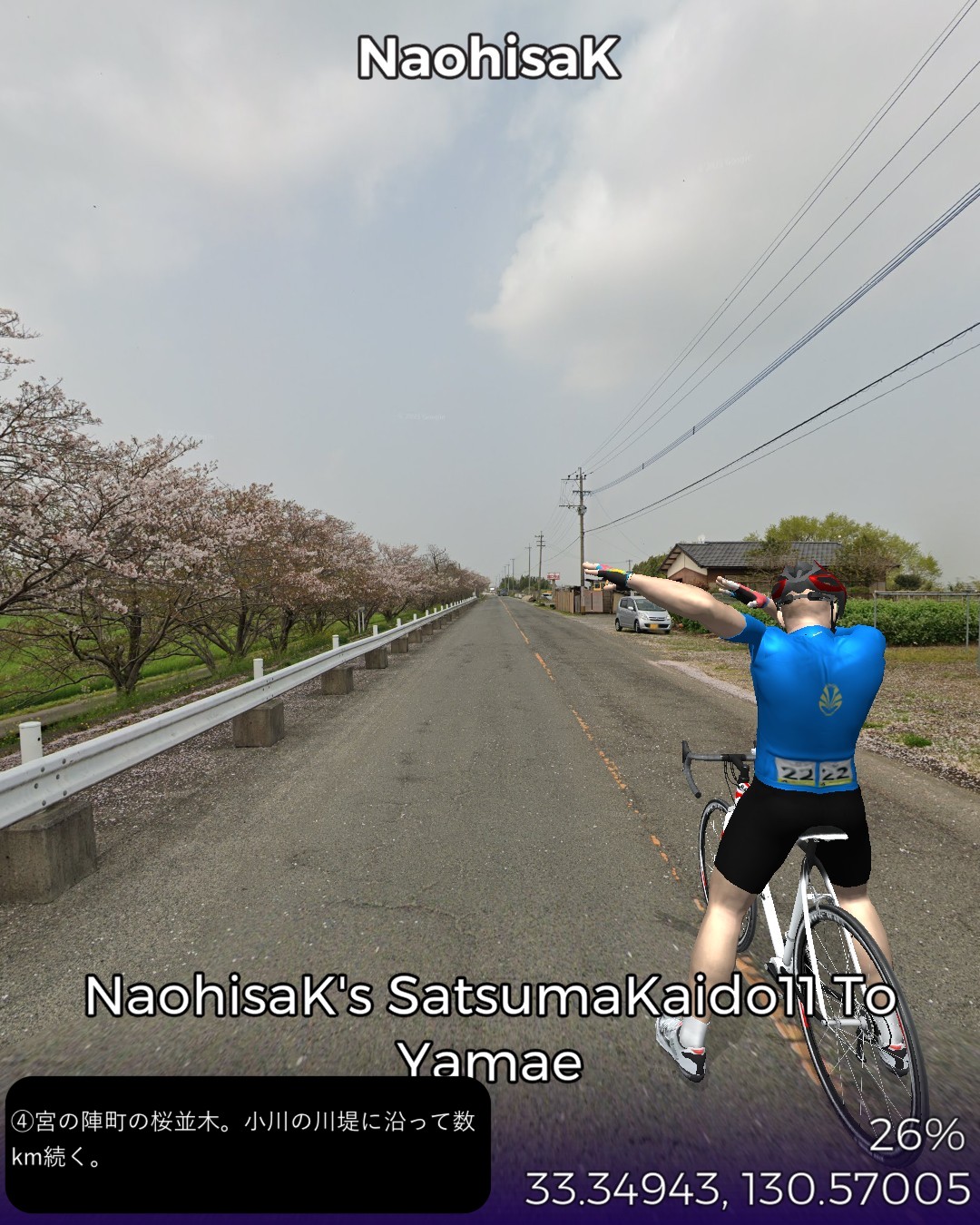 VRサイクリング 薩摩街道8日目 城下町宇土宿をスタートし、川沿い…