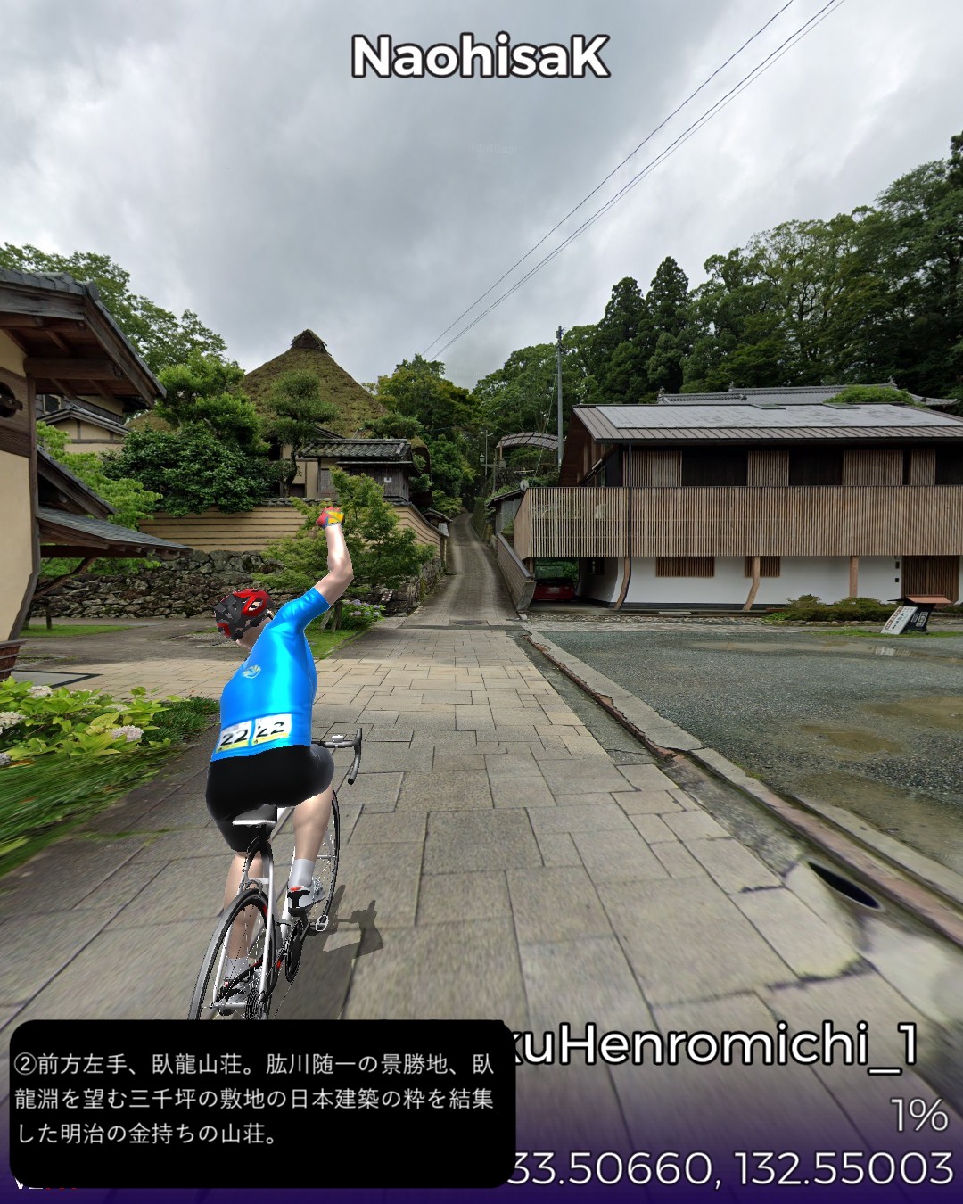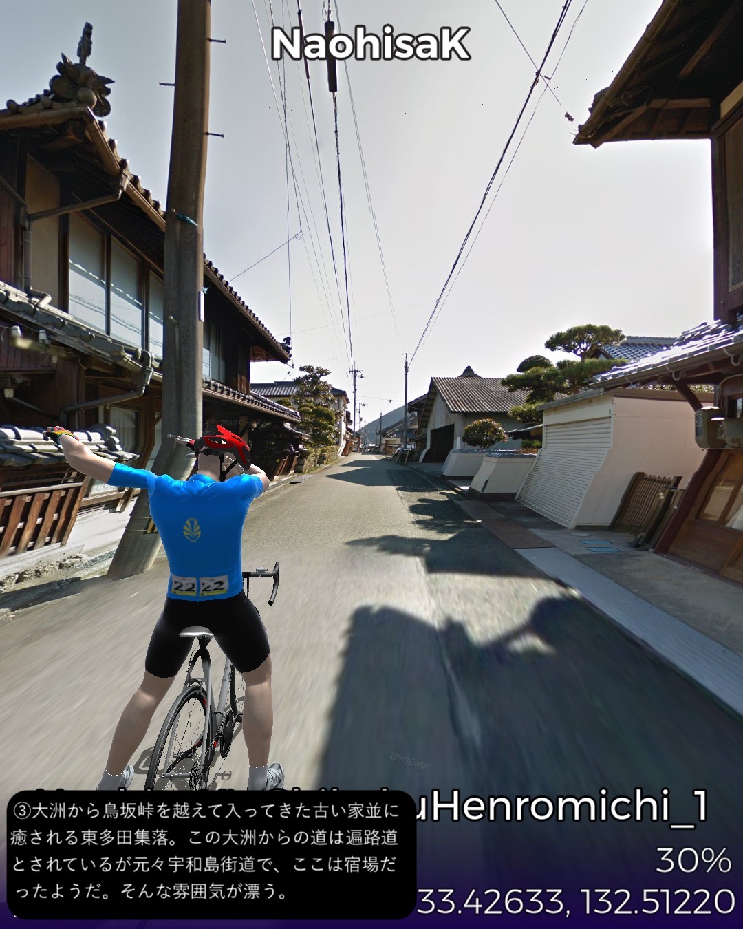 VRサイクリング、土佐北街道1日目。ルート構成の都合上、しばらく四…