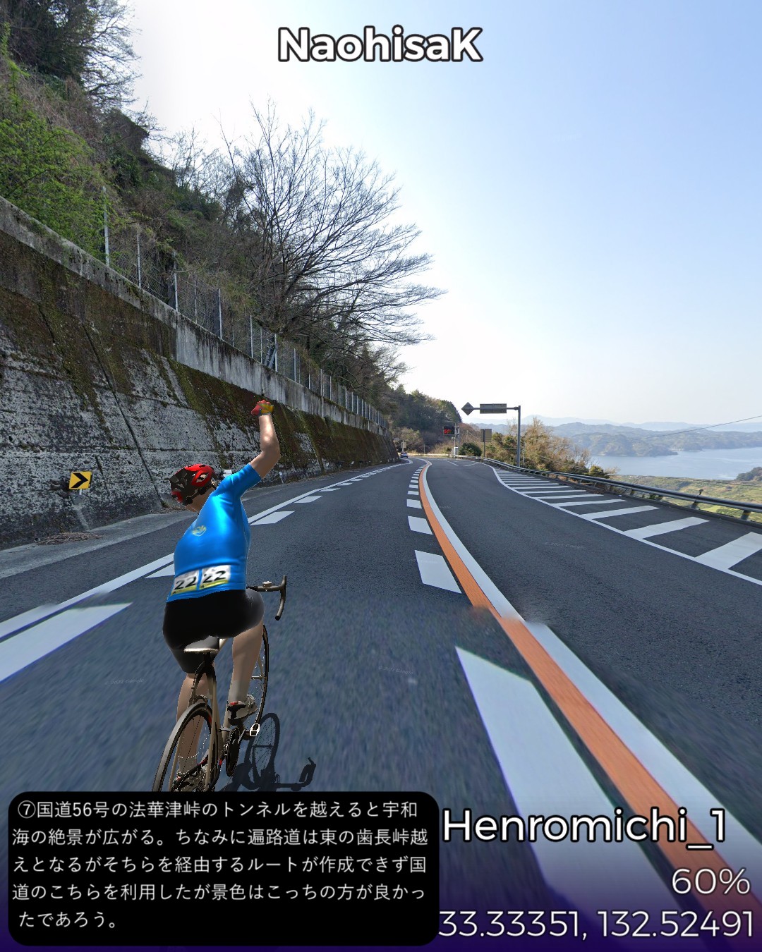 VRサイクリング。四国のお遍路巡礼の旅を終えて、今治からしまなみ海…