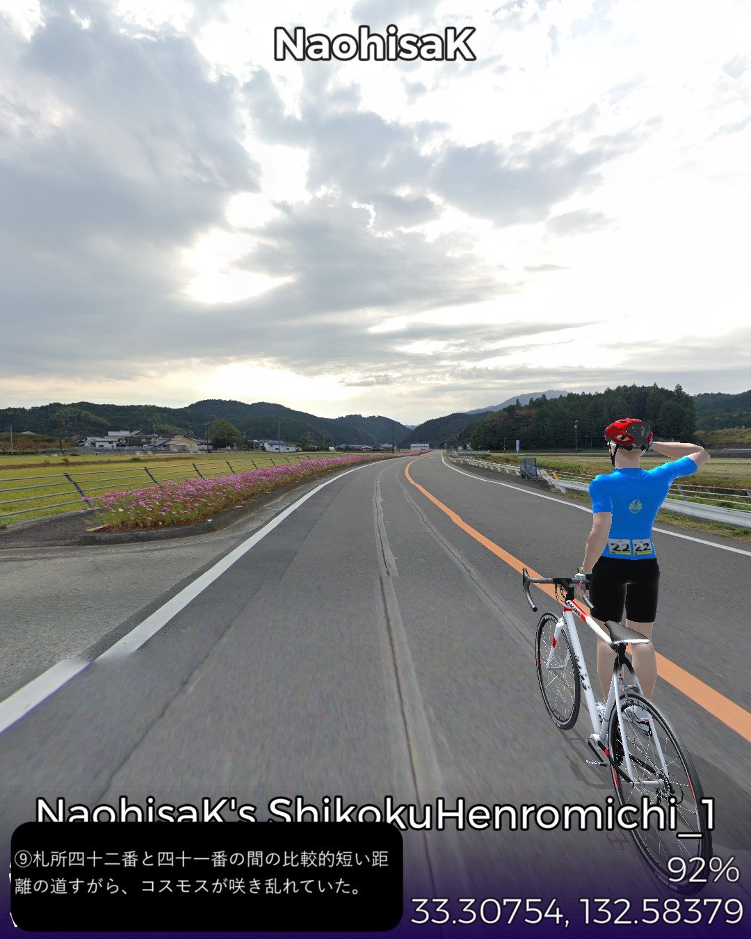 VRサイクリング、四国遍路道21日目。今回は今までの最多の霊場巡り…