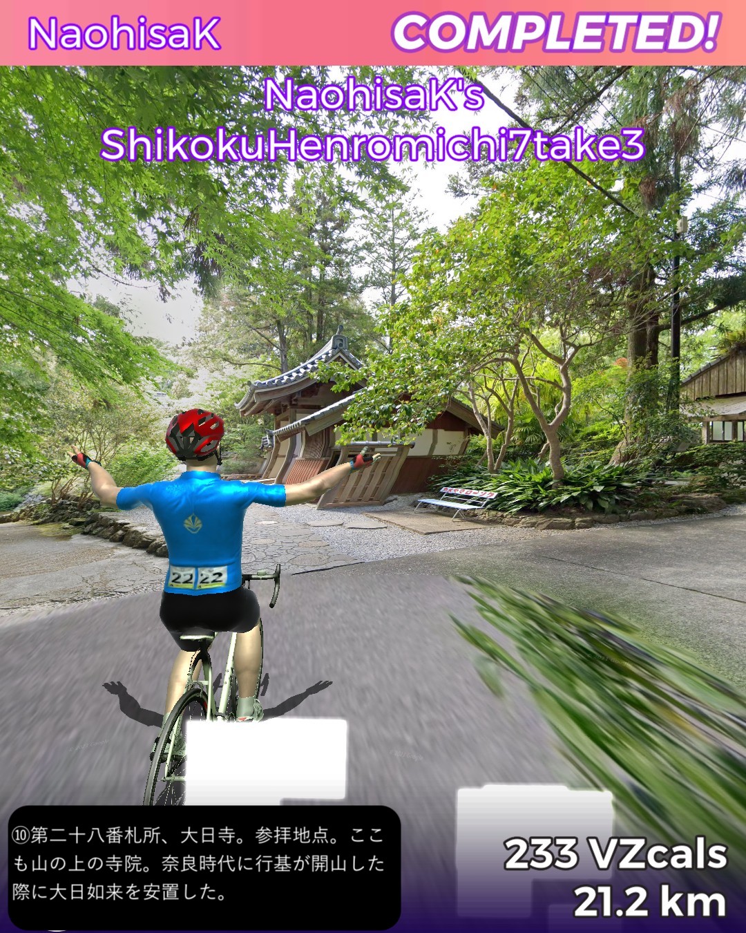VRサイクリング、四国遍路道17日目。通常のお遍路における最後の霊…