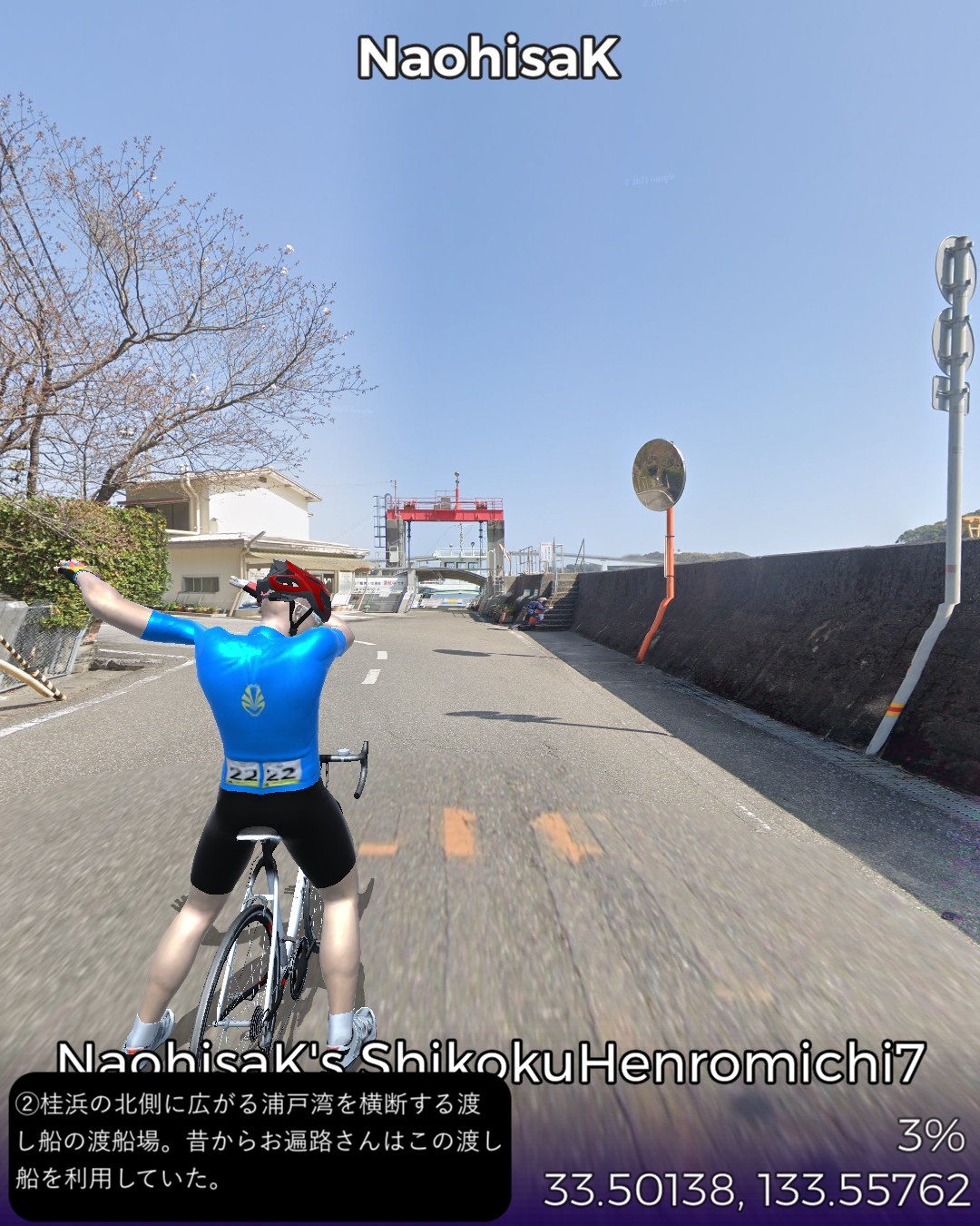 VRサイクリング、四国遍路道4日目 地の果ての町、土佐清水を出発し…