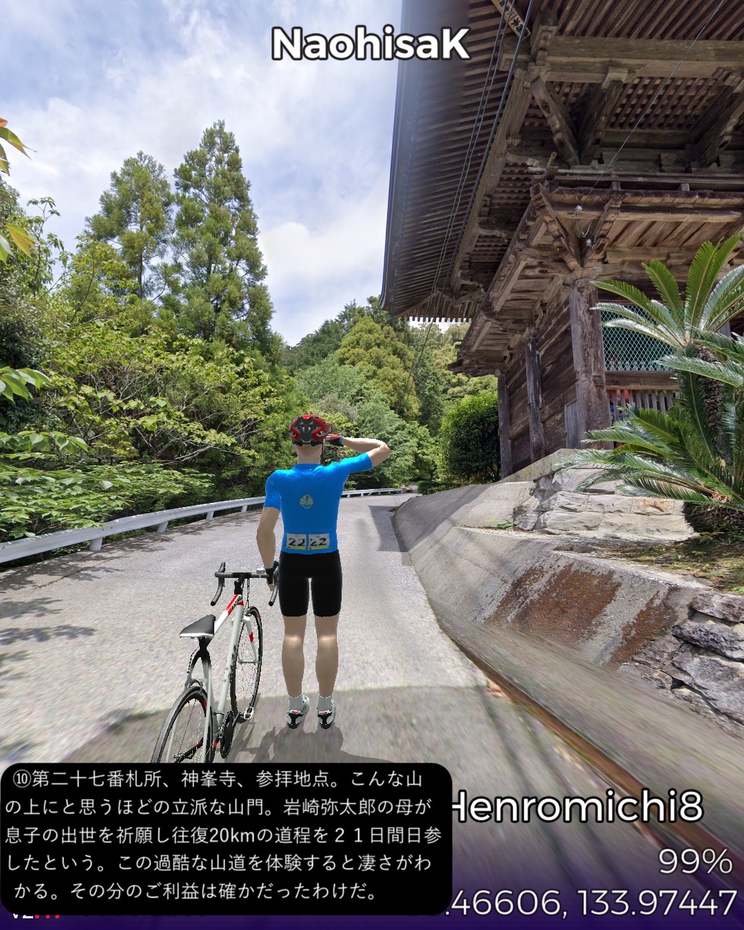 VRサイクリング、四国遍路道7日目。本日は題して「大忙し土佐霊場巡…