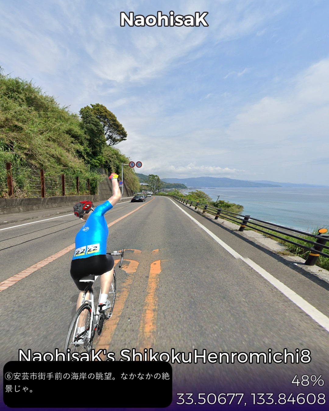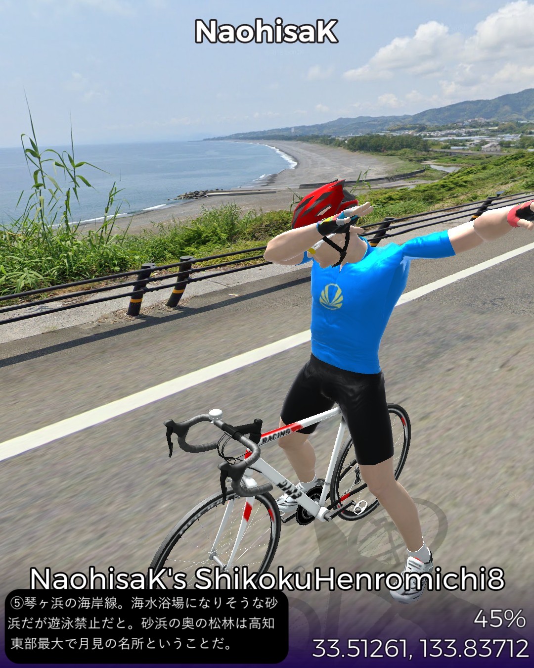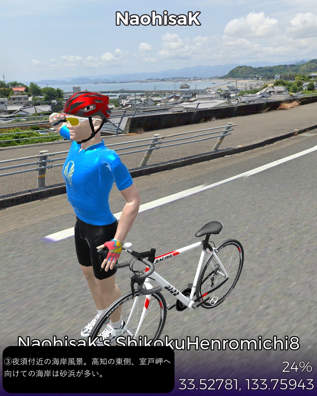 VRサイクリング、四国遍路道4日目 地の果ての町、土佐清水を出発し…