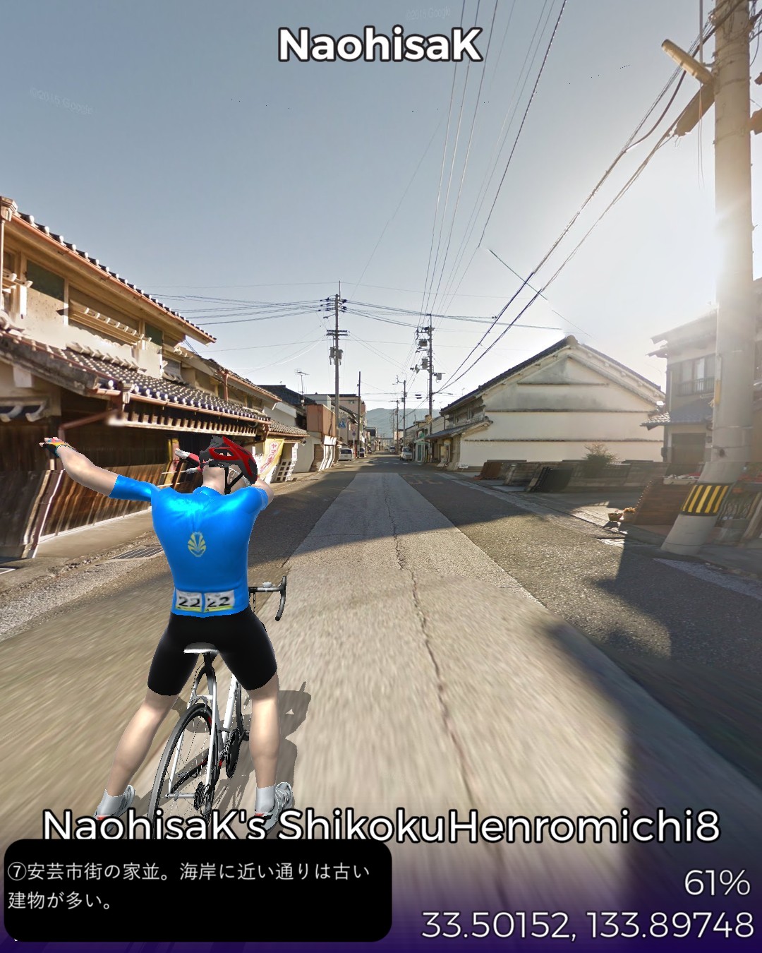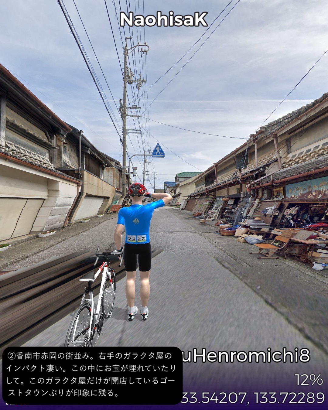 VRサイクリング、土佐北街道1日目。ルート構成の都合上、しばらく四…