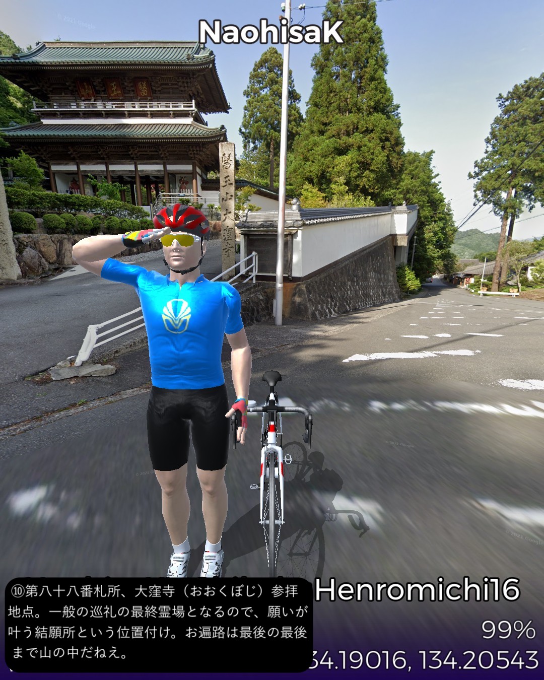 VRサイクリング、四国遍路道17日目。通常のお遍路における最後の霊…