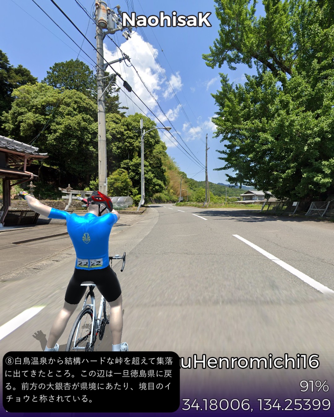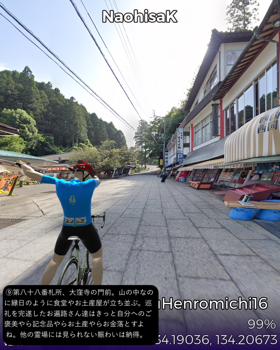 VRサイクリング。遍路道を逆に辿って第一番札所霊山寺に着いた後は、…