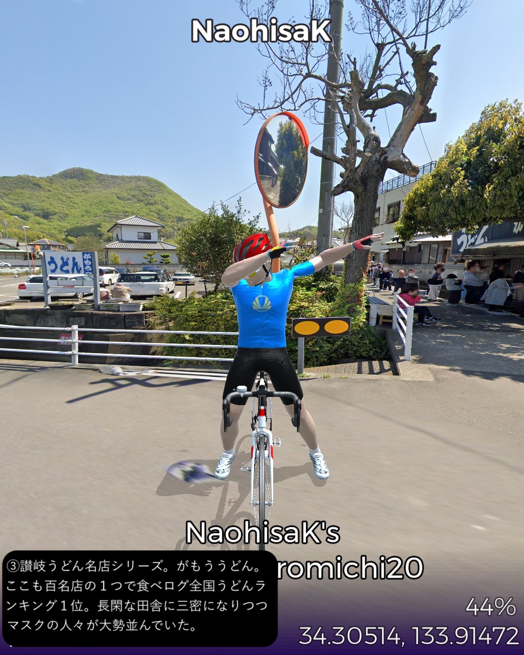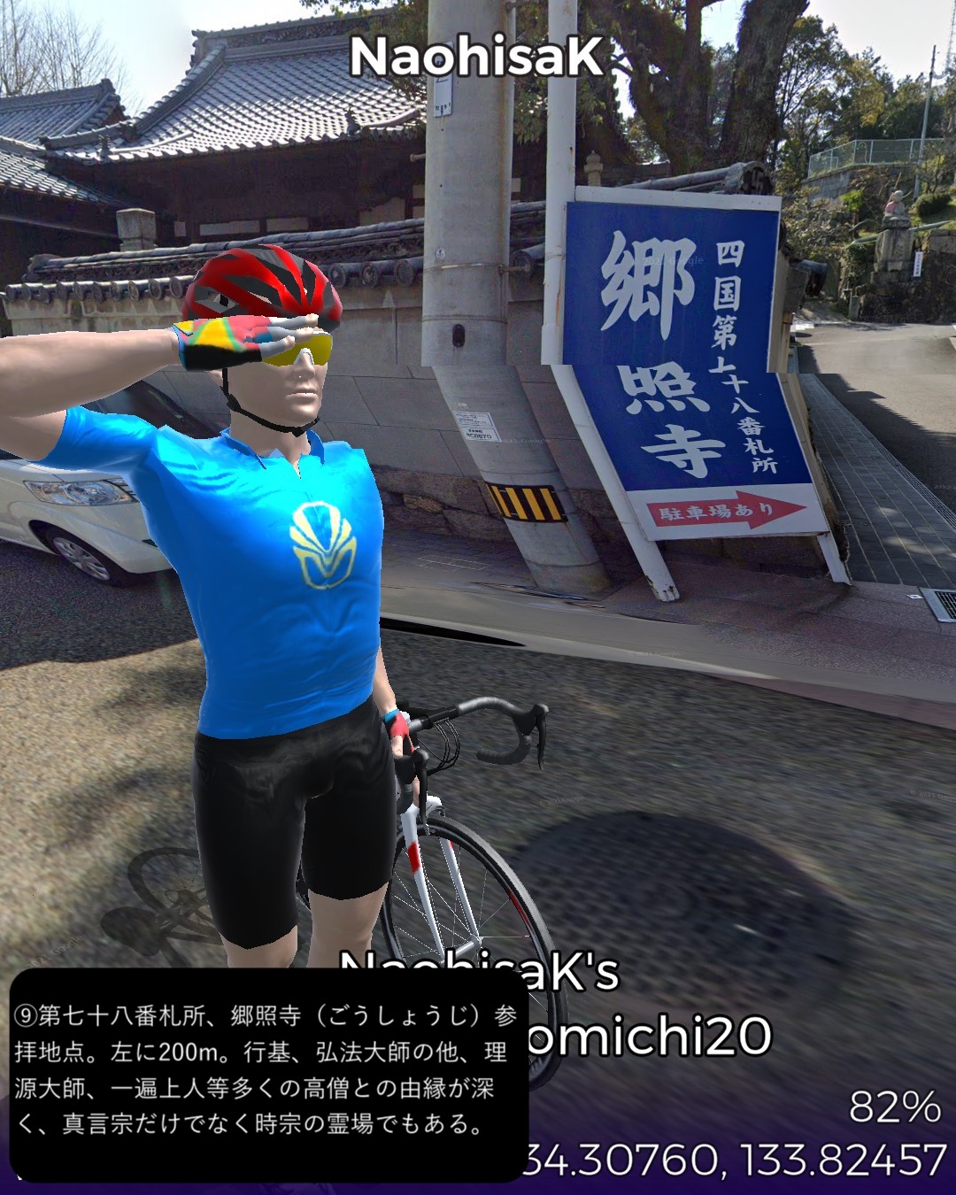 VRサイクリング。遍路道を逆に辿って第一番札所霊山寺に着いた後は、…