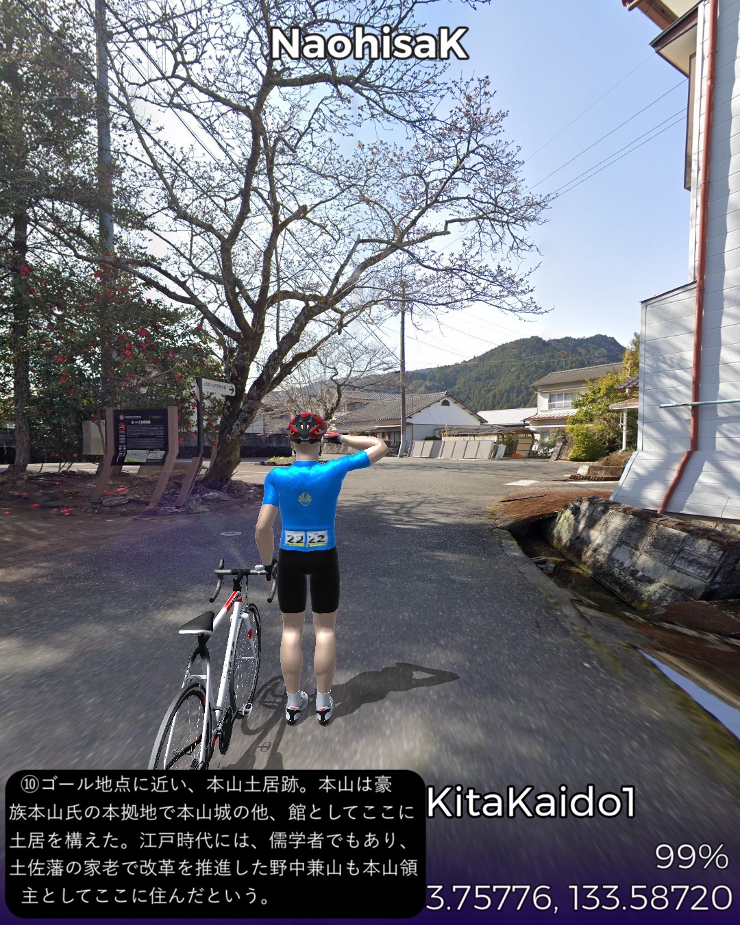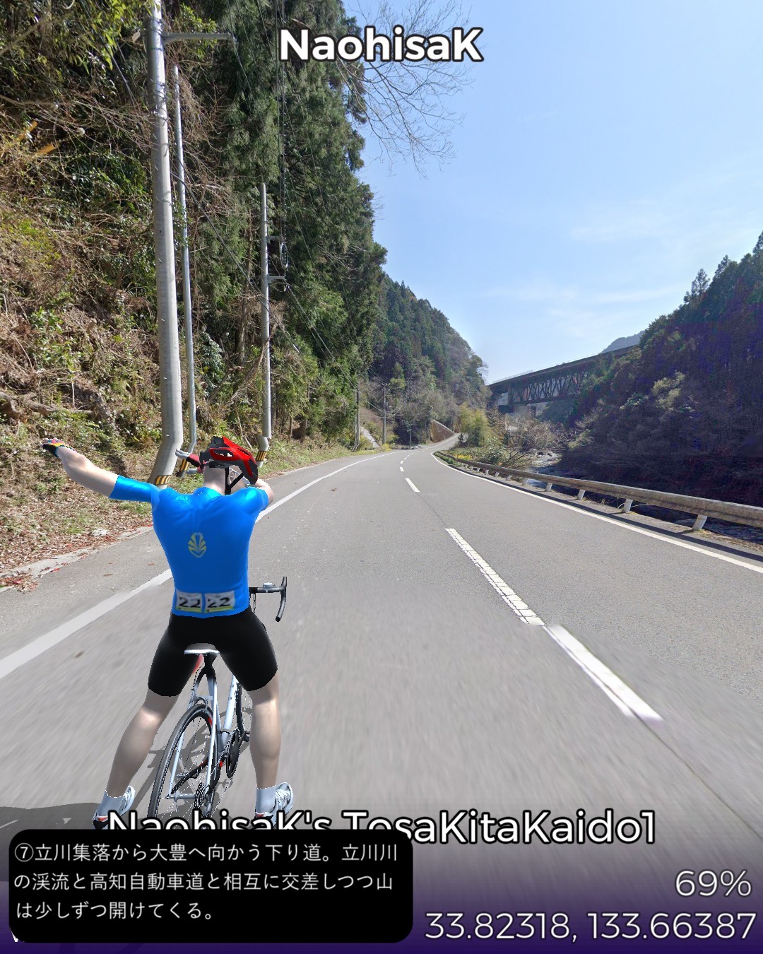 VRサイクリング、土佐北街道2日目。吉野川上流の盆地の町、本山をス…