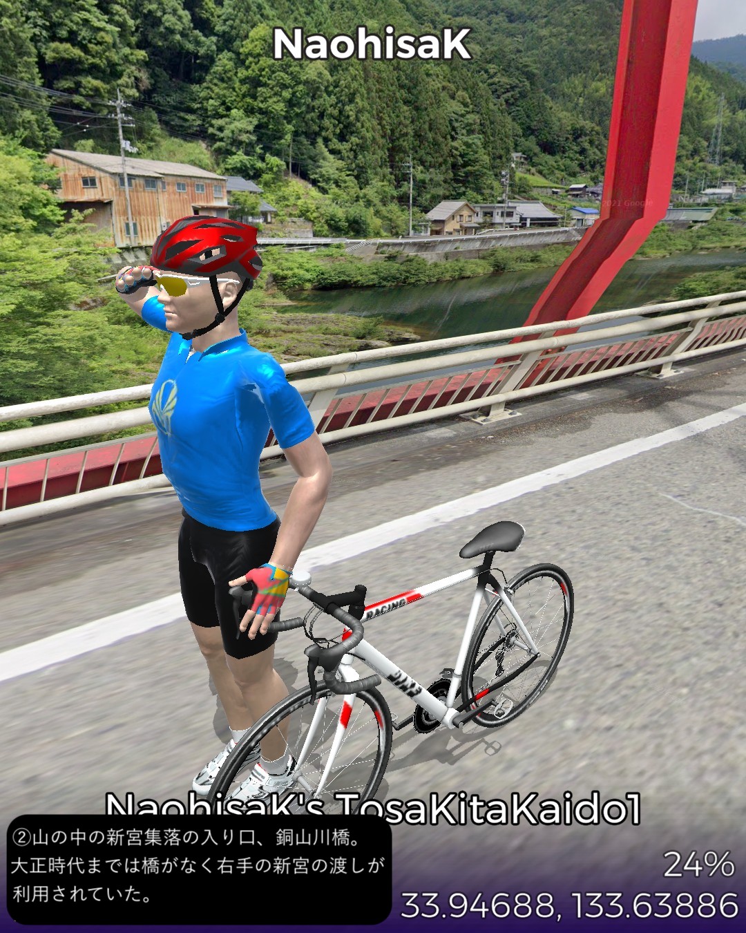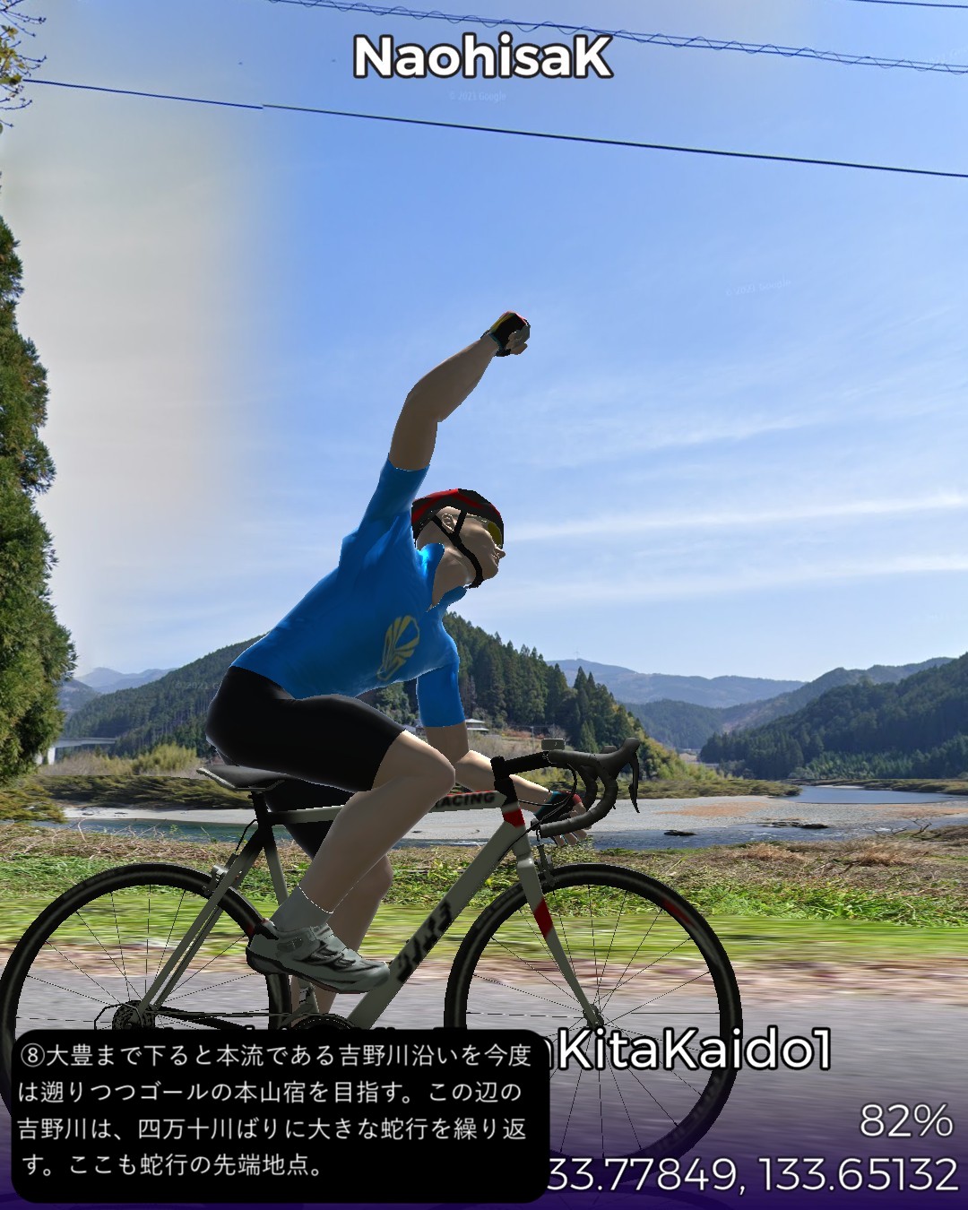 VRサイクリング、今日から2回に渡って四万十川をひたすら遡るルート…