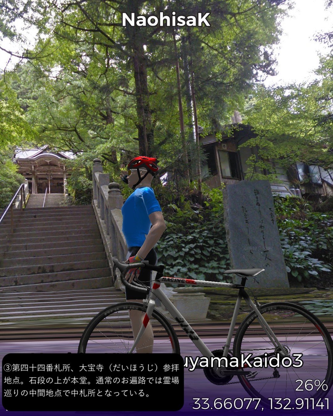 VRサイクリング、四国遍路道9日目 第二十七番札所、神峯寺をスタ…