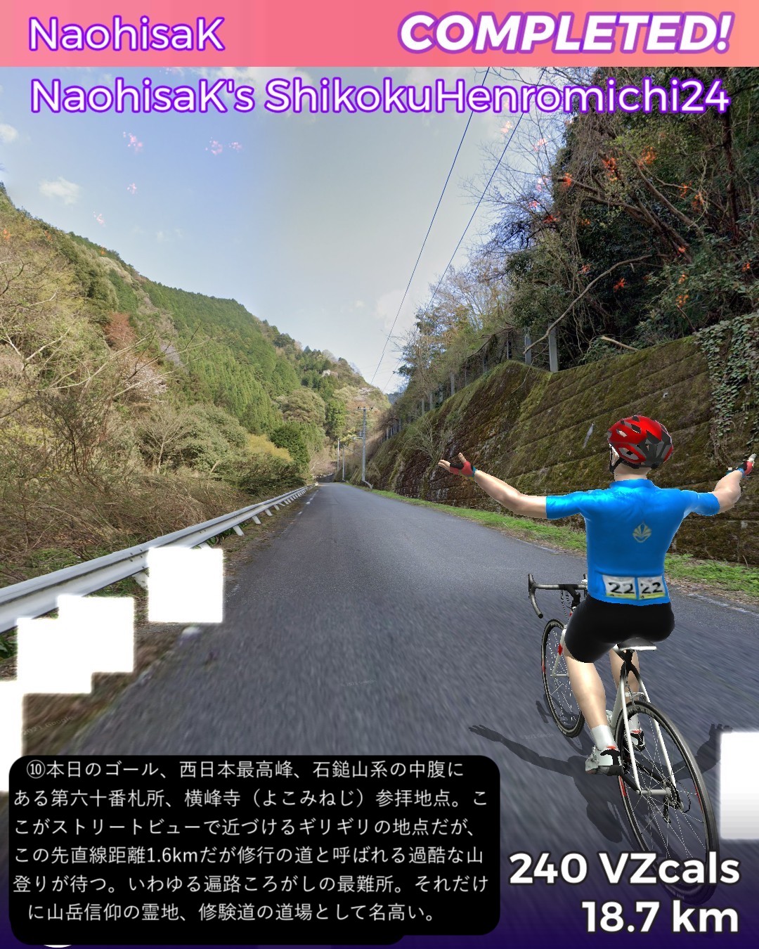 VRサイクリング、四国遍路道7日目。本日は題して「大忙し土佐霊場巡…